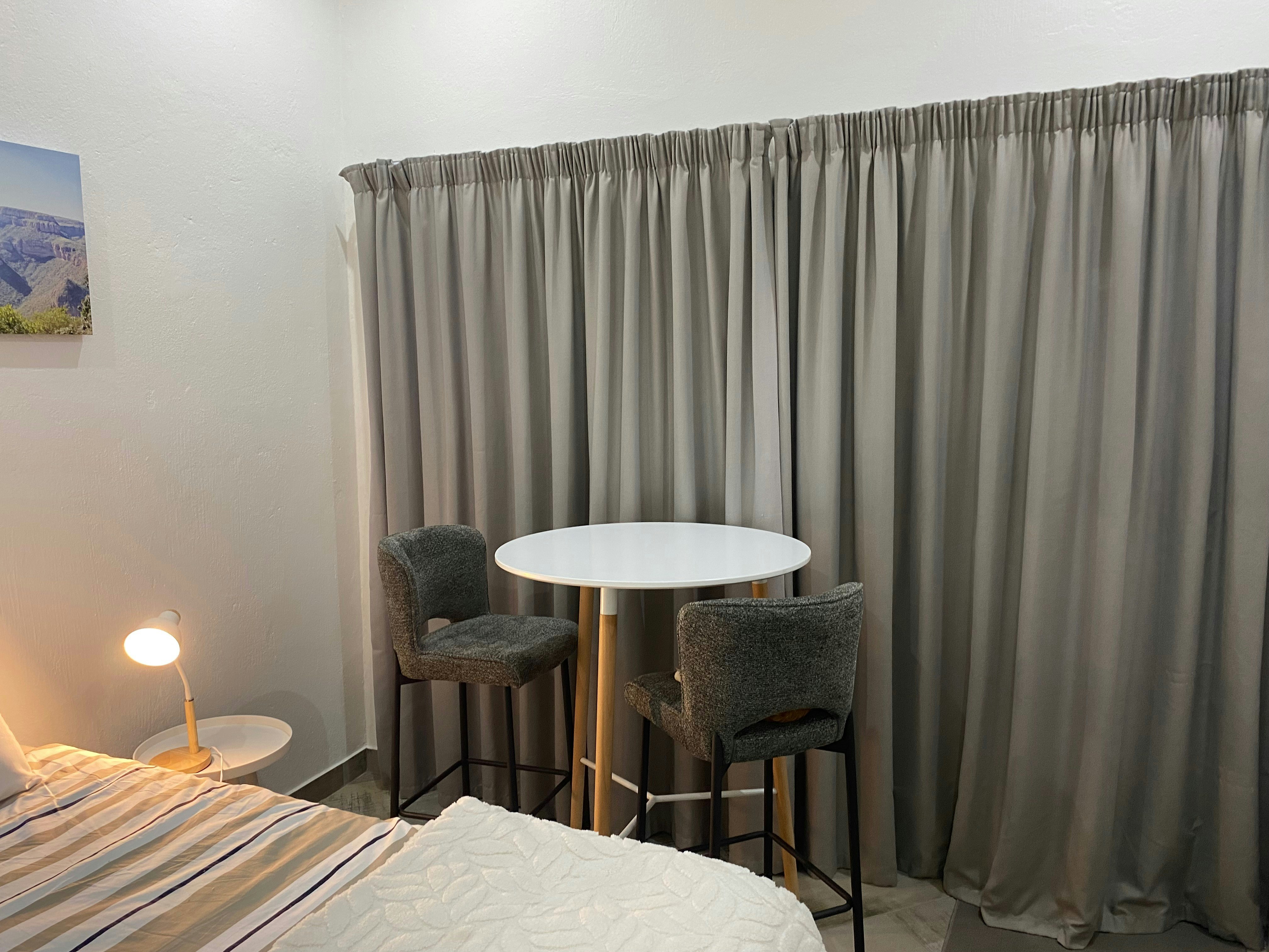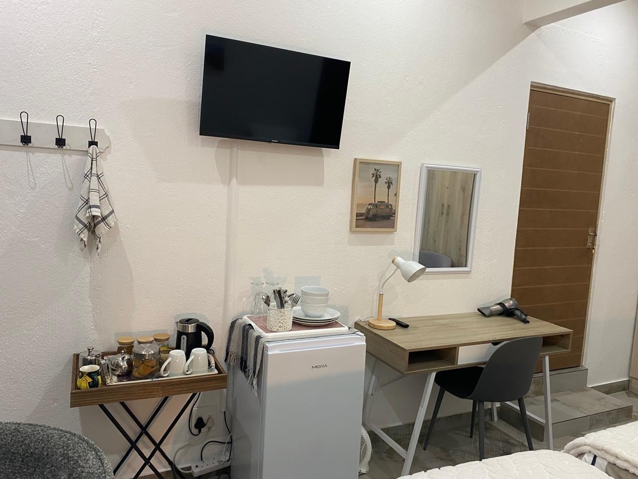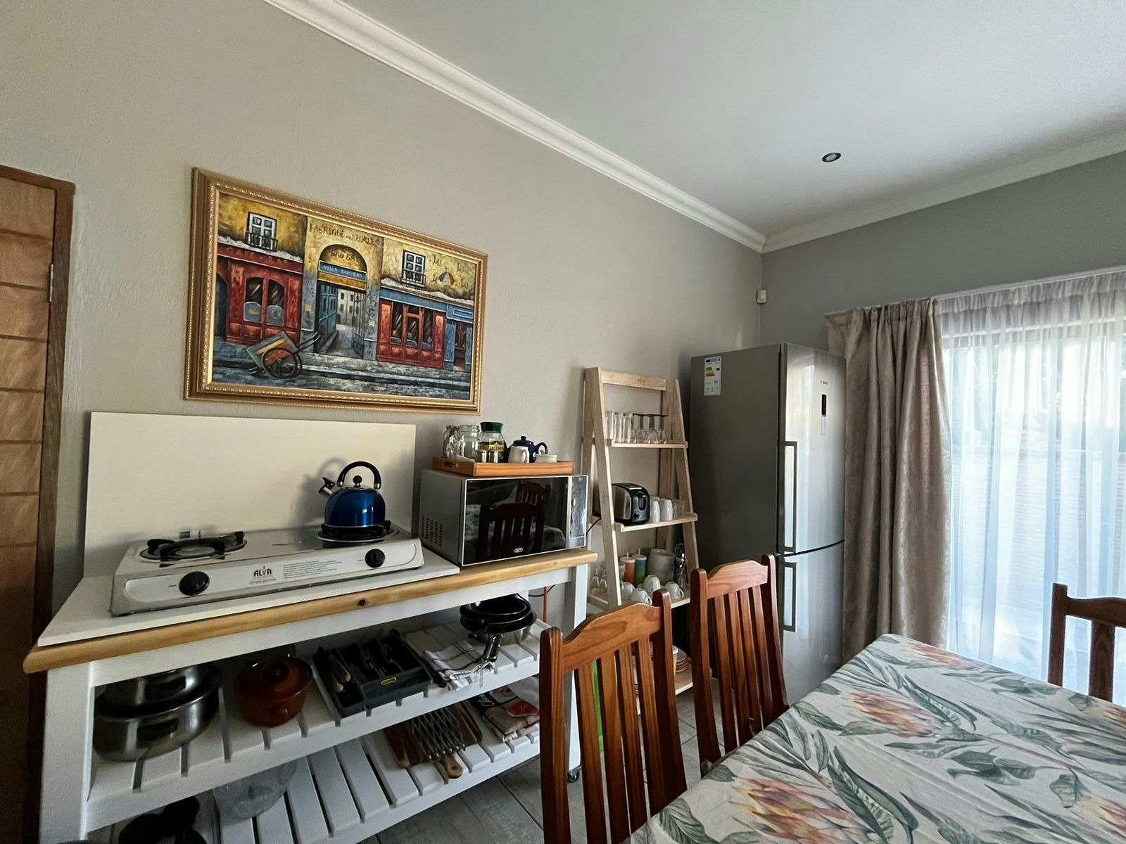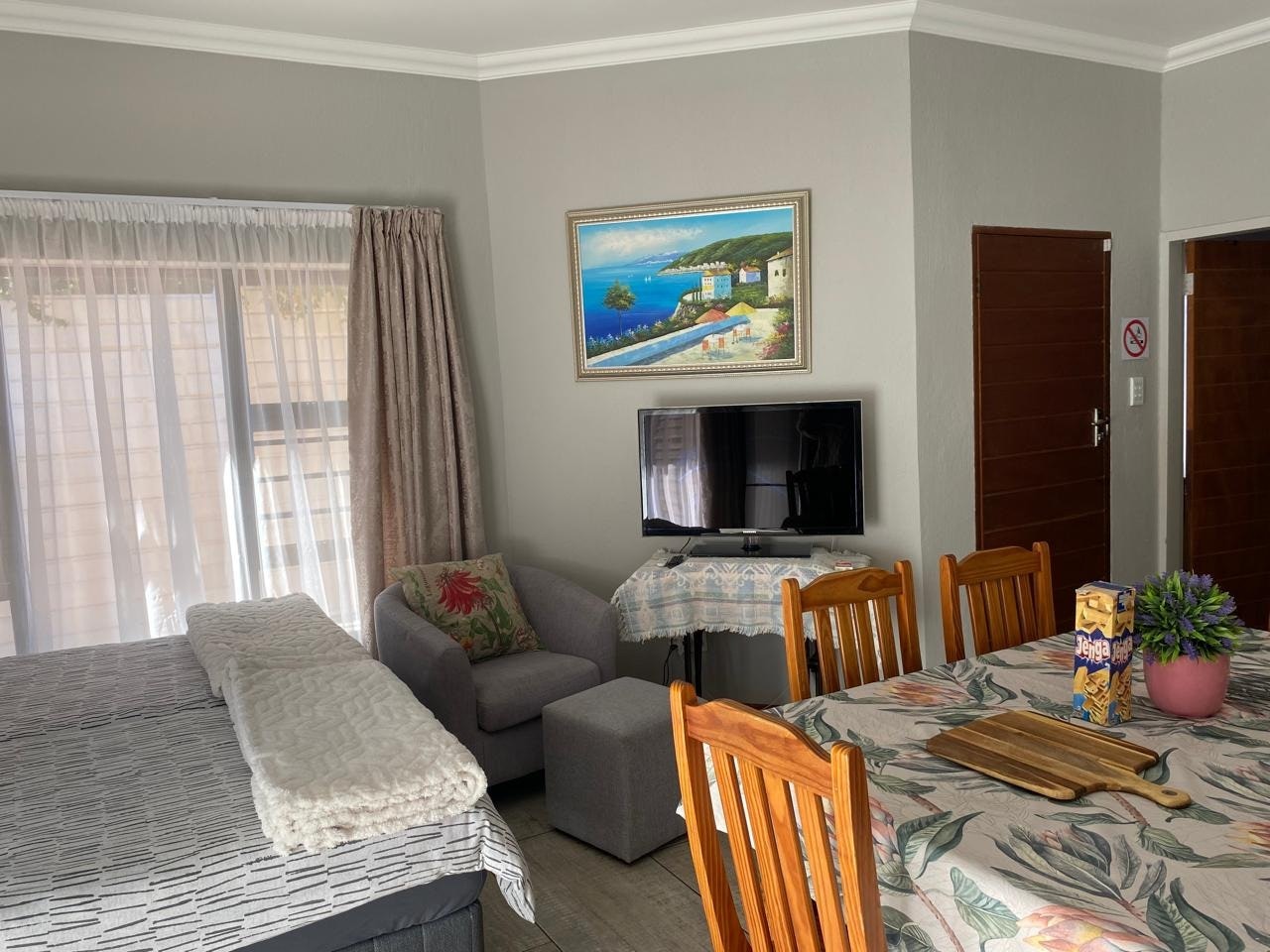 Die oopplan-leefarea sluit 'n spasie in vir maaltydvoorbereiding, toegerus met 'n tweeplaat-gasstoof, mikrogolfoond, broodrooster, wasmasjien, eetgerei, breekware, tee- en koffiemaakgeriewe en 'n yskas-vrieskas. Die sitkamer en eetarea bied gemaklike sitplek vir eet en ontspanning. Vir gaste se vermaak is 'n TV en toegang tot gratis WiFi beskikbaar.