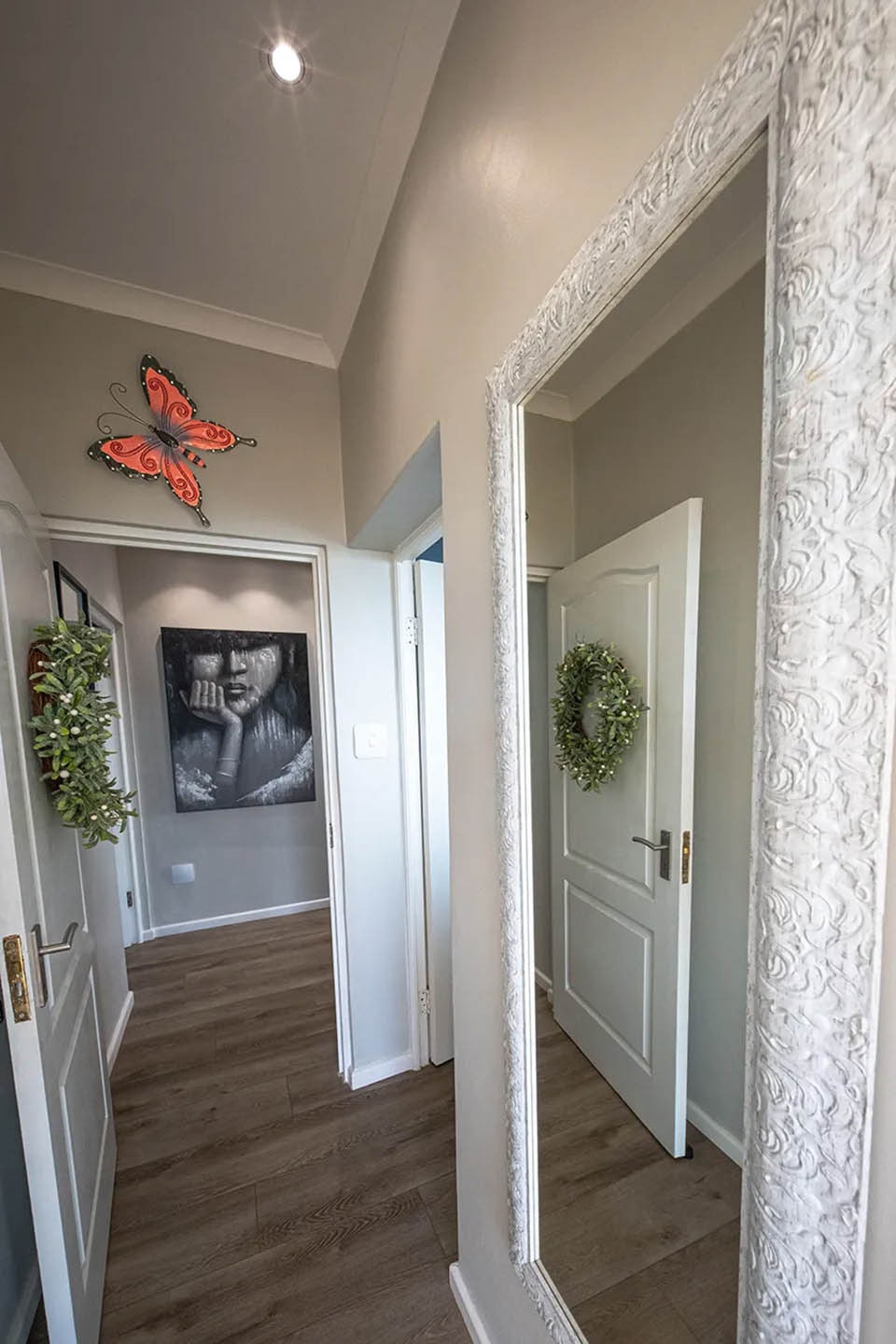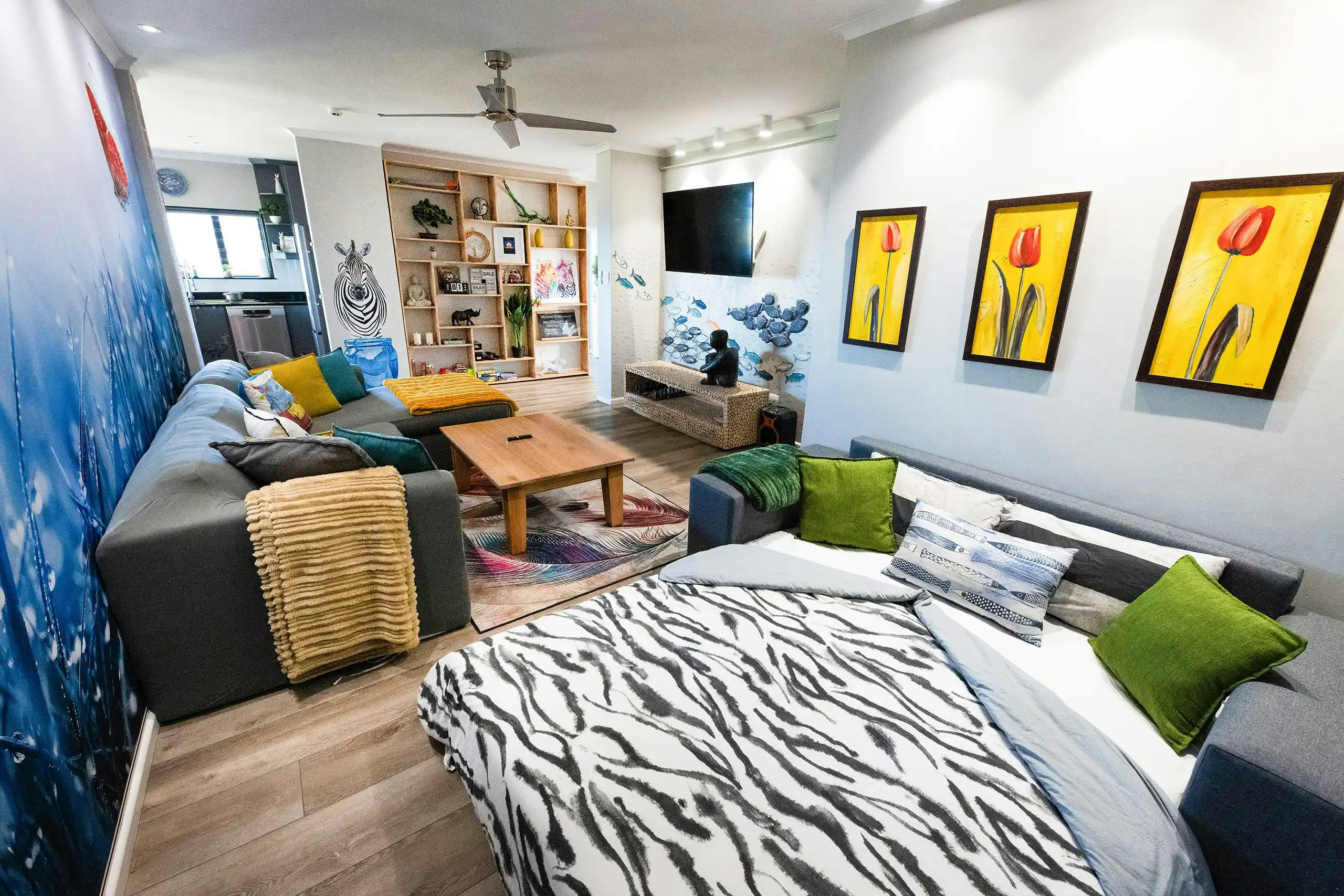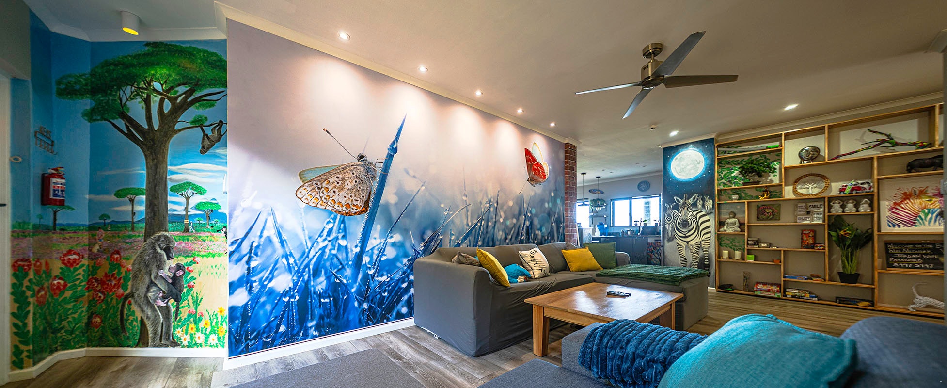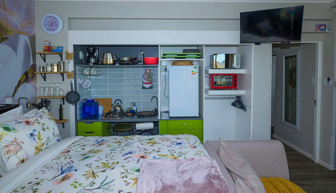 The Butterfly Villa are located in Pringle Bay in the Overberg region, within the UNESCO Kogelberg Biosphere. The property is a 500 m walk from the beach, restaurants, and shops, and offers panoramic views over the ocean, village and False Bay. The 2 private self-catering Suites occupy the 207-square-metre ground floor of the private villa and operate 90% off-grid using solar power.