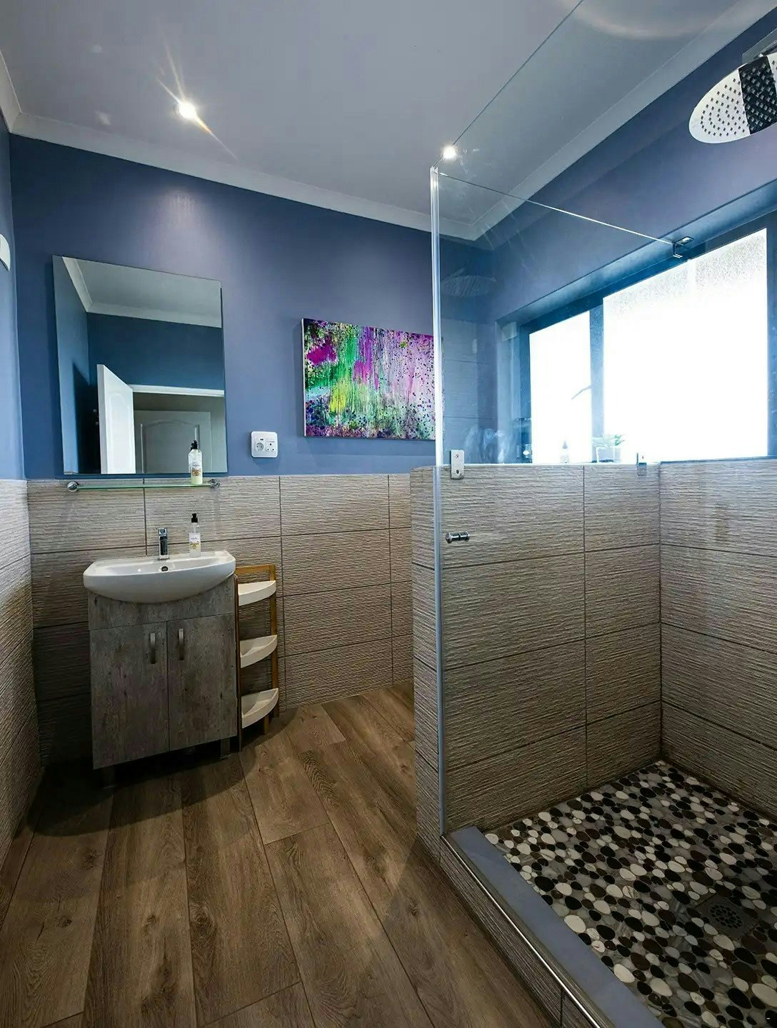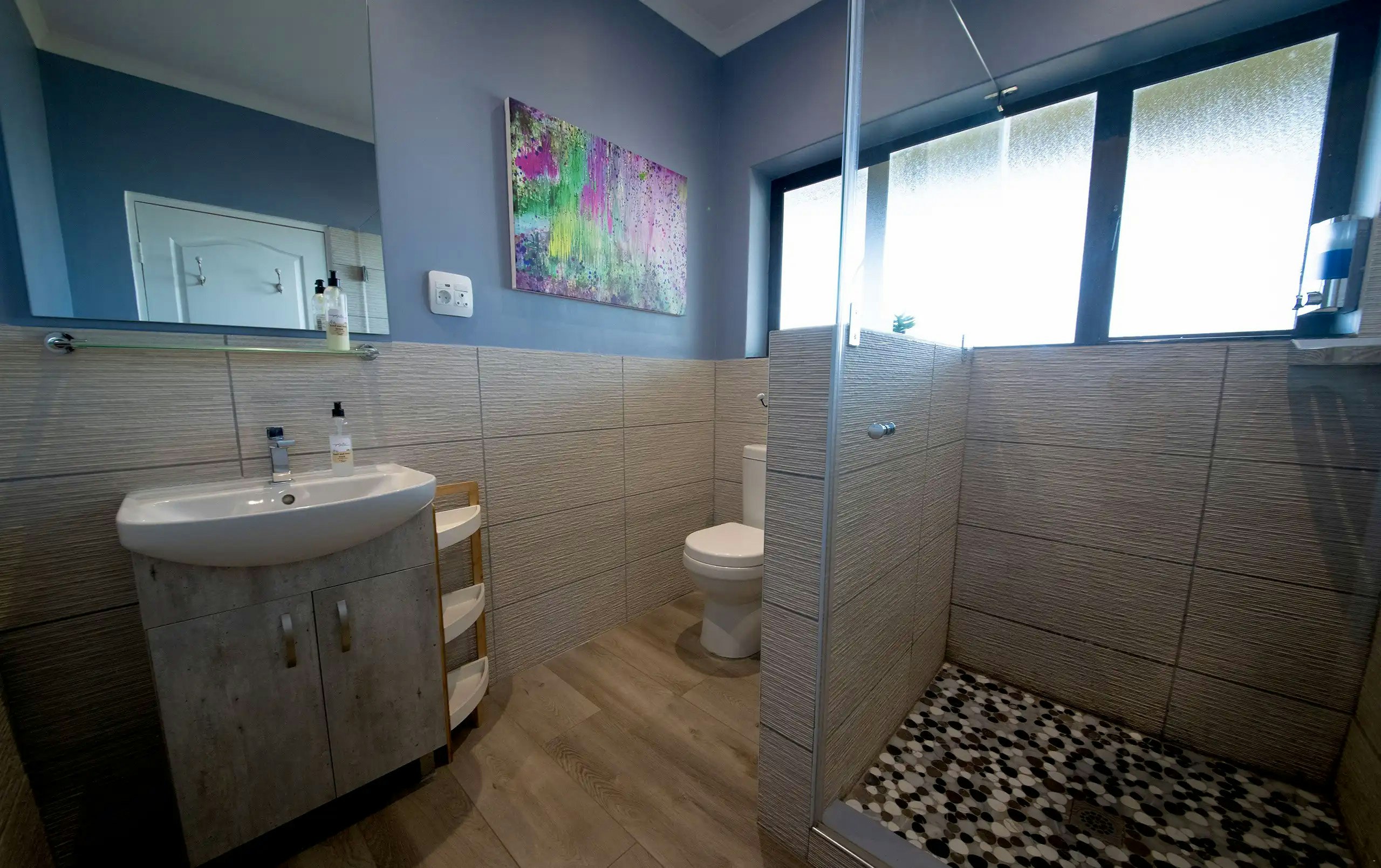 On-site amenities include 2 private Jacuzzis, Wi-Fi, premium TV channels, a large outdoor fire pit, a gas braai/bbq, outdoor blinds, filtered water, a washer-dryer and secure off-street parking for up to 6 vehicles. The Suites are pet-friendly by prior arrangement and are wheelchair-accessible with wide passages and one small step at the entrance.