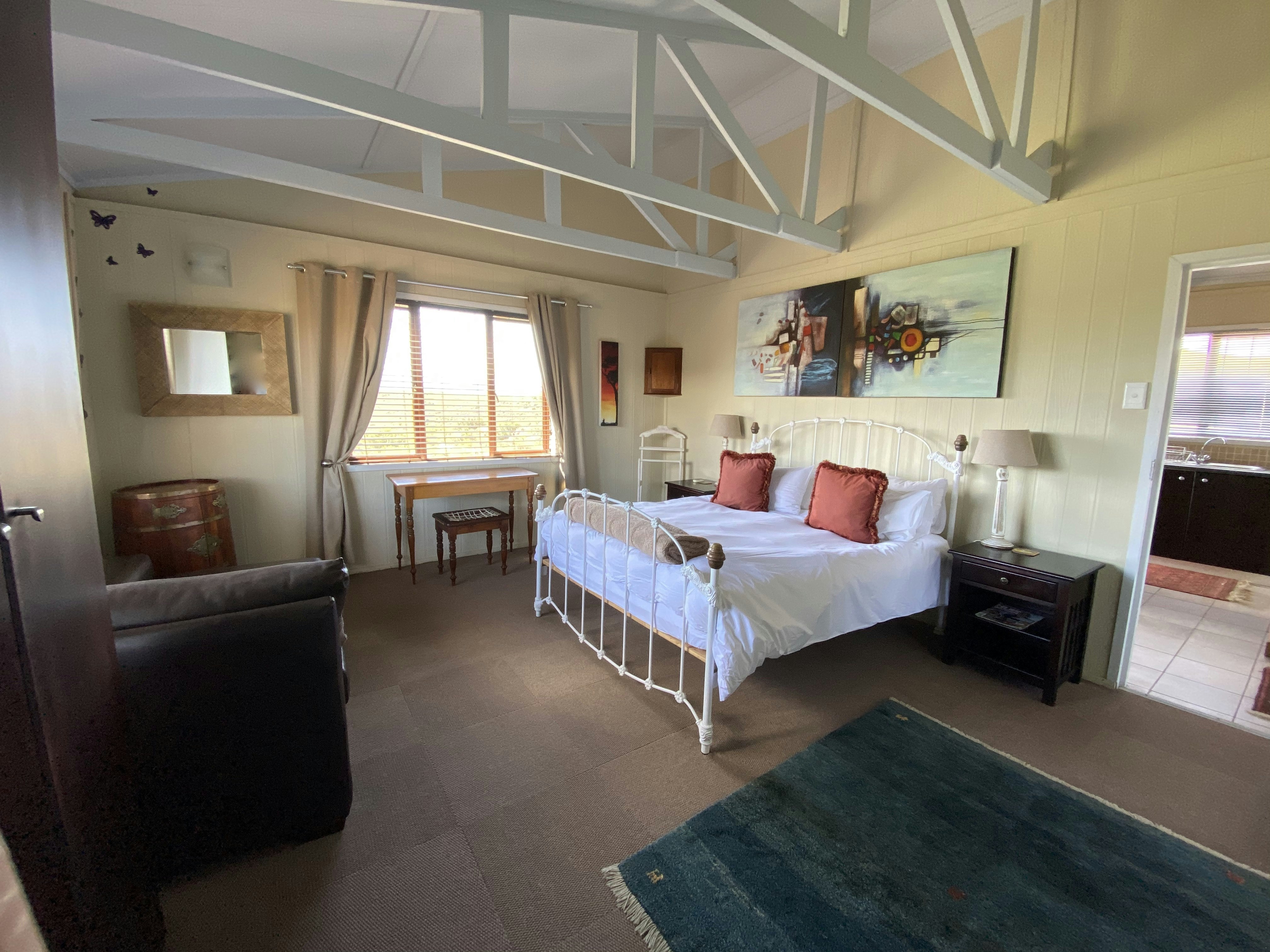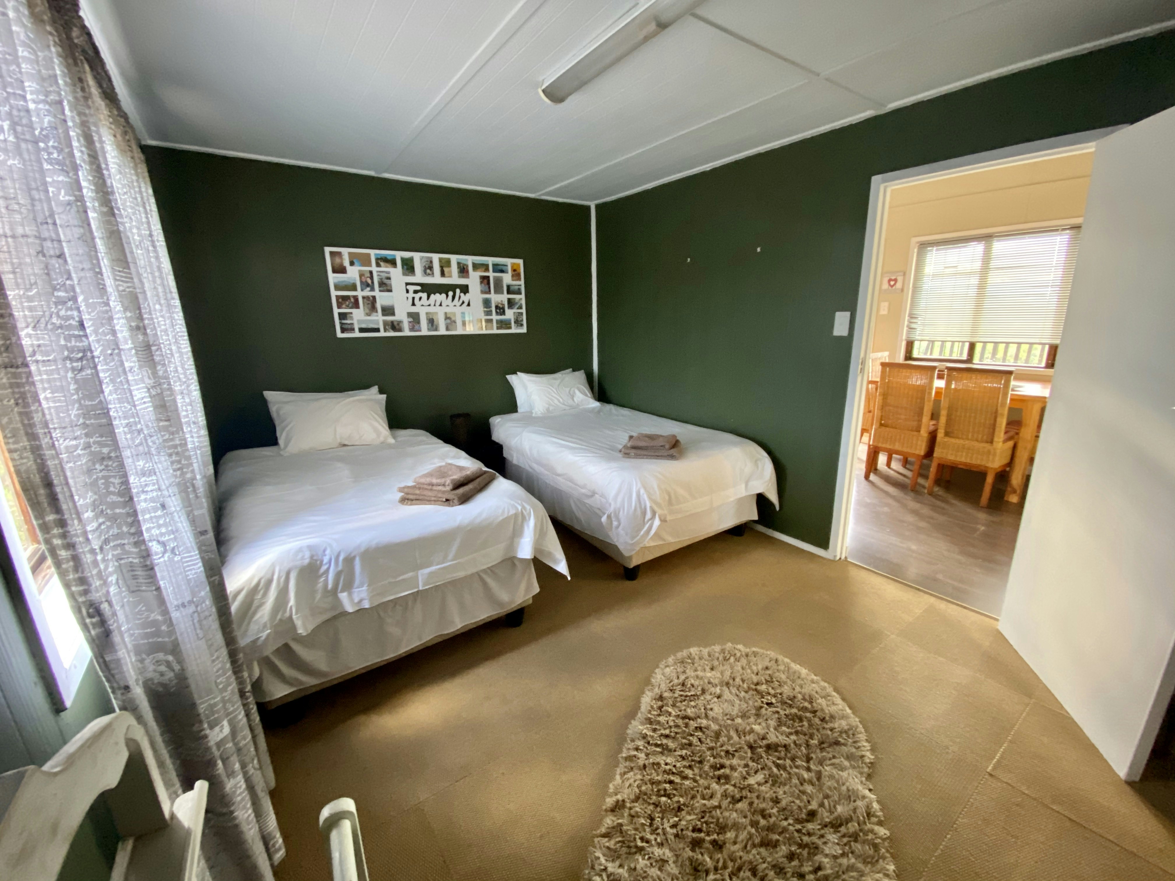 Each chalet has 2 air-conditioned bedrooms, a bathroom, kitchenette and balcony. The main bedroom is furnished with a queen-size bed and the second bedroom has 2 three-quarter beds; all bedding and towels are included. The bathroom is accessed from both bedrooms and includes a shower, toilet and basin. The kitchenette is equipped with a small fridge, microwave, kettle, toaster and 2 plate stove; all cutlery and crockery you will need are included. Mobile braais are available on request.