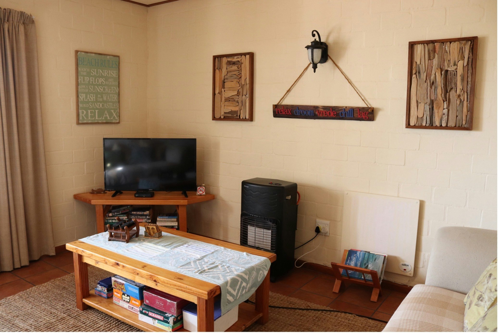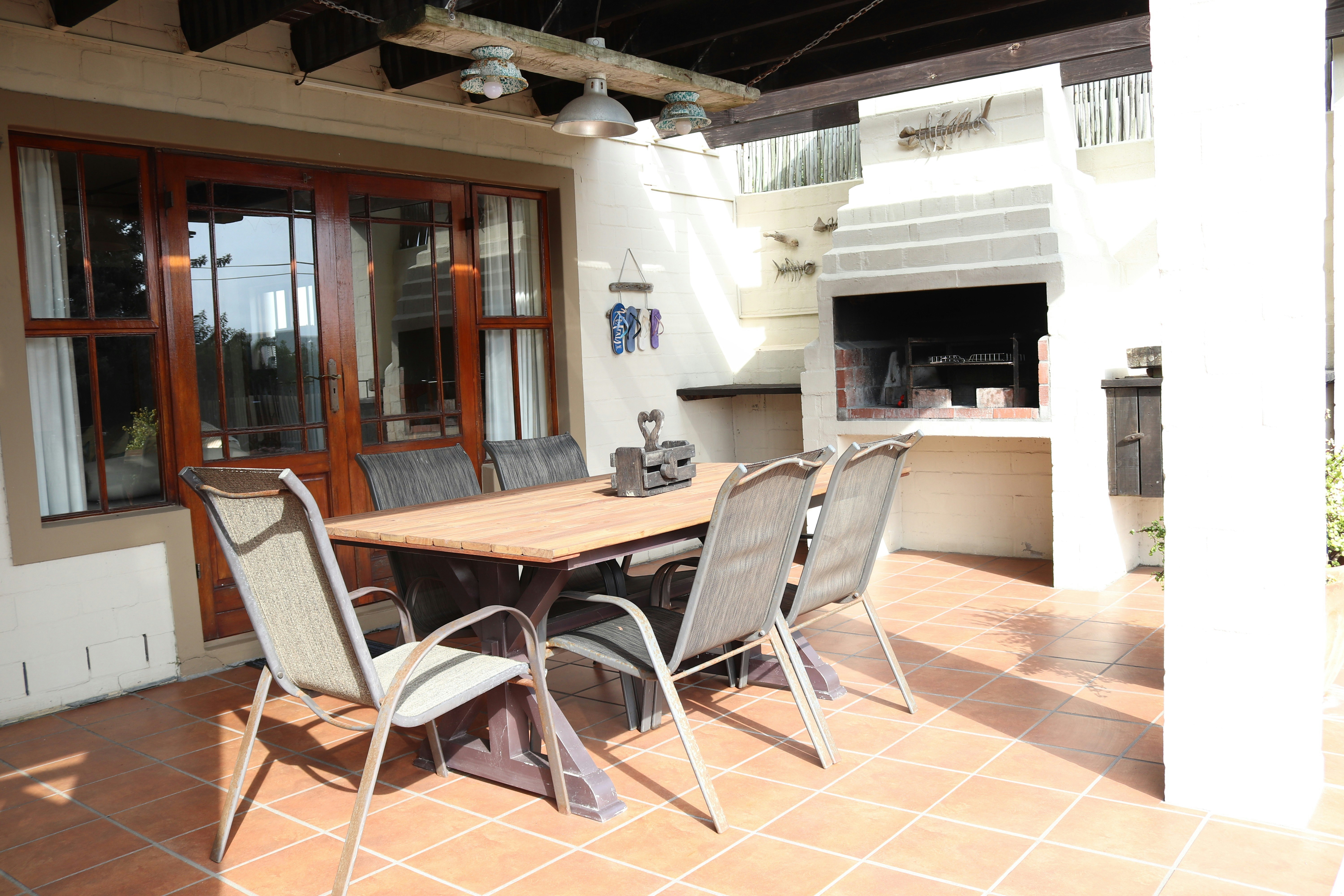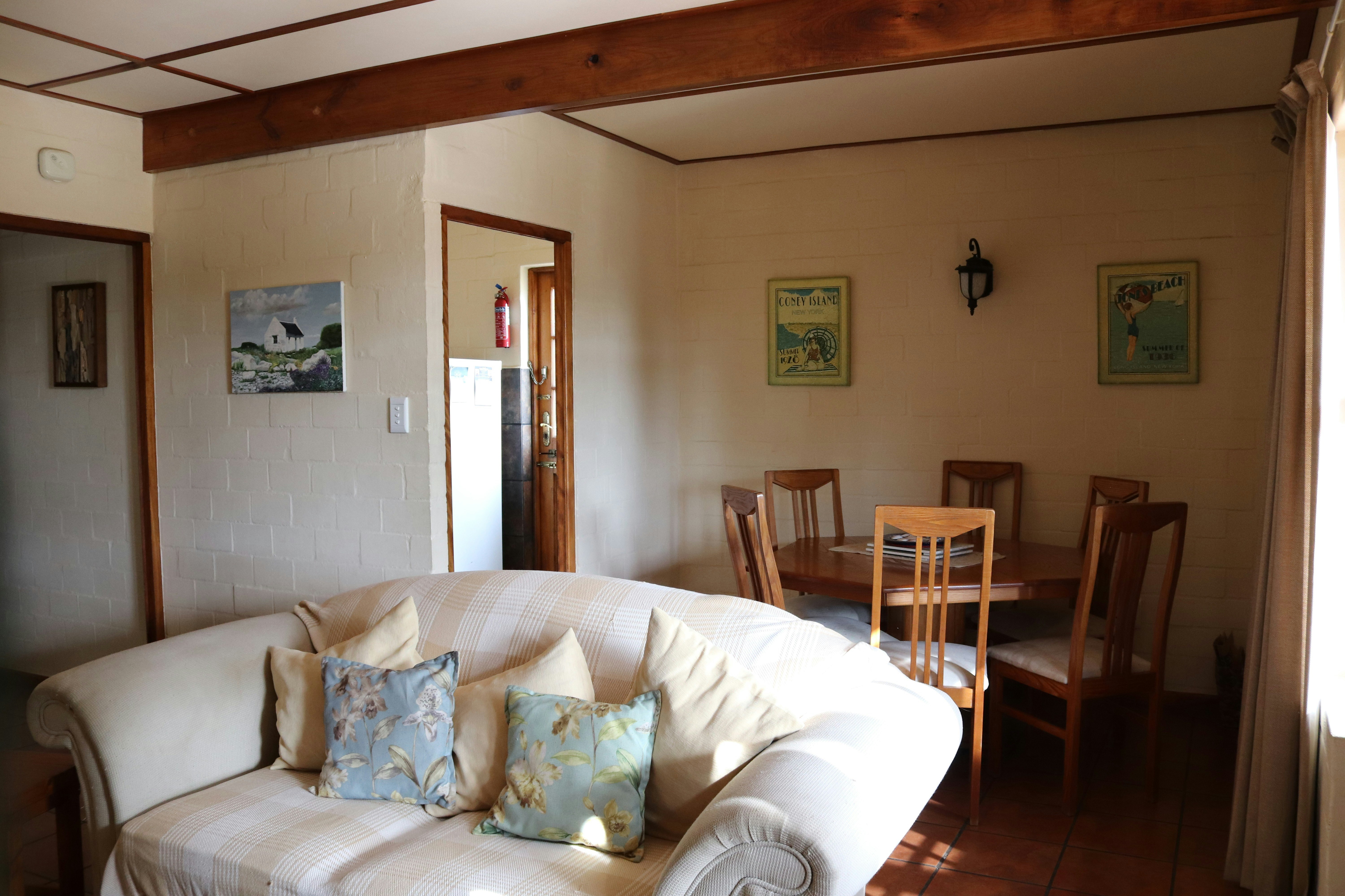 Die kombuis is volledig toegerus met geriewe soos 'n yskas-vrieskas, 'n mikrogolf, 'n oond, stoof en oorgenoeg kasruimte om breekware en eetgerei te bêre. Die sitarea en eetarea is oopplan en bied gerieflike sitplek, 'n TV met 'n volledige DStv-pakket, 'n eetkamertafel met stoele en Franse dubbeldeure wat toegang bied tot die patio met braaigeriewe en 'n veerpyltjiebord vir gaste se genot. WiFi is beskikbaar.