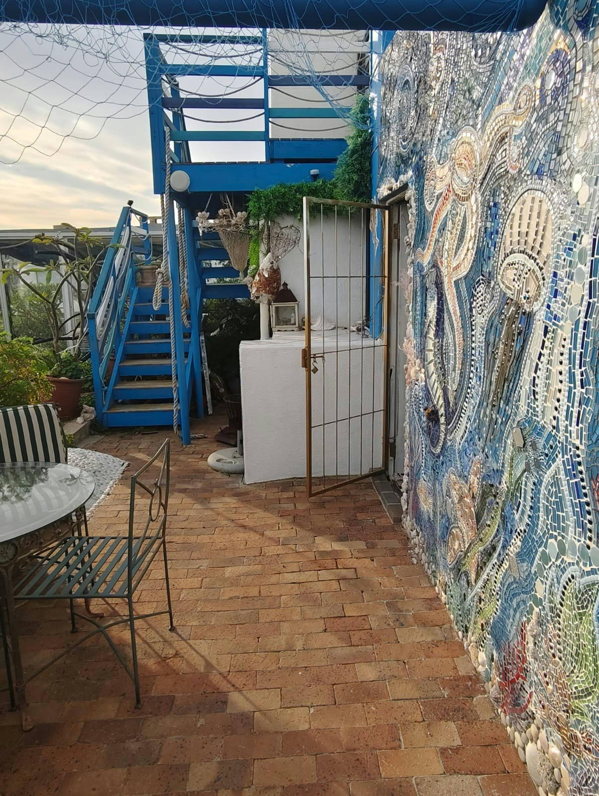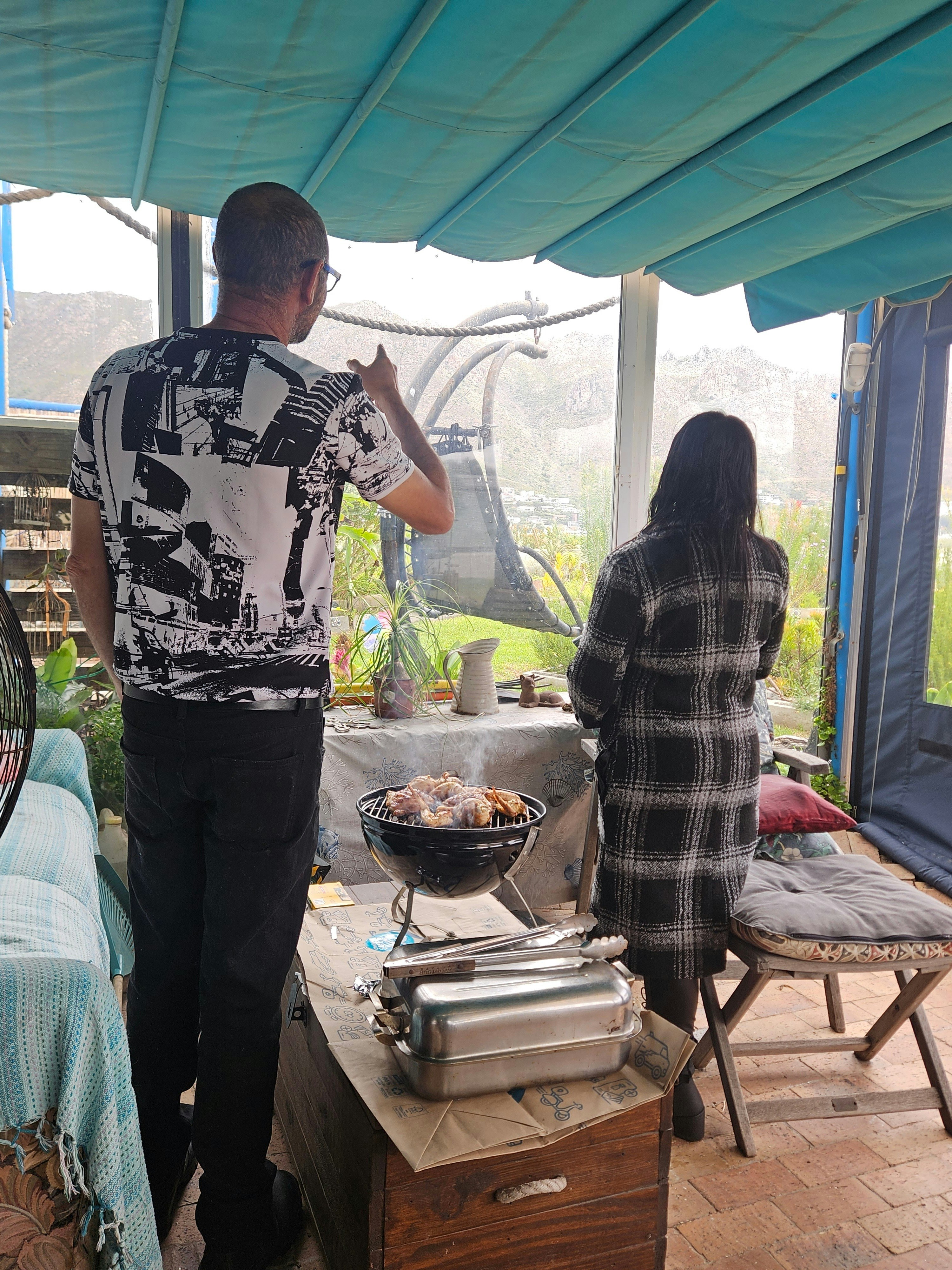 Guests have access to the garden, which offers braai facilities, including a fold-up braai, a small Weber, and a fire pit with surfboard seating. The lookout deck is available for use and is the perfect spot to enjoy a sundowner while taking in the 360° views of the sea and mountains.