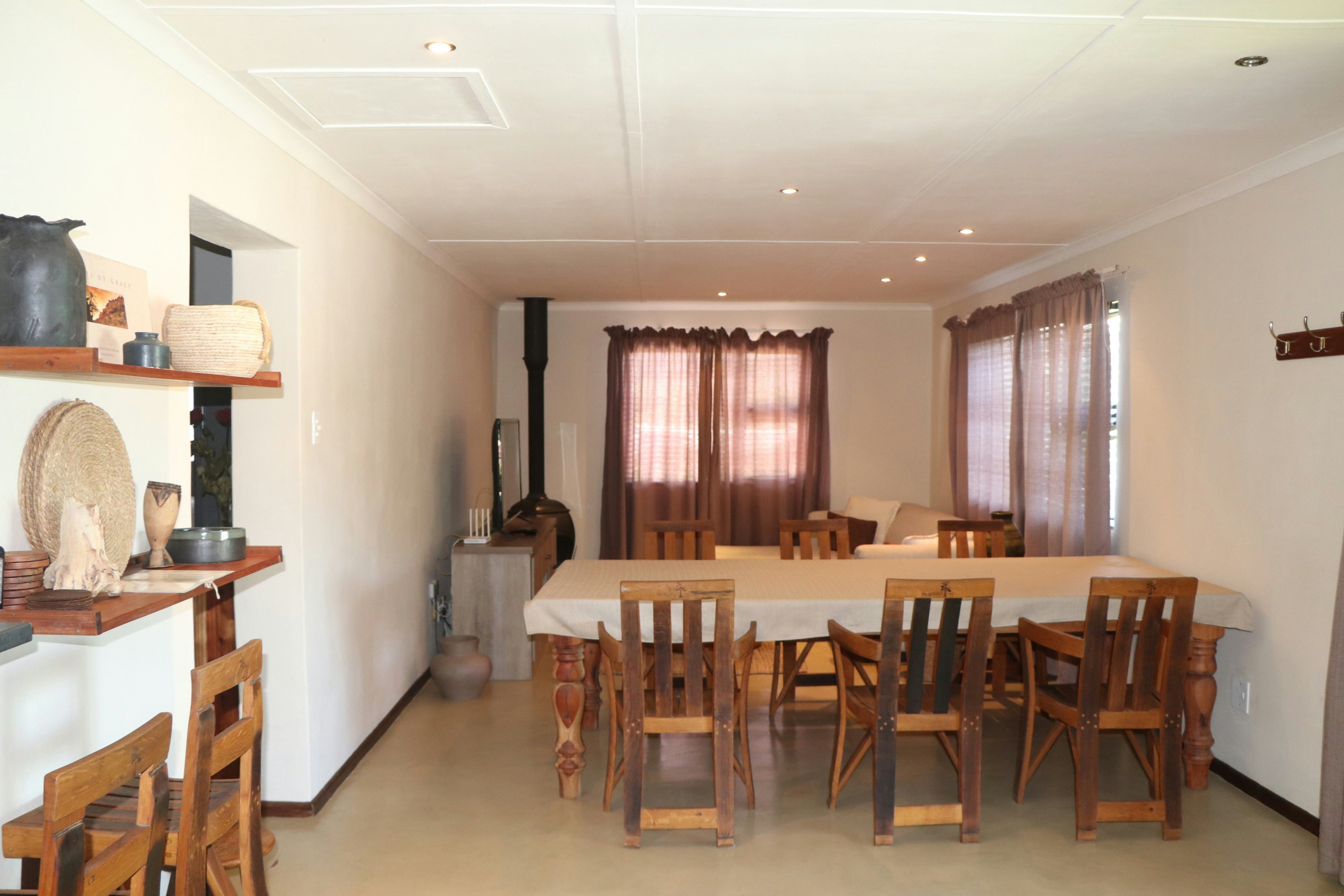 The kitchen is equipped with a stove and oven, a microwave, a fridge, a washing machine, a water filtering system, as well as tea- and coffee-making facilities and opens onto the indoor braai area. Meals can be enjoyed at the dining table, and guests can relax in the lounge which features a TV with an internet connection to access Netflix and DStv.