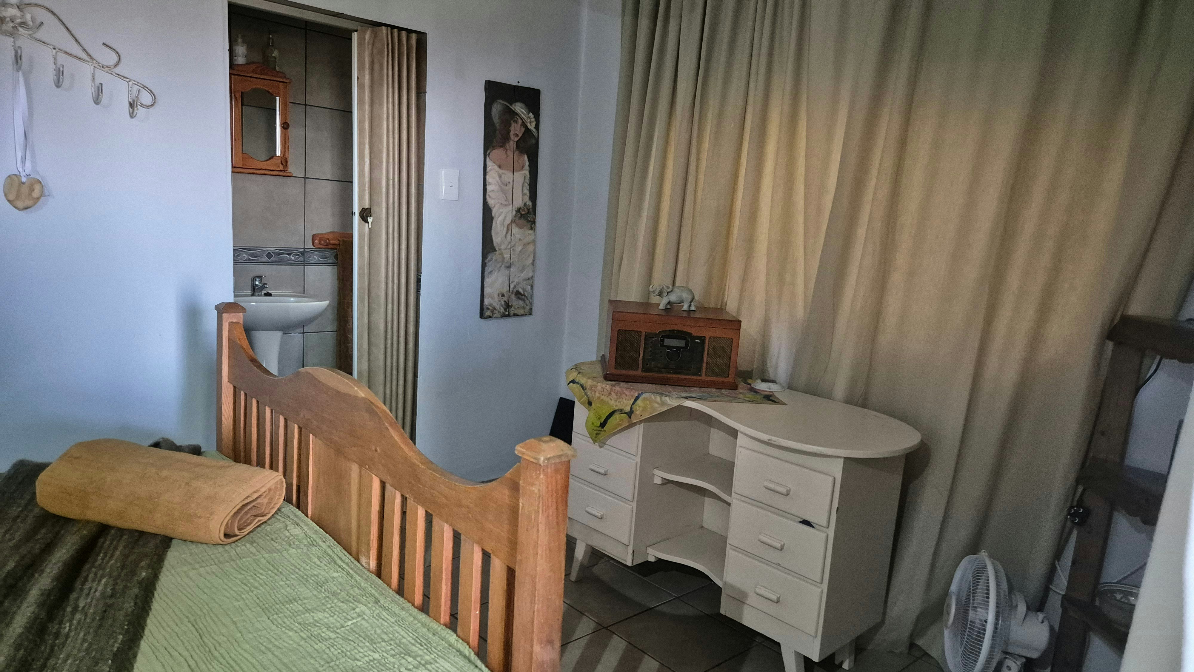 Buite bied die eiendom 'n pragtige tuin met uitsig oor die heuwels, asook 'n boma-area wat ekstra buitesitplek bied.