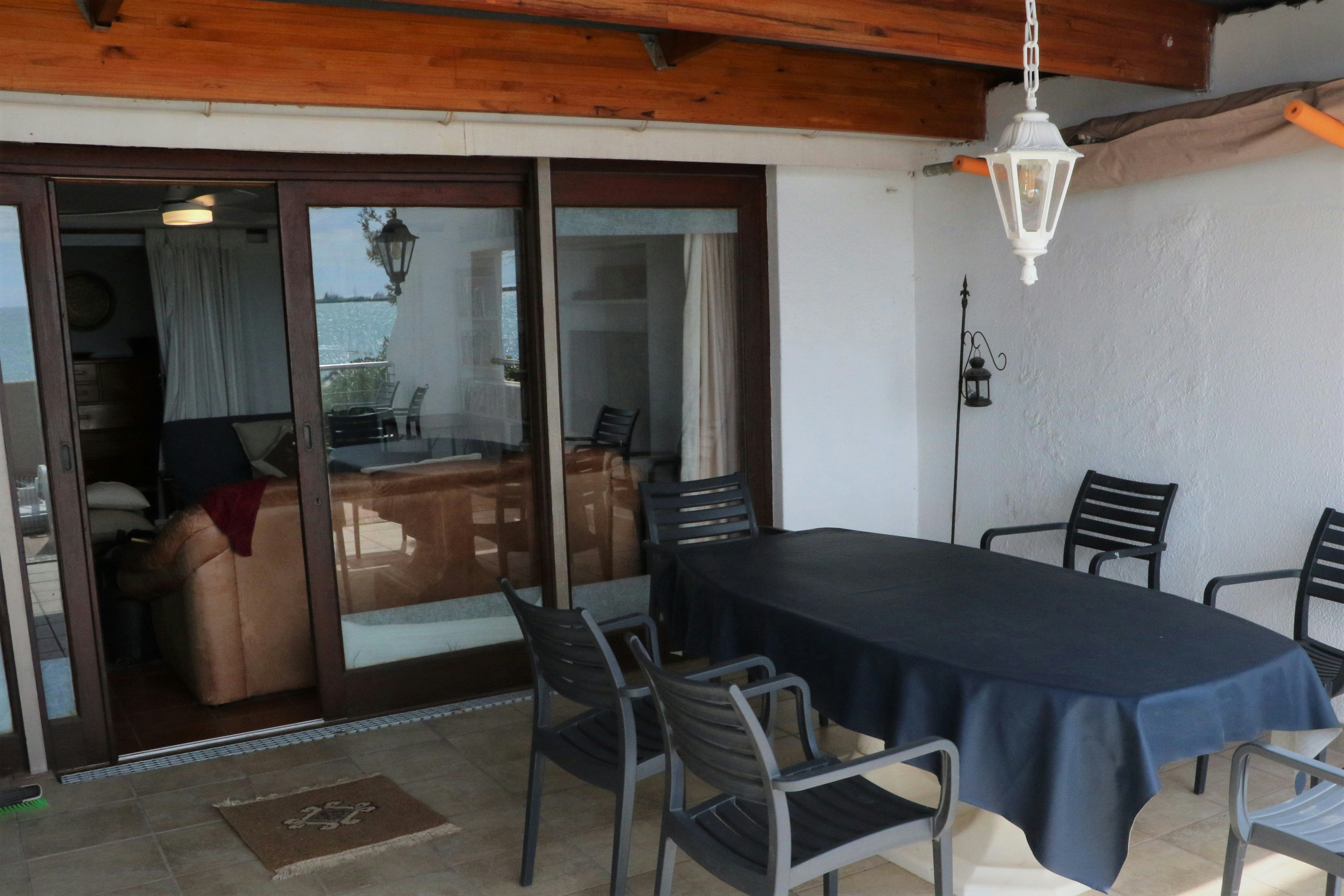 Guests can enjoy their meals in the dining area, which is linked to the living area. The living area leads out onto a verandah with a built-in braai and an outdoor patio set. From the veranda, various bird species can be observed in the indigenous garden, as well as along the beach. The fortunate may even see dolphins, whales, and seals from the house.