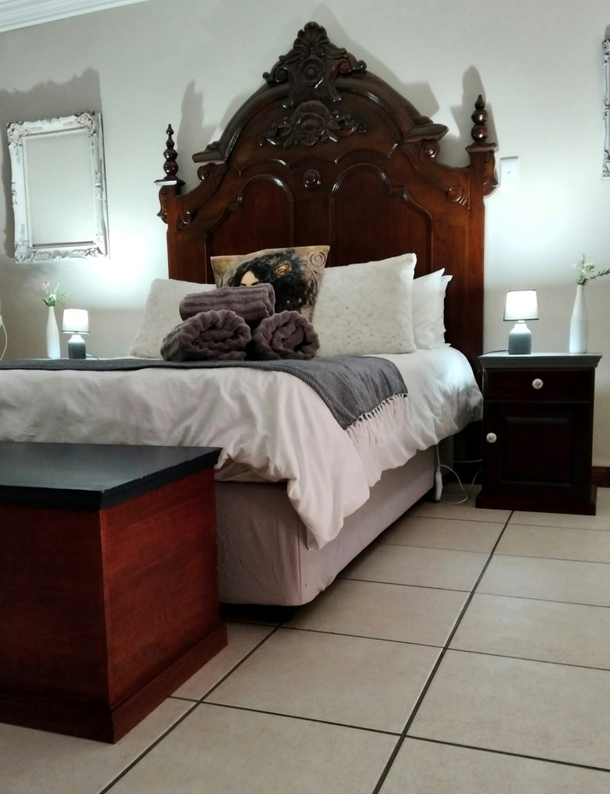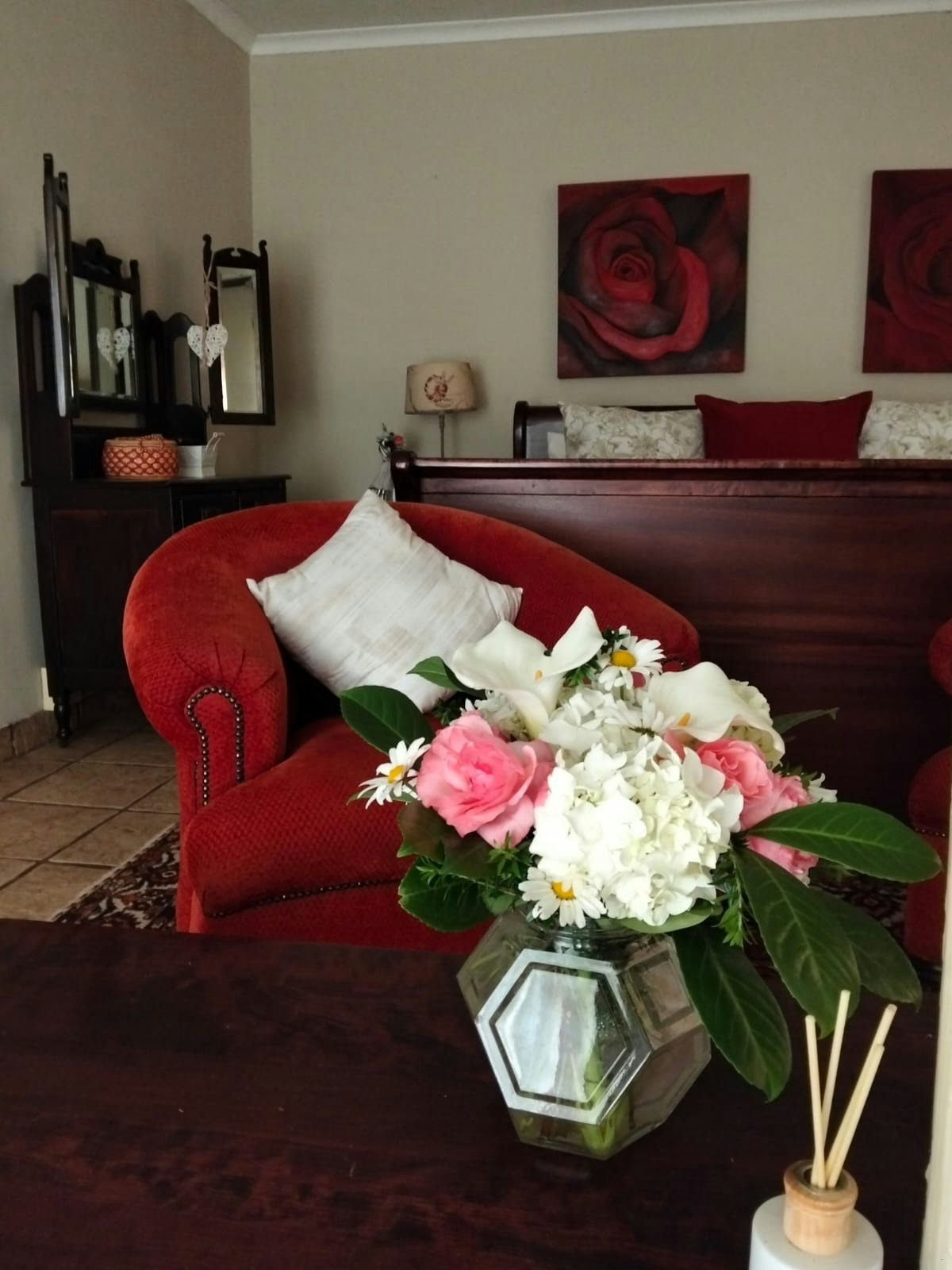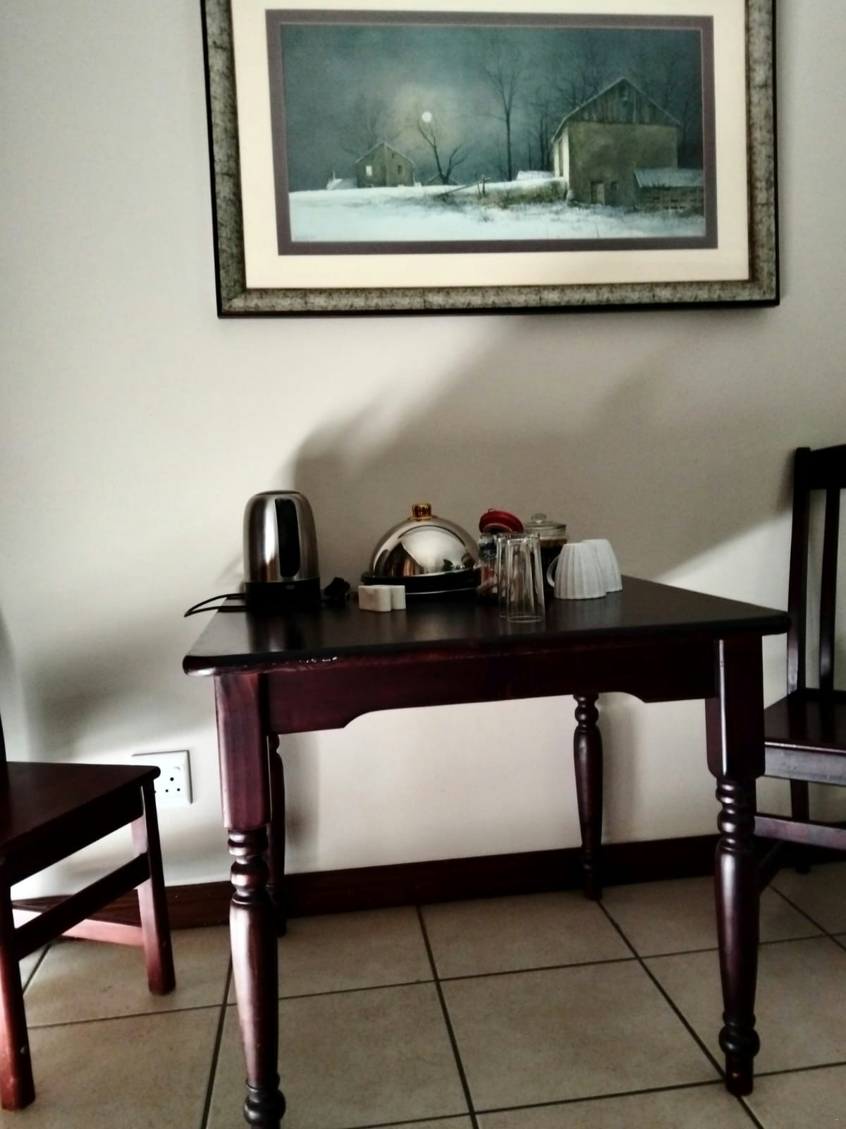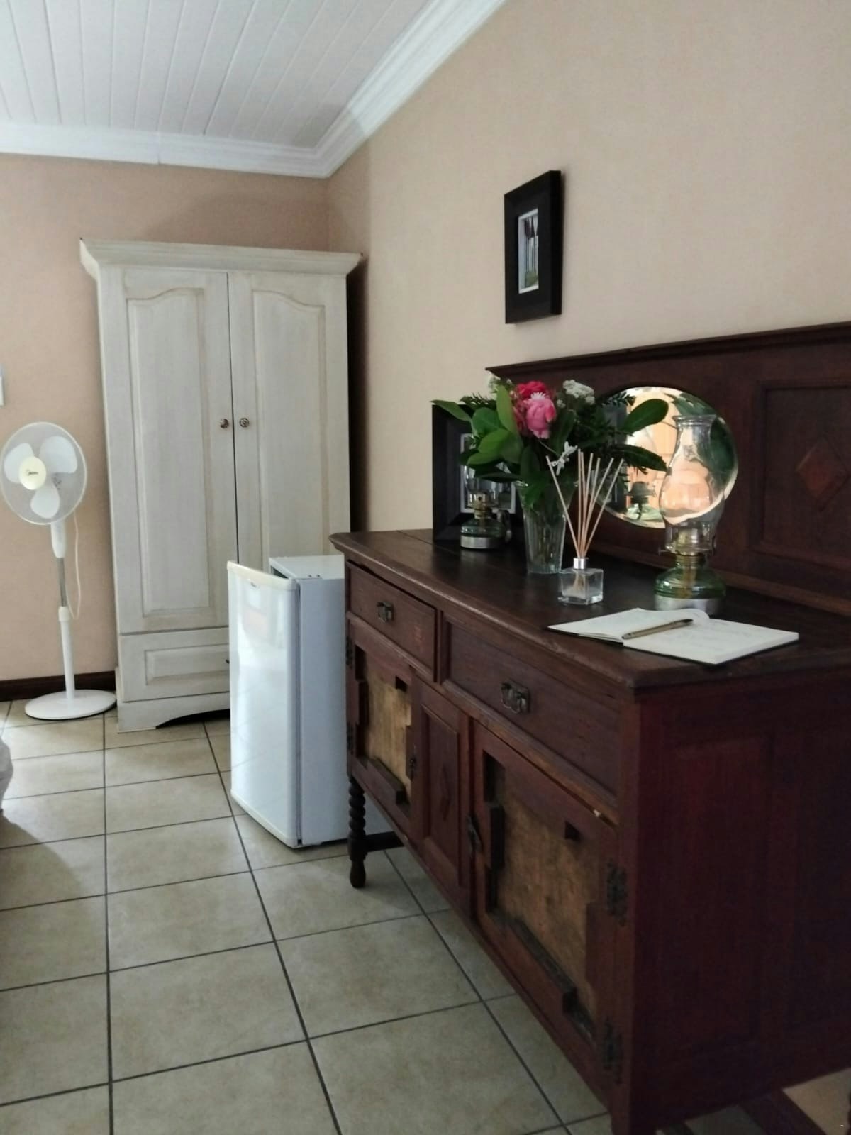 Outside, guests can enjoy a well-maintained garden with a braai area and concrete outdoor furniture, perfect for relaxed evenings. Large trees provide ample shade during the summer months, and the garden includes a few fruit trees. There is also an undercover entertainment area with a table and seating for 6, as well as a splash pool for guests to enjoy. A carport is available with space for 2 vehicles.