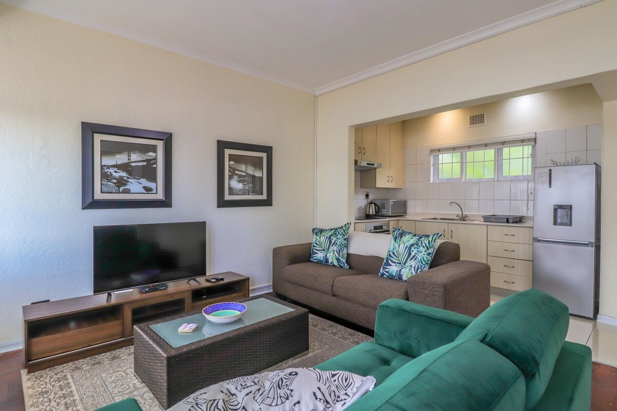 Woonstel is netjies en het alles wat jy nodig het, kort net 'n motorhuis. Goed ingerigte woonstel, en naby als, loopafstand van die stadion, restaurante en Spar ens. Enigste probleem is die parkeerplek, dit is verskriklik moeilik om jou motor in en uit te trek en daar is ander motors op die sypaadjie wat dit nog moeiliker maak om by die afrit te kom.