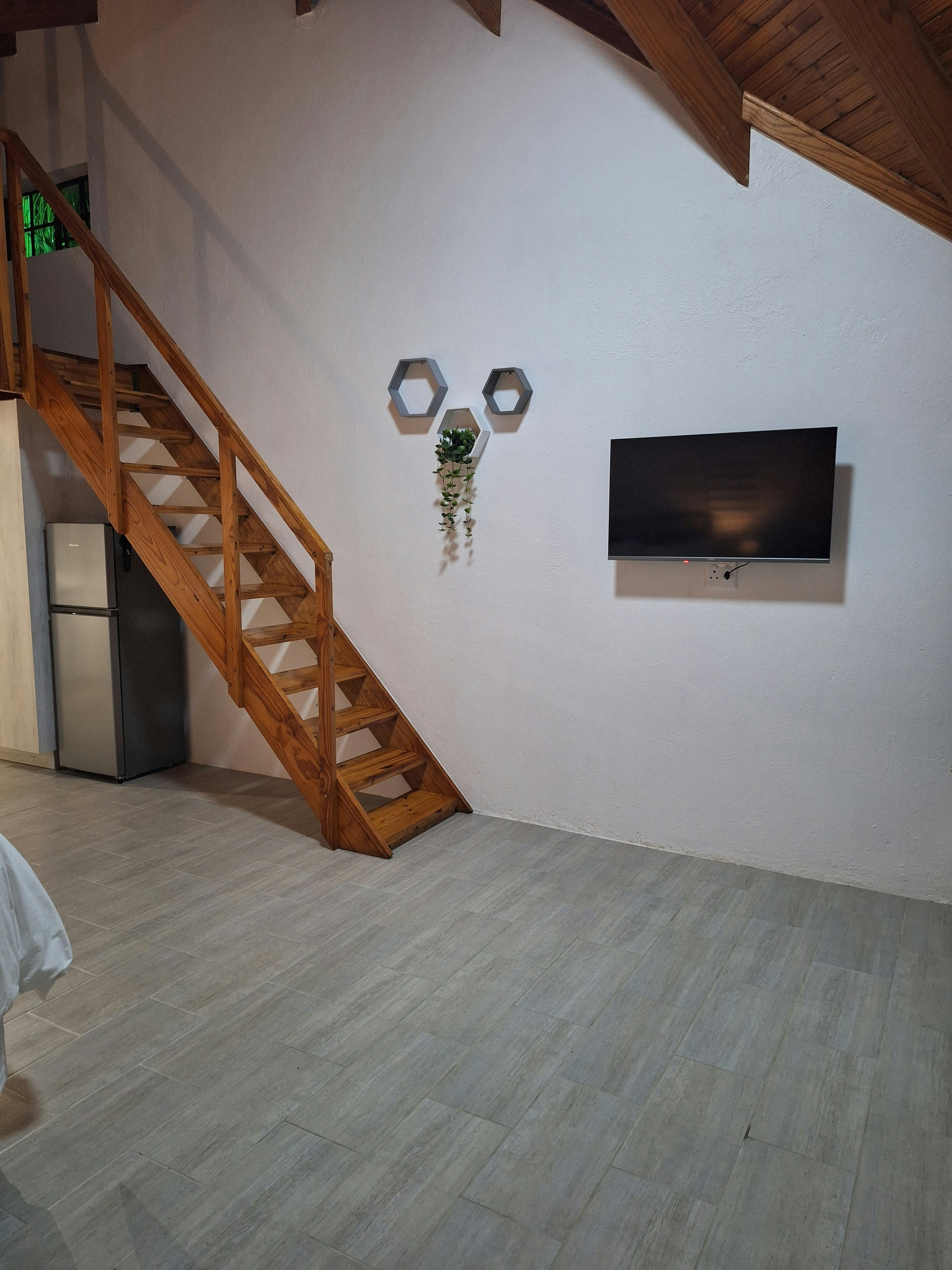 Die eenheid het slaapplek vir 4 gaste en beskik oor 'n oopplan-uitleg met 'n slaaparea en kombuisie. Die slaaparea het 'n koningingrootte-bed en 'n bababed, of 'n kindbed is op versoek beskikbaar. Die gedeelde badkamer het 'n stort.