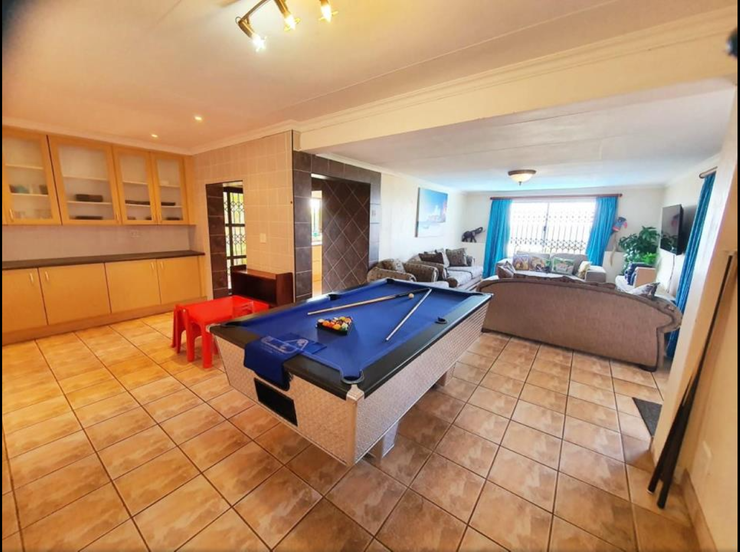 Die kombuis is toegerus met alles wat gaste vir selfsorgverblyf benodig onder meer 'n yskas, stoof en oond, mikrogolf, koffie- en teemaakgeriewe, eetgerei en breekware. Die sitkamer het gemaklike sitplek en 'n TV met DStv. Die leefarea het 'n pooltafel vir vermaak.