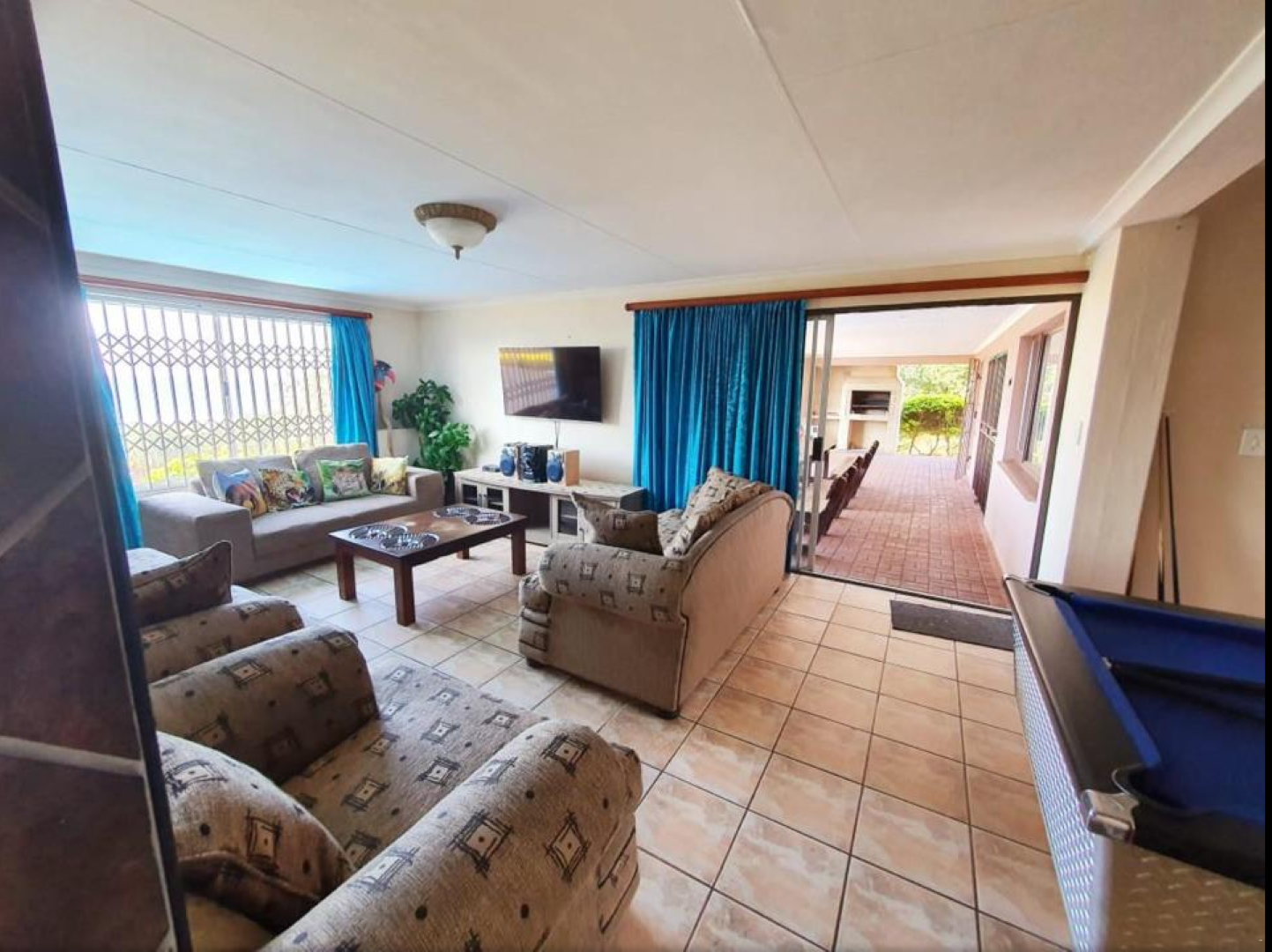 Daar is 'n groot swembad en tuin. Die patio het braaigeriewe en buitemeubels, perfek vir kuier.