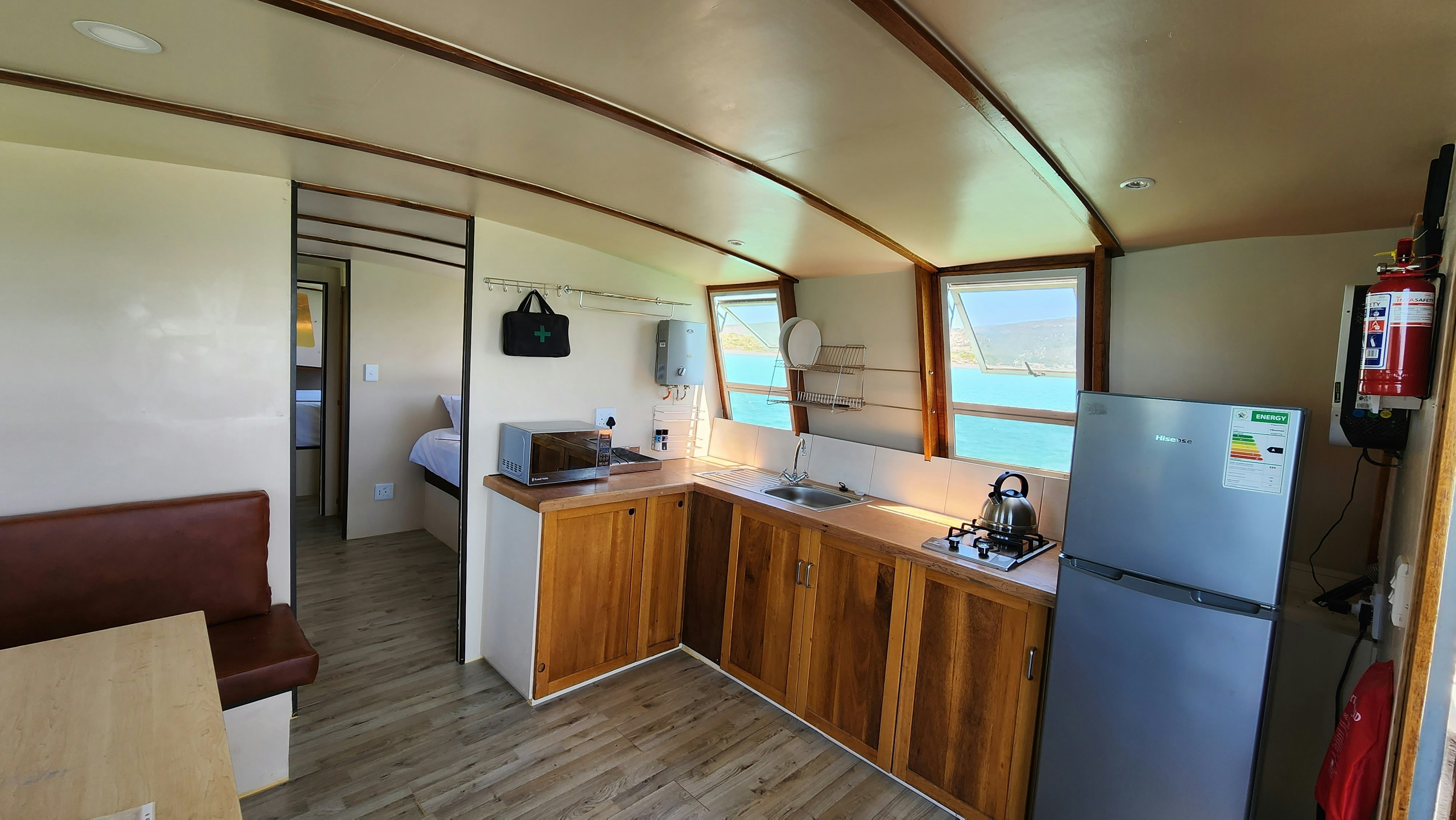 Die huisboot bied slaapplek aan 2 gaste en beskik oor 2 slaapkamers en 1 badkamer. Die hoofslaapkamer het 'n dubbelbed en die tweede slaapkamer het 'n bed vir 2 kinders. Die badkamer het 'n stort, wasbak en 'n toilet.