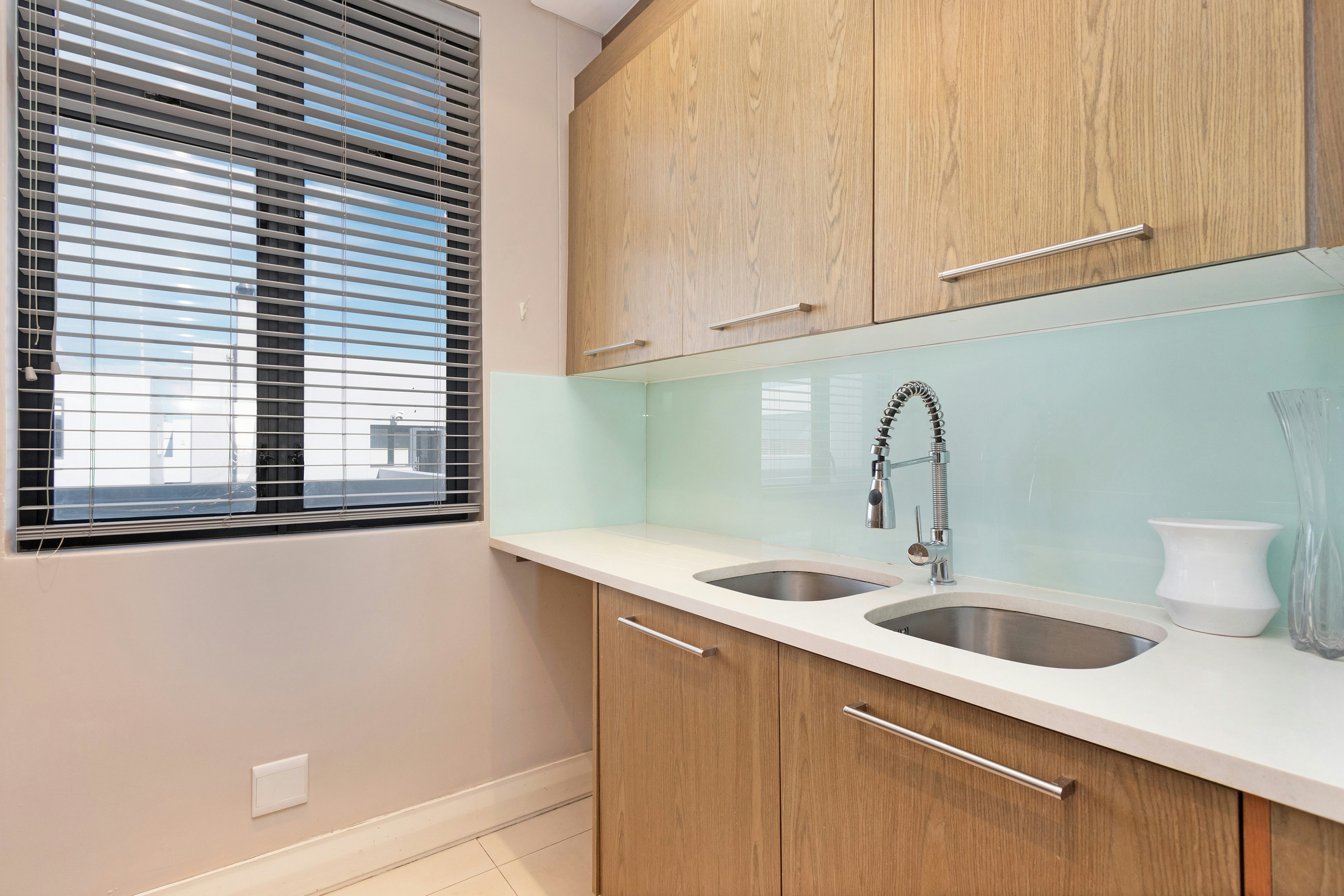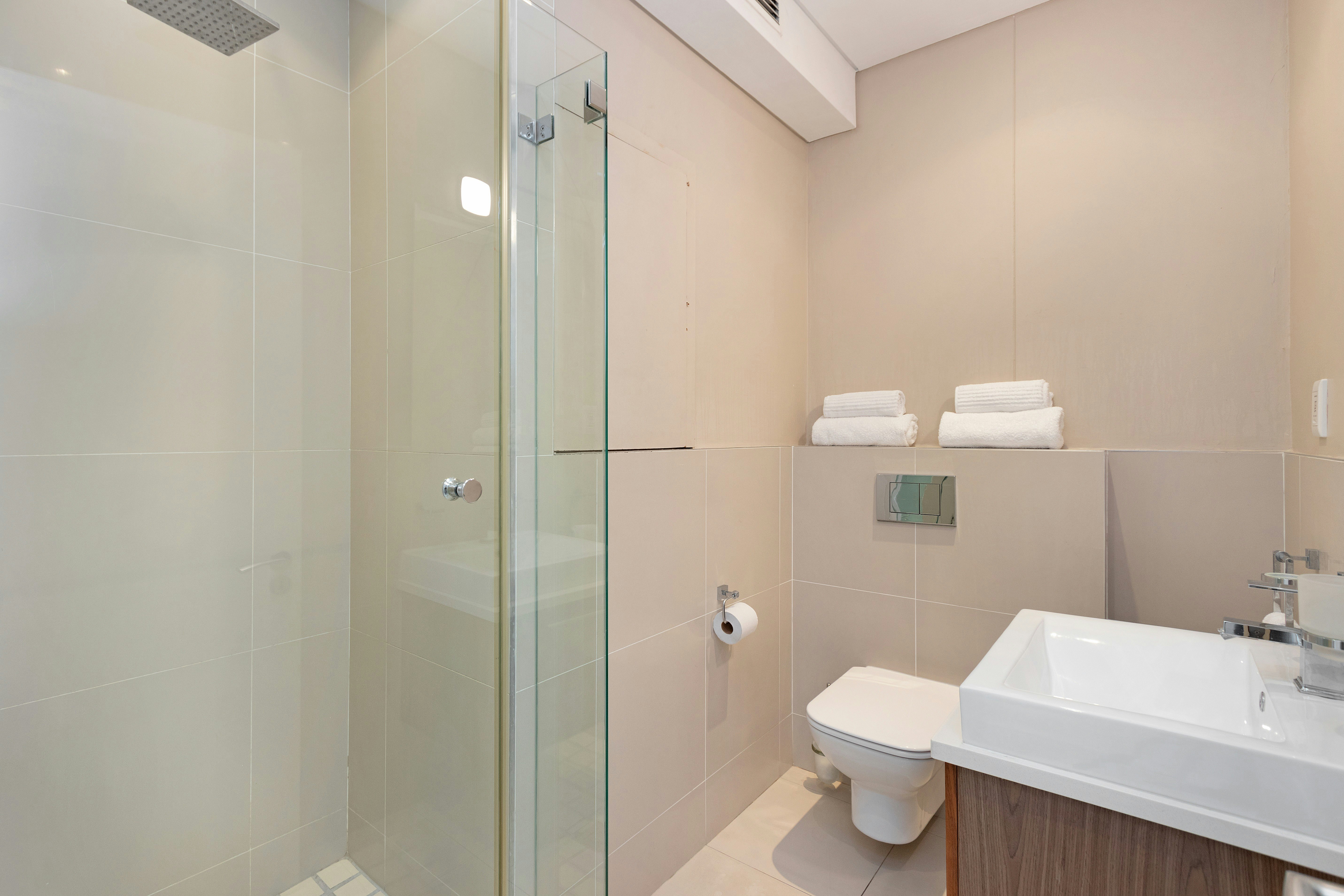 Die woonstel bied slaapplek vir 4 gaste en bestaan uit 2 slaapkamers en 2 badkamers. Die eerste slaapkamer is gemeubileer met 'n koninggrootte bed en 'n inloopkas wat lei na 'n en suite-badkamer met beide 'n bad en 'n stort. Die tweede slaapkamer bevat 2 enkelbeddens, 'n lessenaar en 'n stoel, en maak gebruik van 'n aparte badkamer met 'n stort. Linne en badhanddoeke word voorsien.