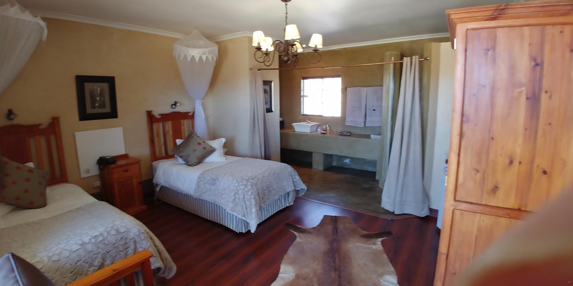 Guests have a choice of self-catering or restaurant facilities. We mainly serve traditional Karoo farm meals. The restaurant kitchen can also be made available to larger groups in a self-catering capacity. We do have a Wedding/ Conference venue. It can accommodate up to 120 guests. In addition, a shop is available for necessities.