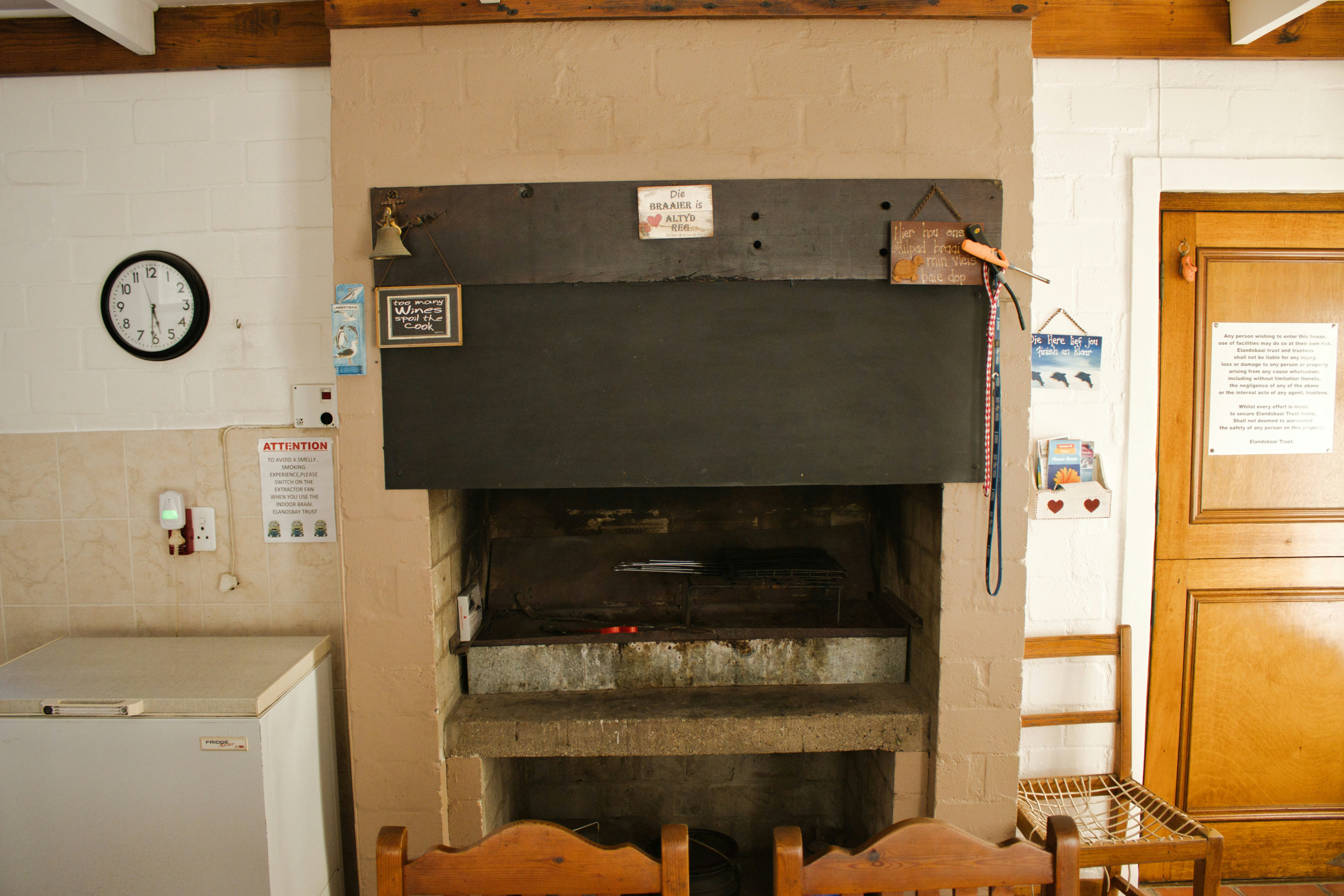 Die kombuis is toegerus met 'n yskas-vrieskas, 'n mikrogolfoond, 'n stoof, oond, eetgerei en breekware. Daar is 'n wasmasjien en 'n skottelgoedwasser vir gaste wat langer as 'n naweek bly. Die oopplan-leefarea het 'n sitarea en 'n eetarea met gemaklike banke en stoele, 'n binnebraai en 'n etenstafel. Die leefarea bied toegang tot 'n beskutte patio met 'n draagbare braai en buitesitplek.