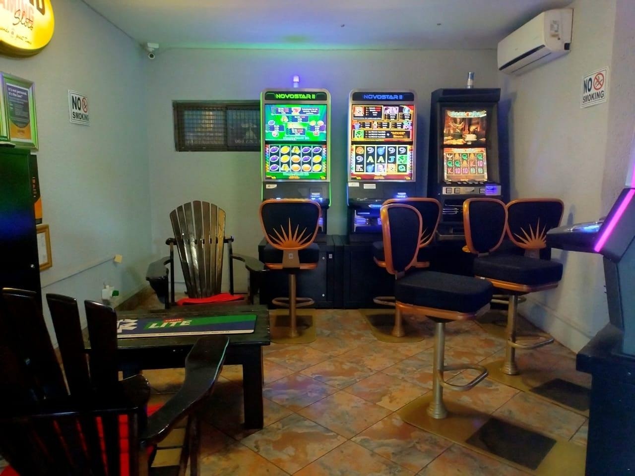 The property also features communal outdoor seating, a hookah lounge, a gaming machine room, and a bar area.