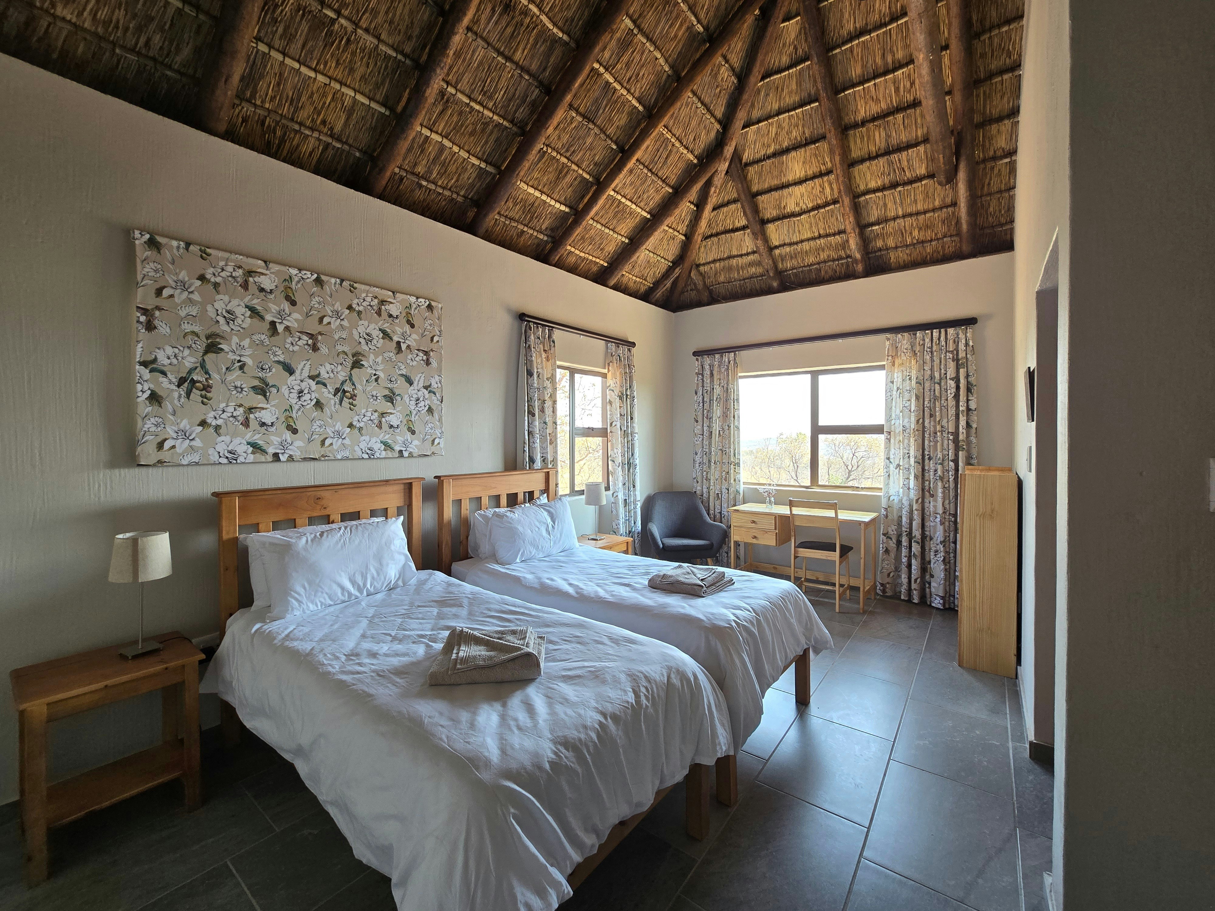 https://travelground.imgix.net/AAEAAQAAAAAAAAAAAAAA2e1a22b826d4129ebbff5f9b40736b04f426ba246b20eb718838185f5f10f837192fb9314ee602adff2aa75f9b2175e3b749?w=1440&h=960&fit=crop&auto=enhance,format,compress&q=80 was R3 826 nowFrom R3 252 per night (sleeps 6) 1 5 1 5 R516 Mabalingwe Nature Reserve 0480 Limpopo 021 201 8901 14:00-19:00 10:00 -24.822705130906 28.061348403866