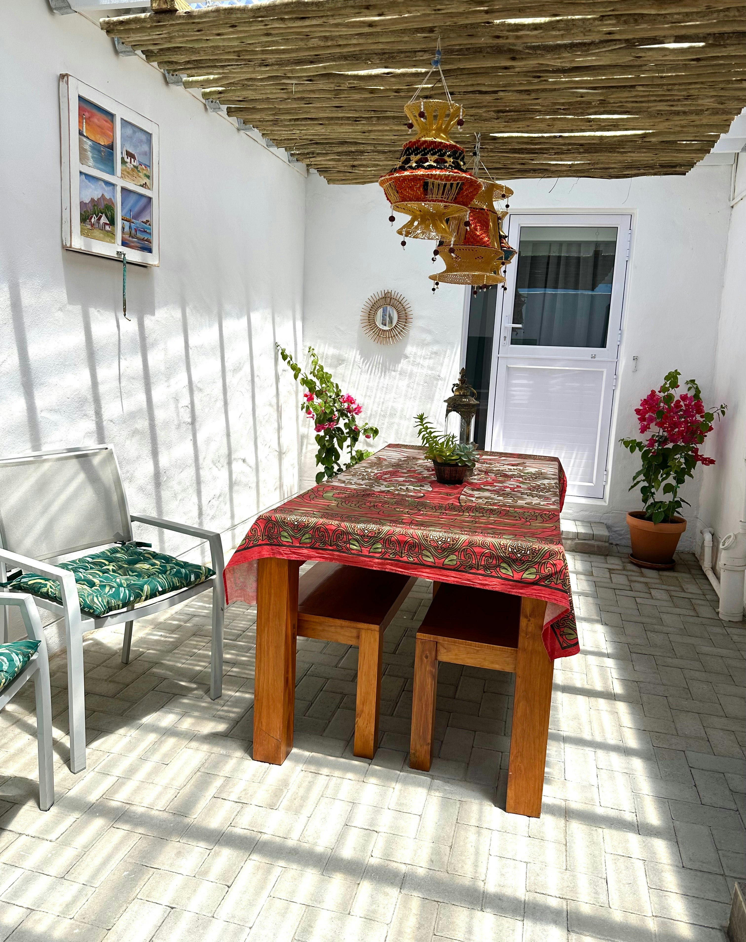 Additional amenities include Wi-Fi and a TV. The apartment also features an outside seating area, with secure parking available.