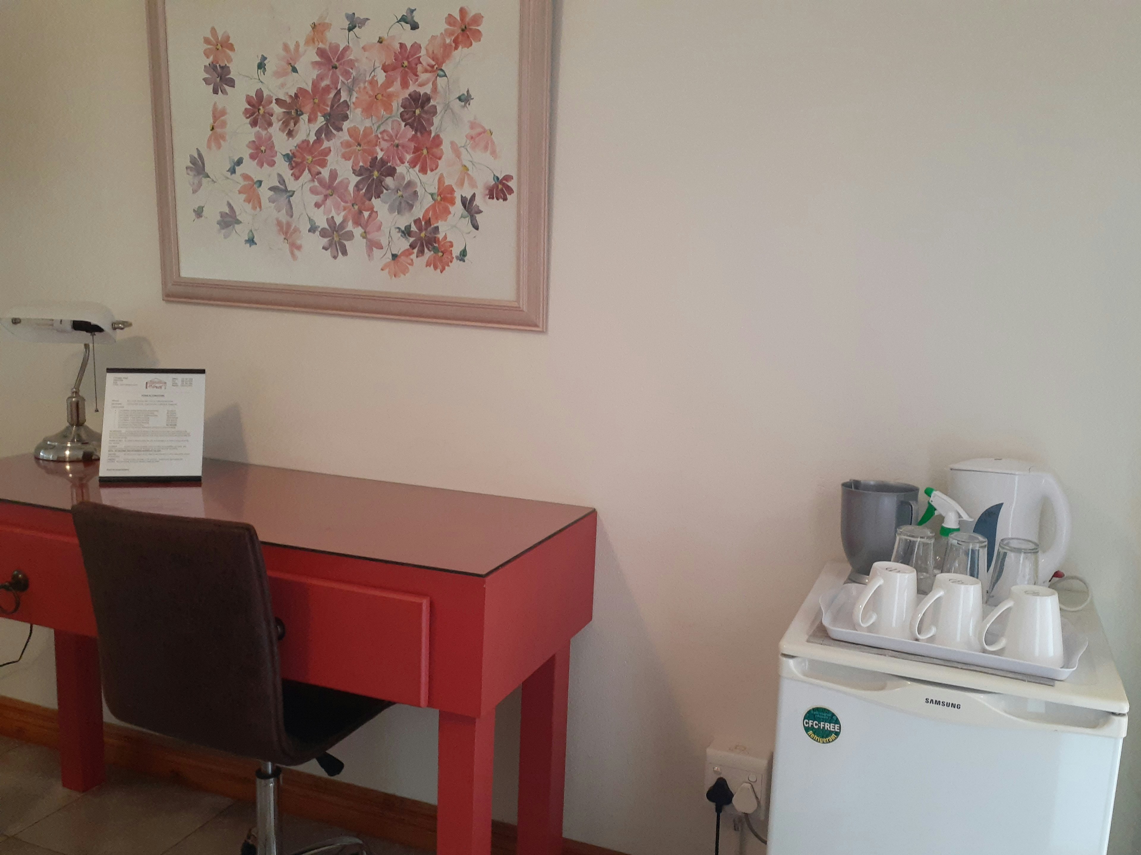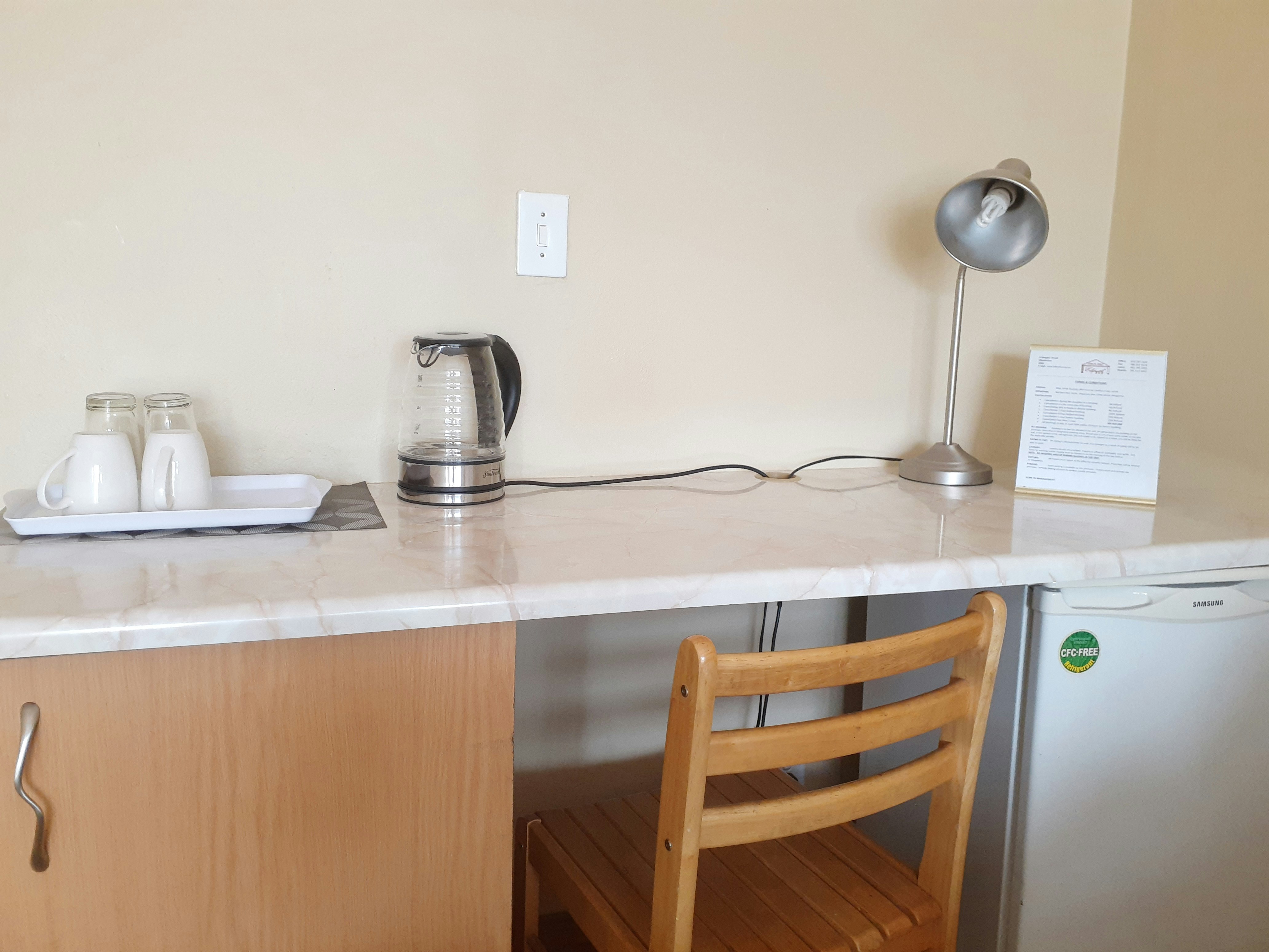 Each of the rooms is equipped with a TV with selected DStv channels, Wi-Fi access, as well as tea- and coffee-making facilities. Room service, a laundry service, as well as meals, are available on request at an additional cost.
