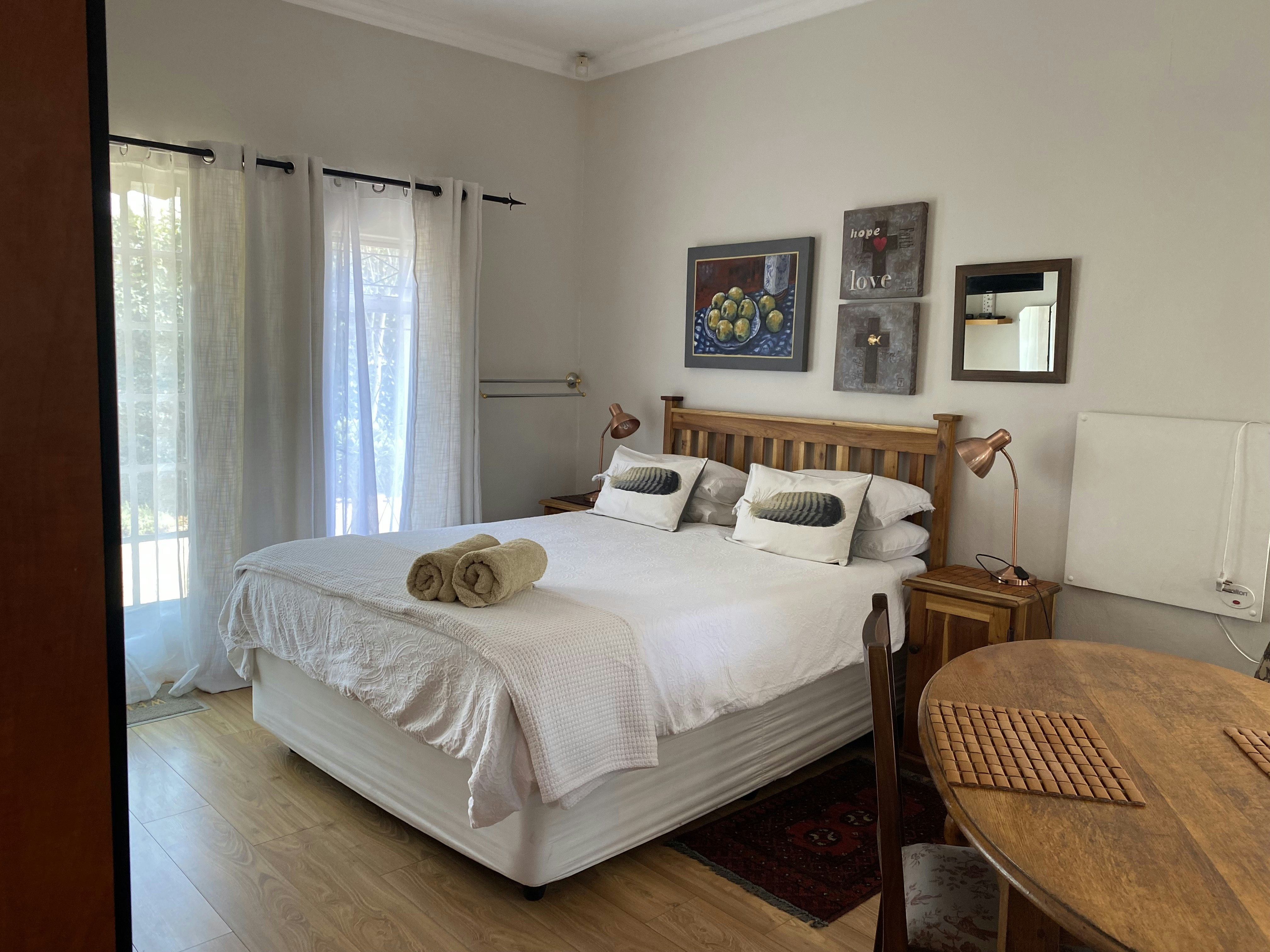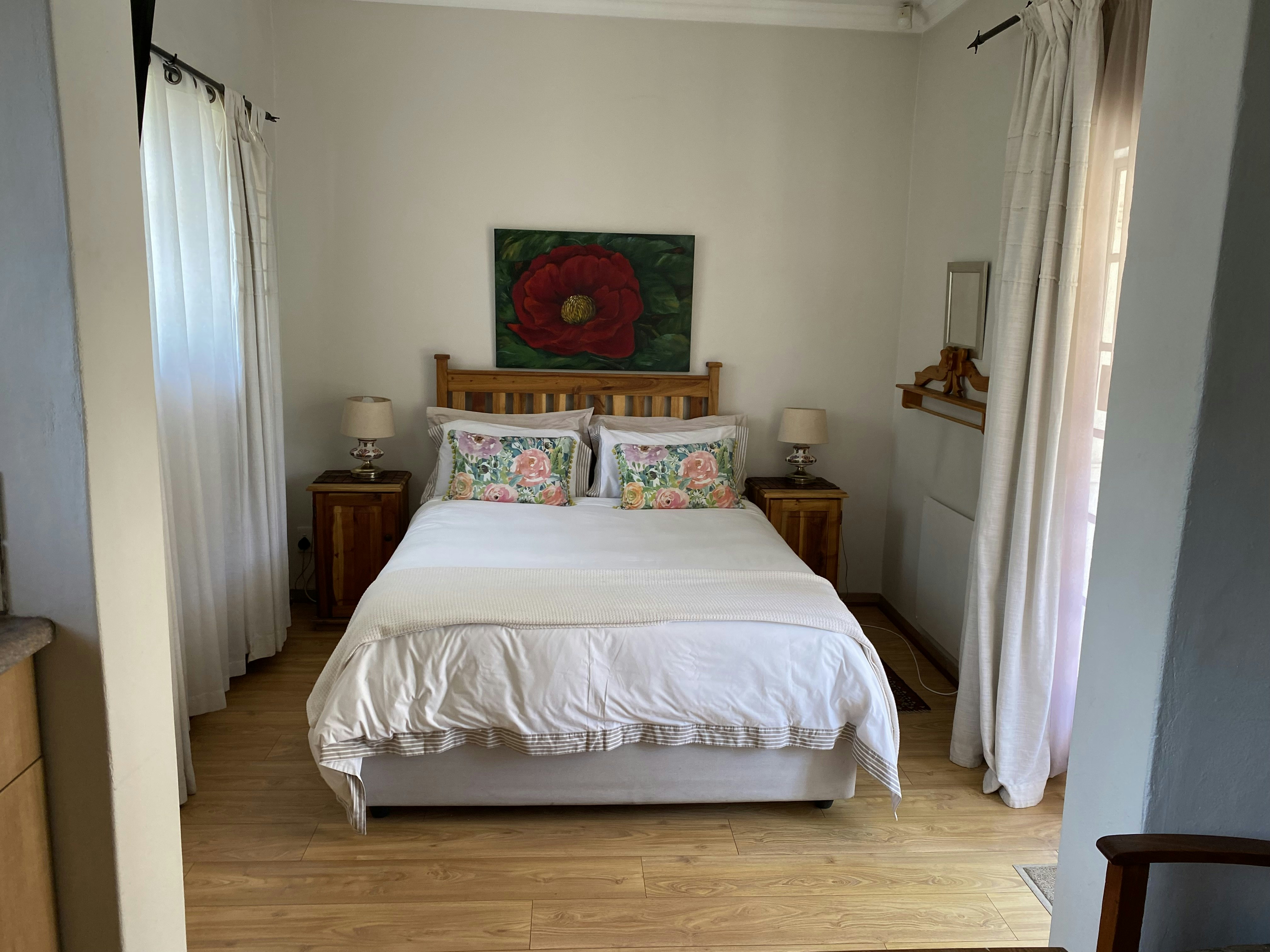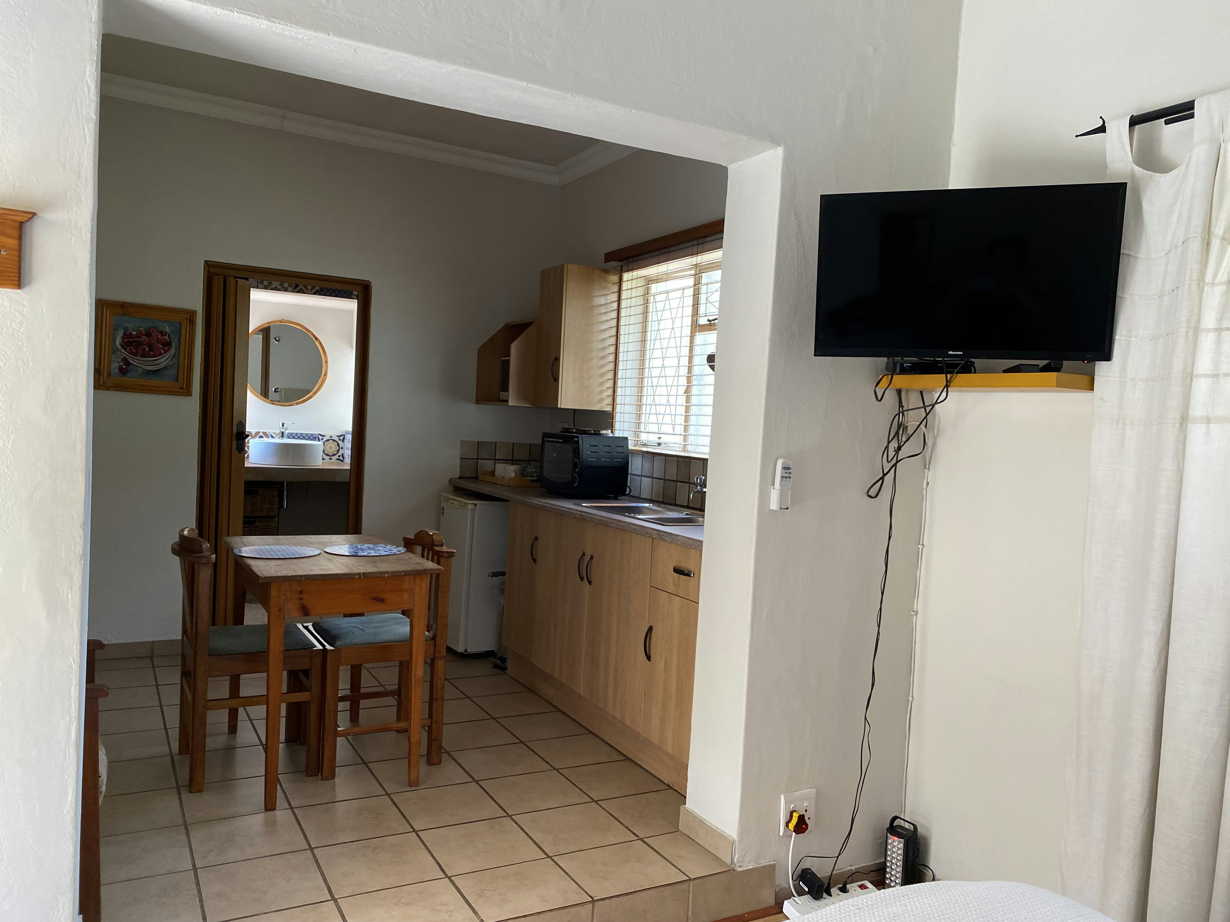 Accommodation is offered in 2 self-catering units that are located in a lush, well-established suburb. Each unit comprises a spacious bedroom with a queen-size extra-length bed, and en-suite bathroom that is fitted with a shower only and an open-plan, kitchenette equipped with an air fryer, microwave and bar fridge. Quality linen and TVs with the full DStv bouquet are provided. Free Wi-fi is available. Elverams has solar energy therefore there are fewer restrictions during loadshedding.