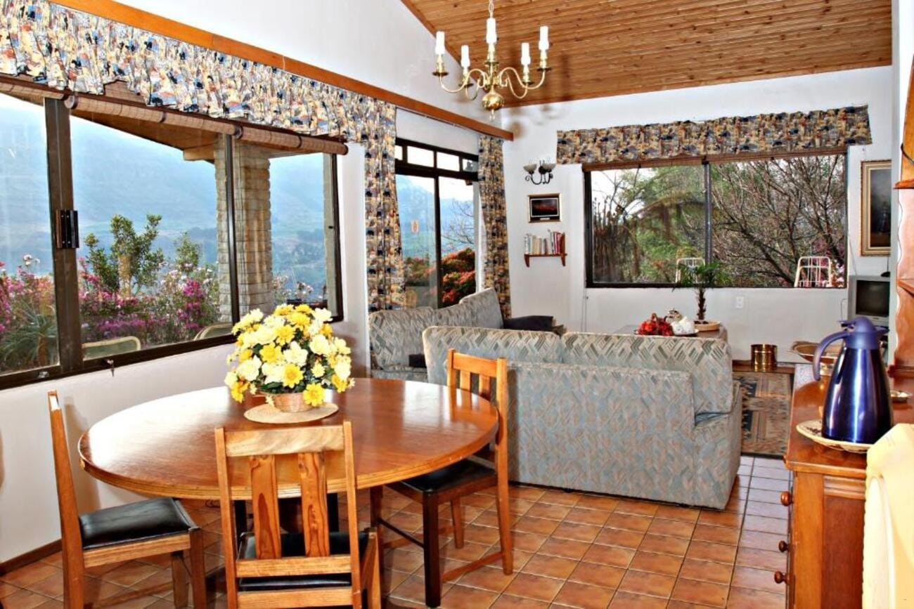 Emafweni 2-Bedroom Chalet offers self-catering chalet accommodation in a country-style garden setting, located in Dragon Peaks in the central Drakensberg mountains. It features a small private lake and mountain views.
