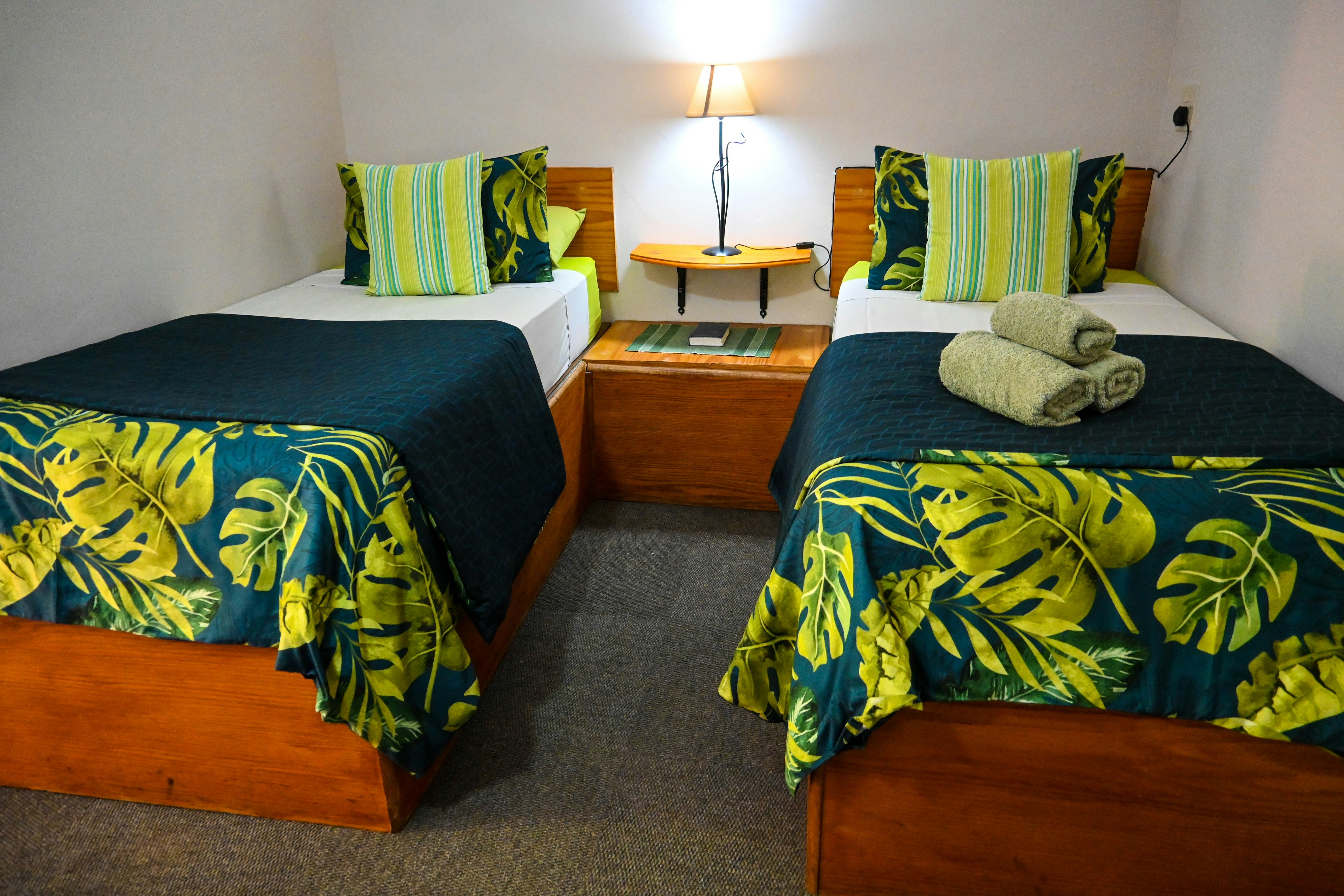 The rooms are all furnished with single and double beds, and have en-suite bathrooms. For convenience, linen is provided. The rooms are all equipped with TVs with Hotel package DStv, small fridges, as well as tea-and-coffee-making facilities. Each of the rooms has a braai area, and hairdryers are available at reception. Wi-Fi access is available, and parking is provided on the premises.