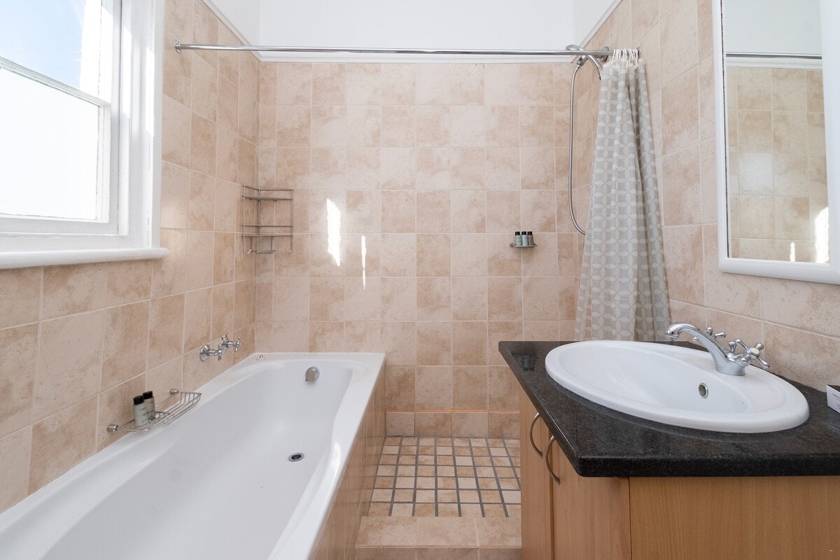 The home can accommodate up to 4 guests across 2 bedrooms and 1 bathroom. The main bedroom is furnished with a queen-size bed, while the second bedroom contains a single bed along with a bunk bed, ideal for children. Guests share a bathroom fitted with both a bath and a shower. Wi-Fi is available for guests’ convenience.