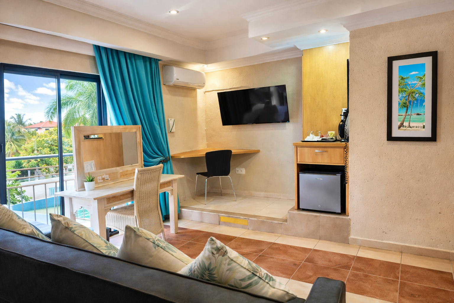 The hotel’s modern, spacious en-suite rooms accommodate 2 to 4 guests and are furnished with comfortable beds and essential amenities, including crisp linens, air-conditioning, TVs, and dedicated workspaces. Selected suites provide added luxury with private balconies or in-room spa-style baths.