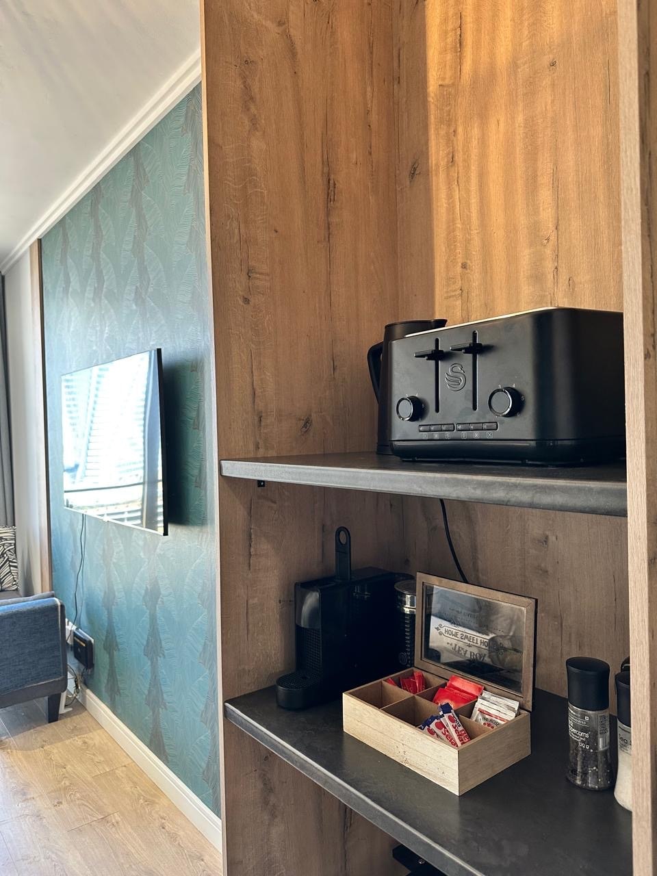 Daar is ook 'n etenstafel en 'n TV. Die kombuis is met 'n yskas, stoof, oond en 'n mikrogolf toegerus. Veilige parkeerplek, braaigeriewe en gratis WiFi is beskikbaar.