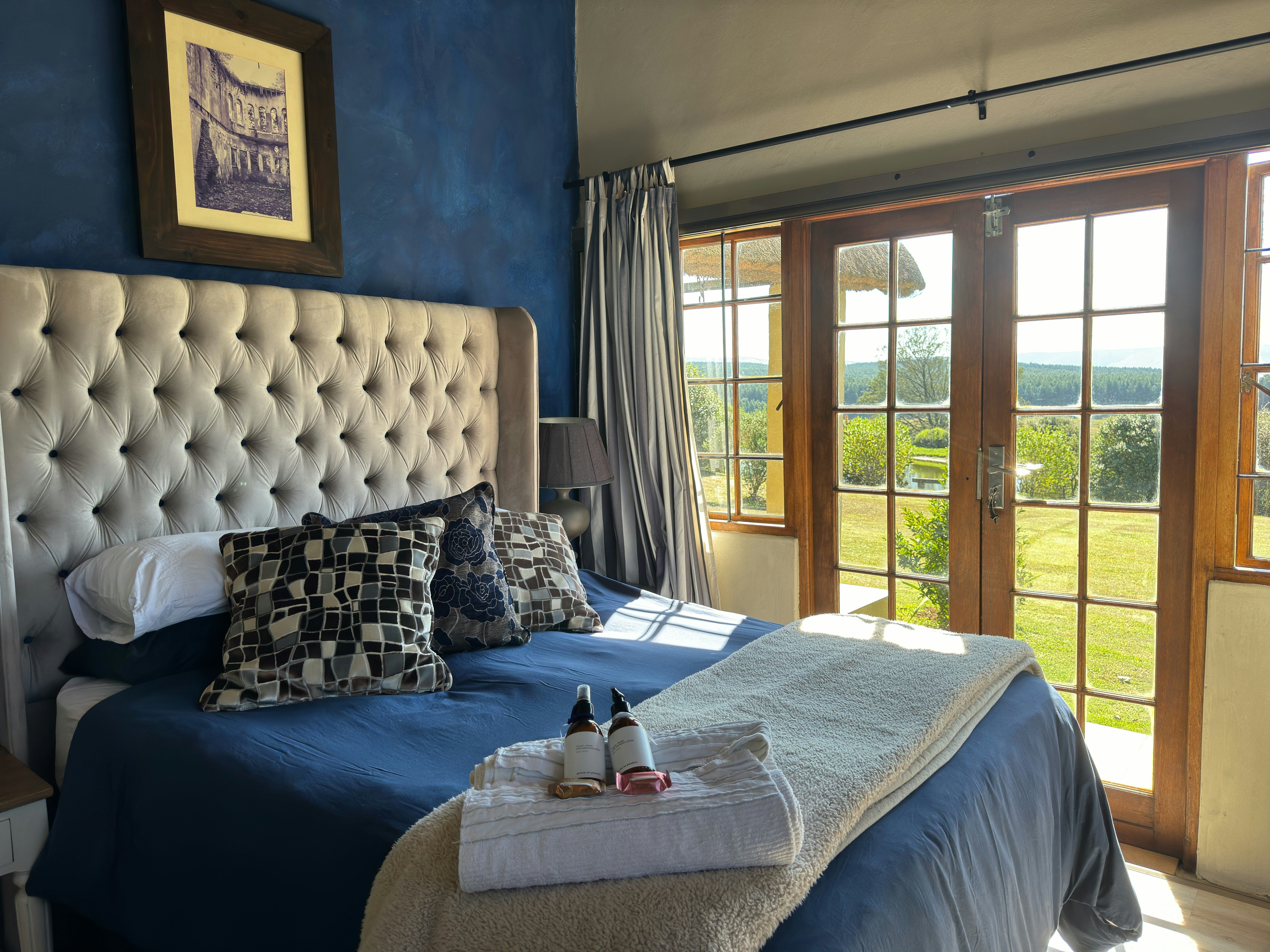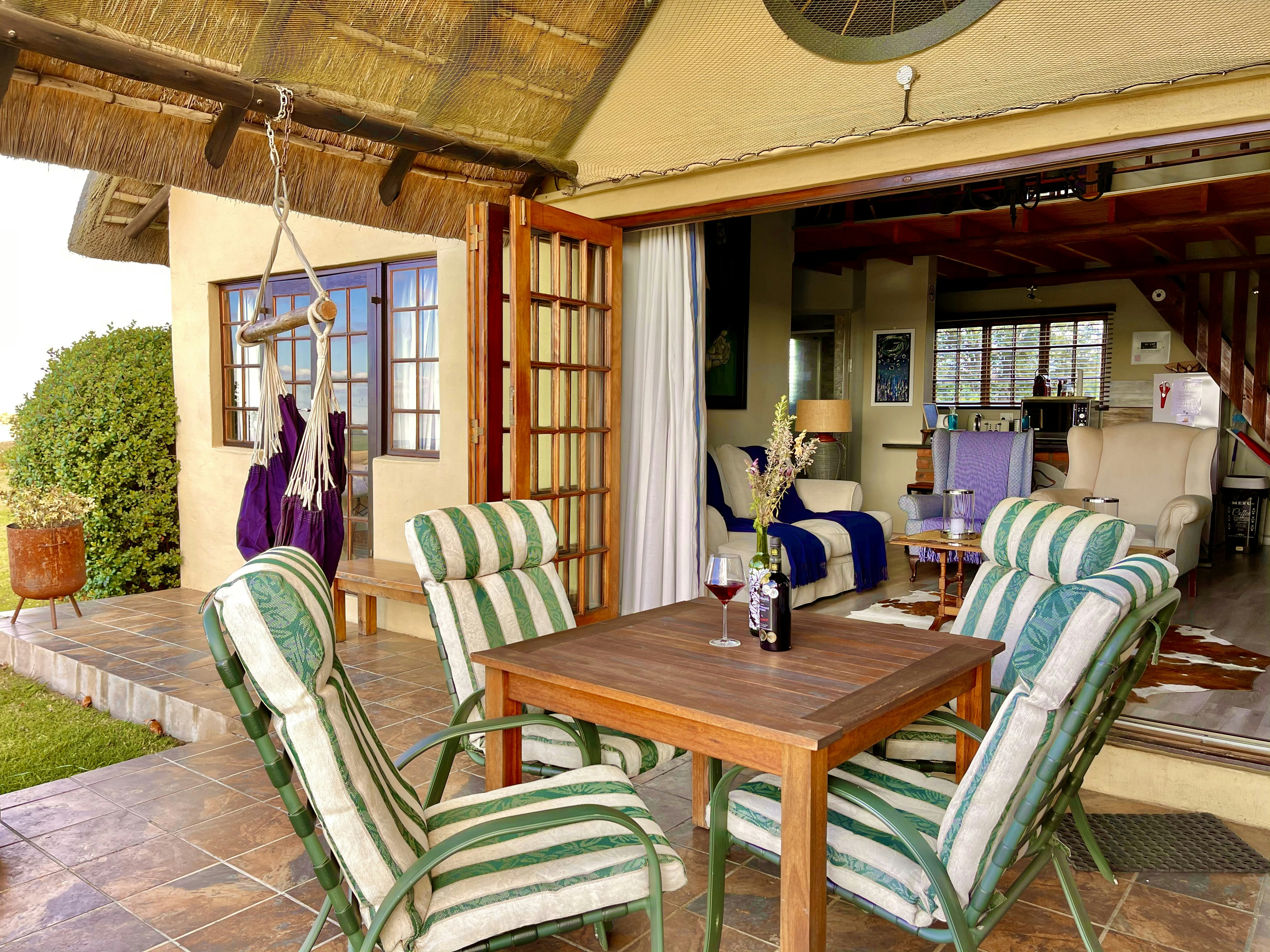 The accommodation is offered in 3 separate self-catering cottages. The cottages are 80 to 300m from the owners' main home and are private, owing to some trees and garden shrubs between the main house and the cottages. Nguni cottage is 300m from our main home and is our most private unit. Each unit has a kitchen with a fridge, hob, microwave, kettle, Nespresso machine and toaster, as well as a lounge with a Samsung Smart TV with Netflix and a fireplace. Limited LTE Wi-Fi is available.
