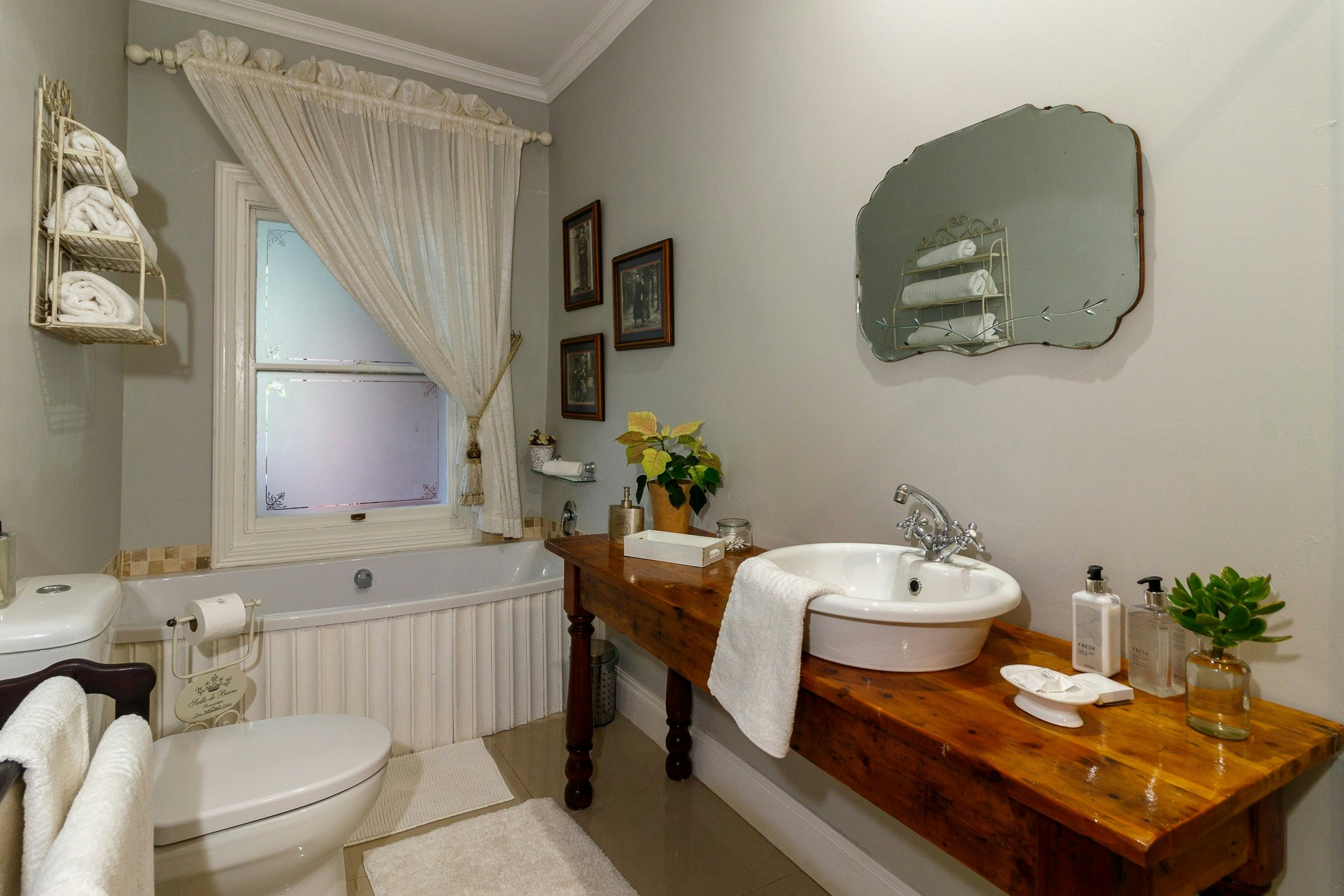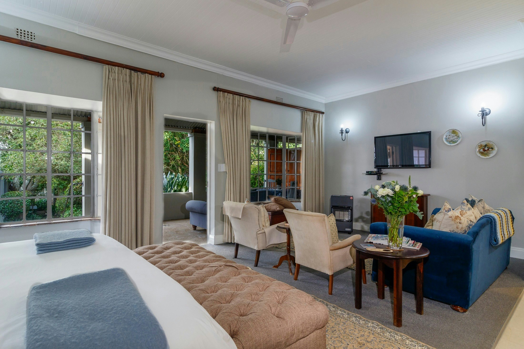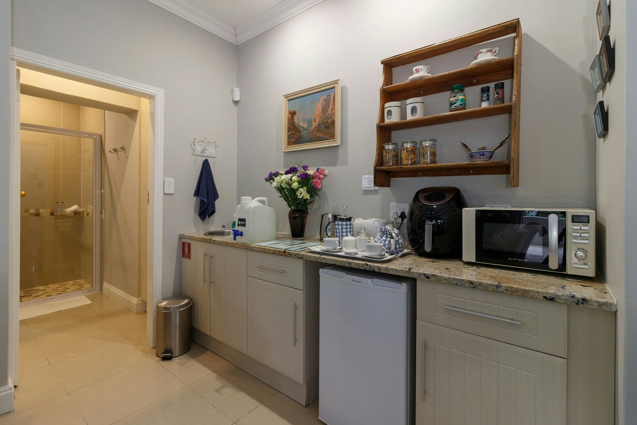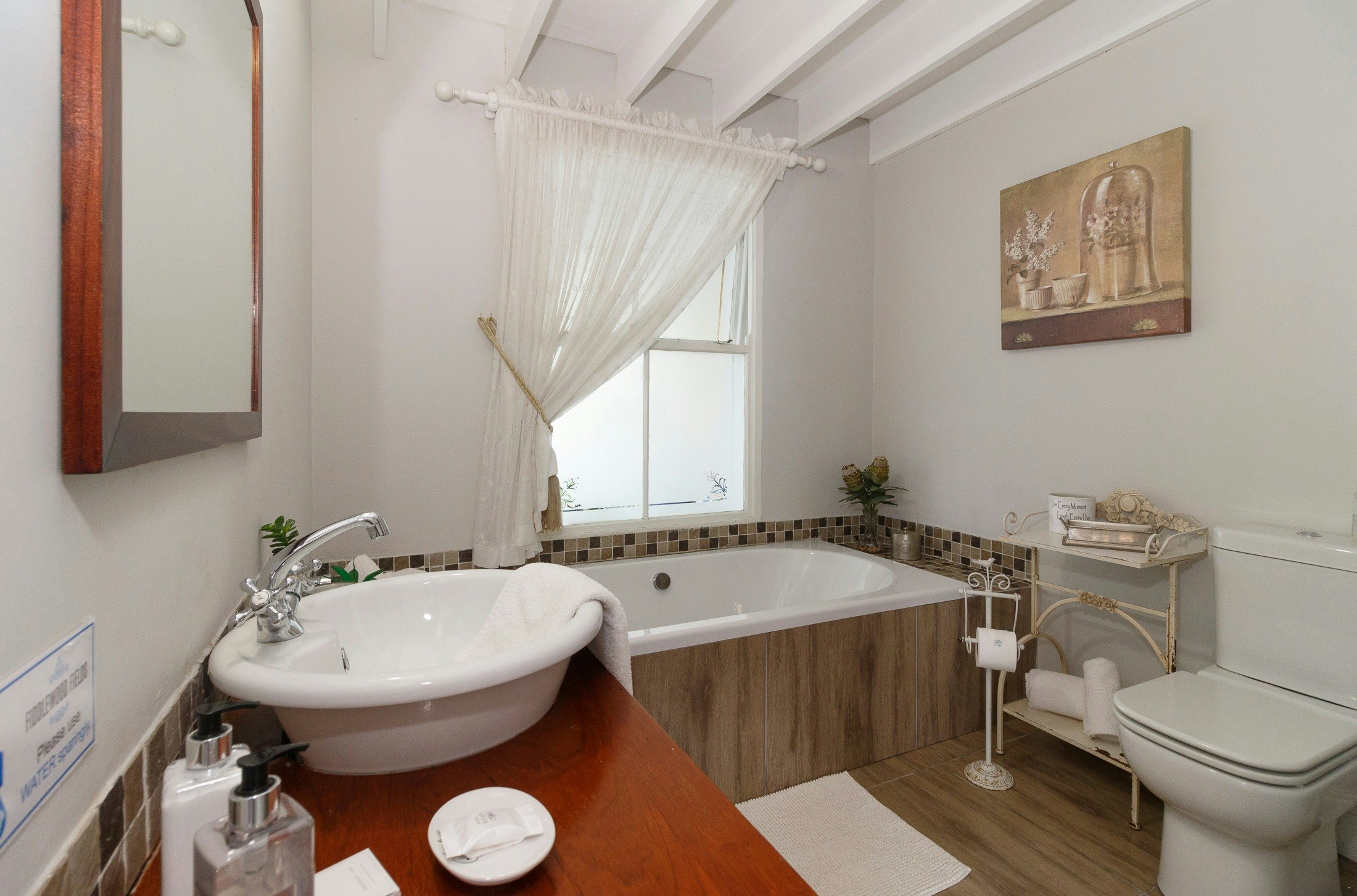 All 5 cottages have an en-suite bathroom, that consists of a toilet, basin, shower, and bath. All units except the Garden cottage has a kitchenette, equiped with bar fridge, microwave, kettle, cutlery, and crockery. These 4 units also include a lounge area that has comfortable seating and a TV with free Wi-Fi facilities.