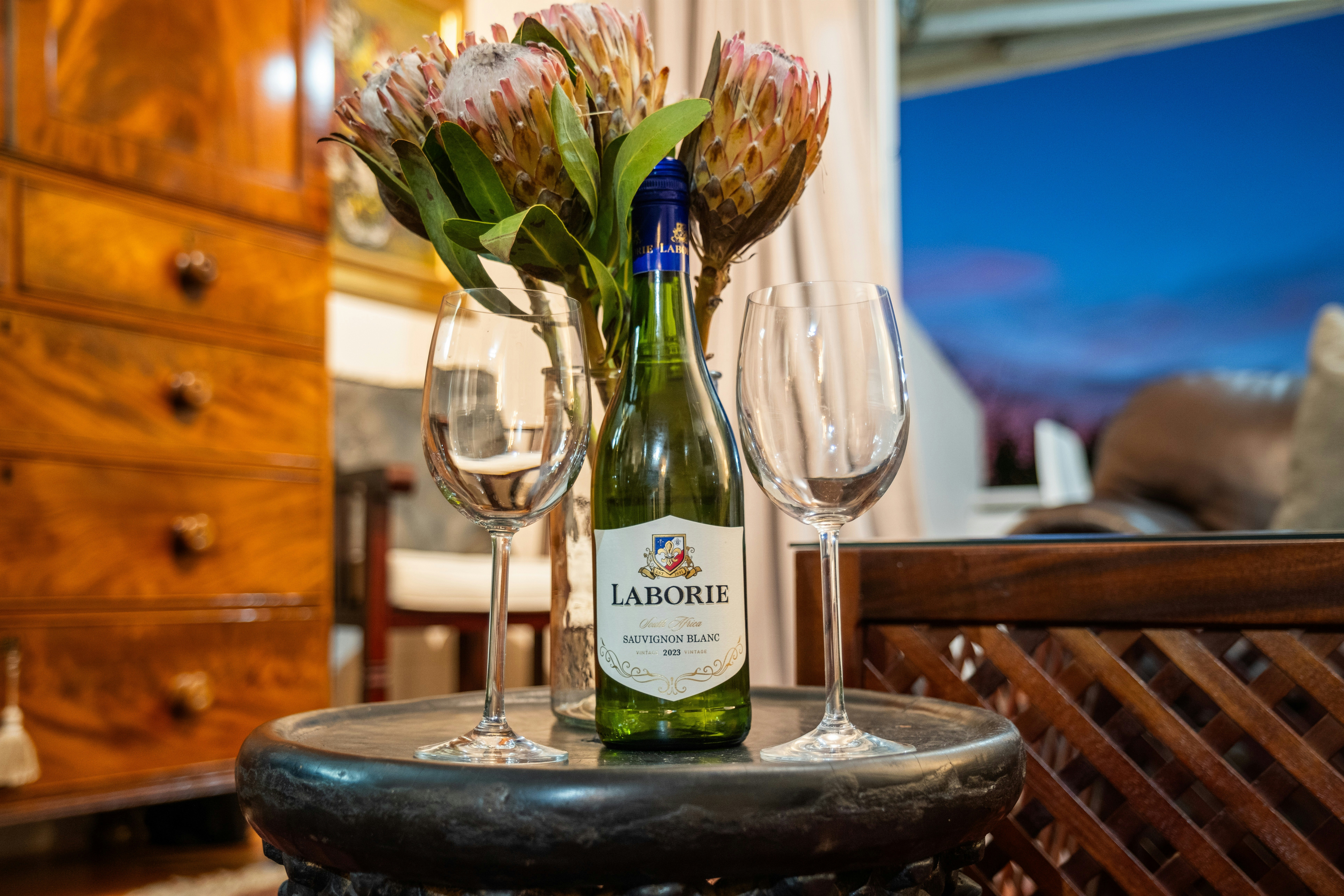 This living area opens onto a balcony with a table and chairs which is a great spot for guests to enjoy a sundowner and some quality time together. There is a second balcony with seating where guests can enjoy a morning coffee while admiring the gorgeous views.