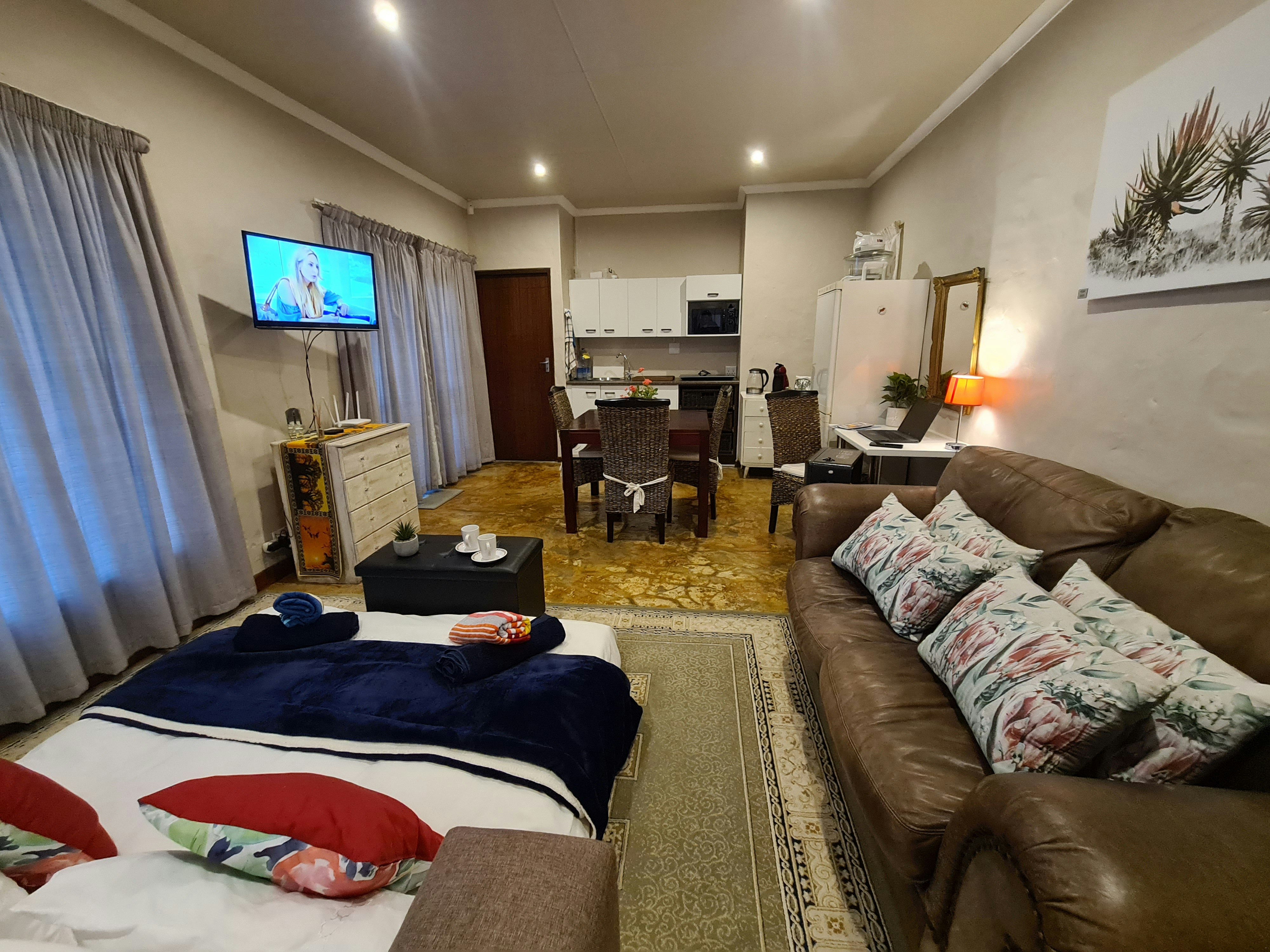 Die oopplan-leefarea het 'n kombuisie wat met 'n induksiestoof, halogeen-oond, mikrogolfoond, lugbraaier, yskas-vrieskas, eetgerei, breekware en tee- en koffiemaakgeriewe toegerus is. Die aangrensende etenstafel het sitplek vir 4 gaste. Daar is 'n gemaklike rusbank en 'n dubbelbed in die leefarea. Toegang tot gratis WiFi is beskikbaar.