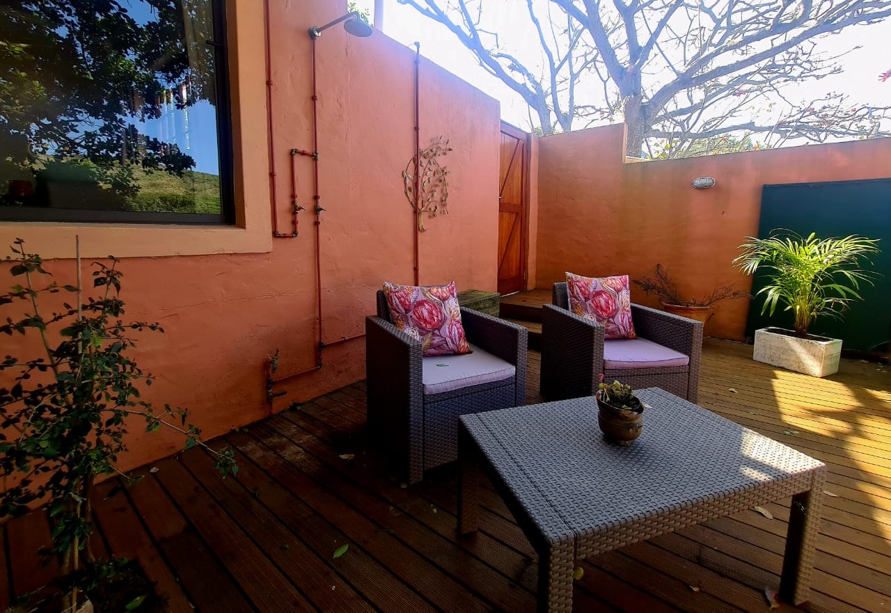 Buite het gaste toegenag tot 'n privaat stoep met uitsigte oor die natuurreservaat, sitplek, braaigeriewe en 'n buitestort. Die verblyf is sonkrag-aangedrewe en het 'n omsetter. Dit word dus nie deur beurtkrag geraak nie. Daar is ook 'n alarm en sekuriteitstrale. 'n Motorhuis is beskikbaar indien nodig.