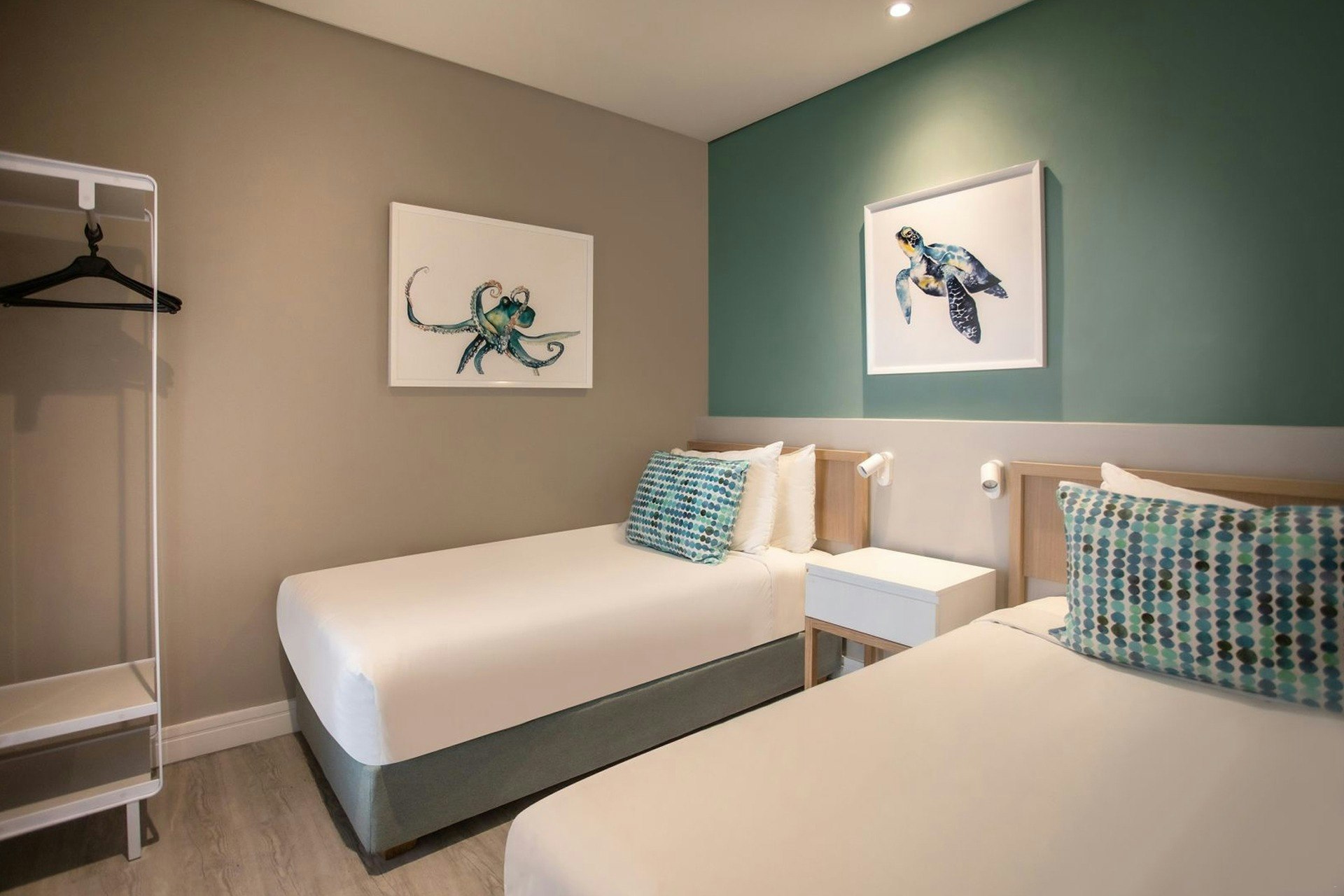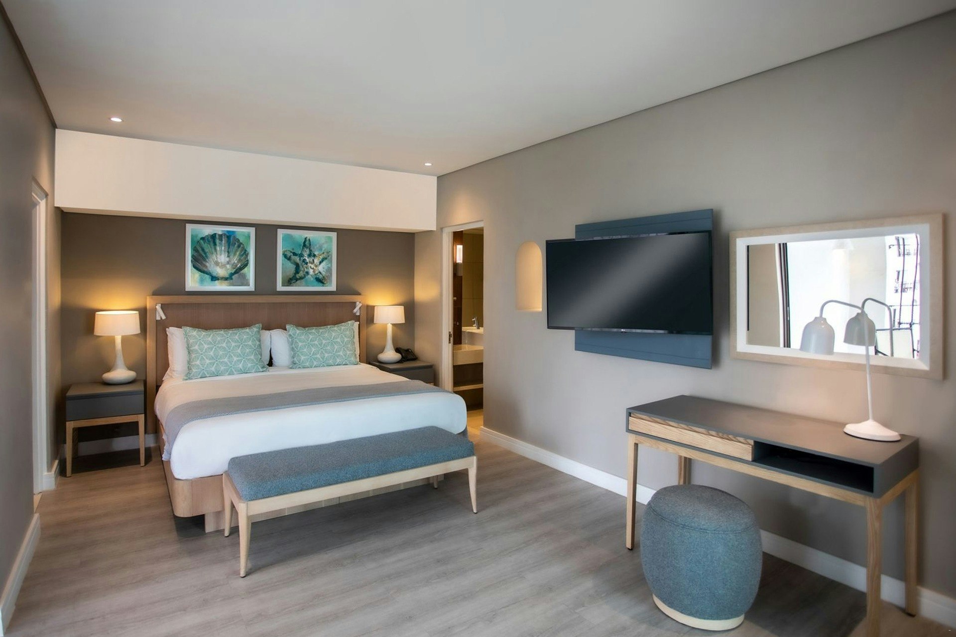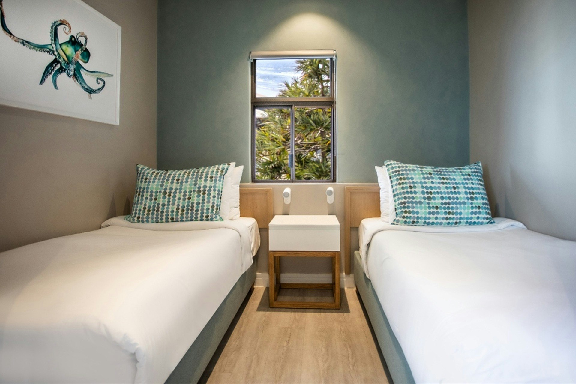 The self-catering apartments are designed for comfort and practicality. One-bedroom apartments are suitable for couples, while spacious split-level duplexes can accommodate families. Each apartment is air-conditioned and furnished with a fully equipped kitchen, a lounge, a dining area, and a balcony or terrace with sea views.
