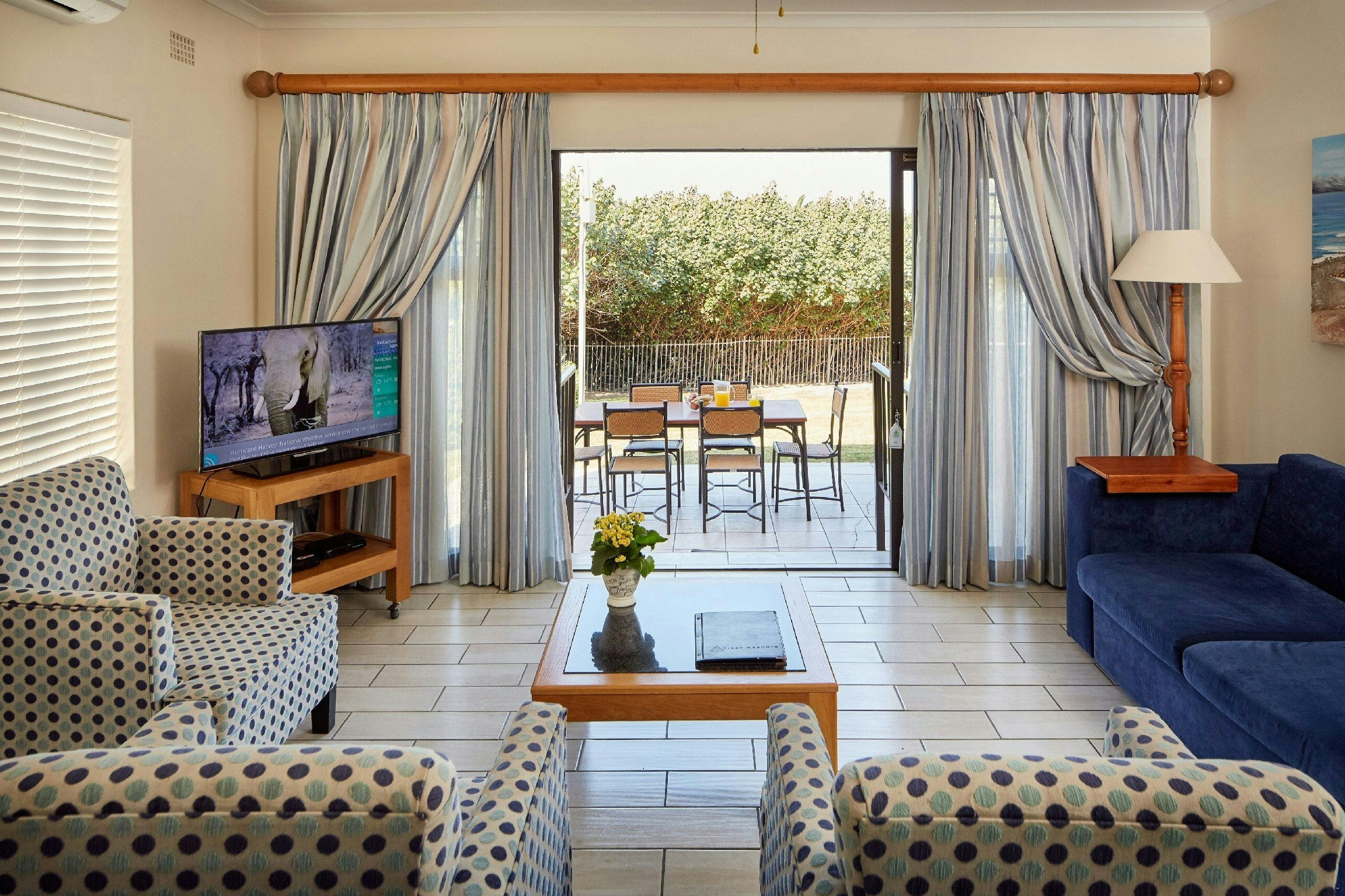 The comfortable, air-conditioned, 2 and 3-bedroom duplex apartments are fully furnished and provide all that is needed for a family seaside holiday. A fully equipped kitchen with microwave oven, double door fridge and freezer and stove, as well as a TV with 13 DStv channels, are included. There are private parking facilities and the apartments are serviced daily for your convenience, except on Sundays and public holidays.