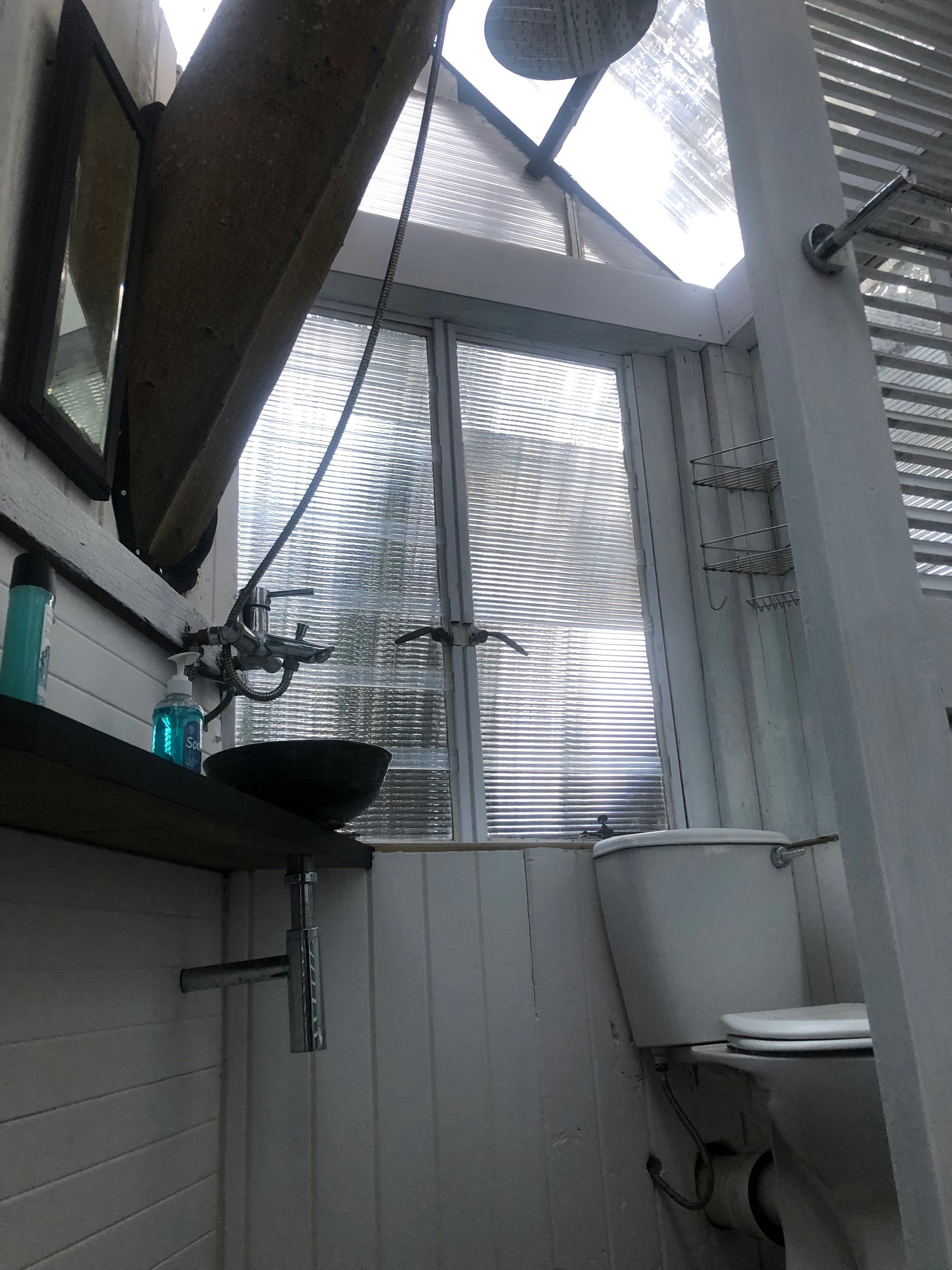 The Shack features an open-plan layout furnished with a double bed and a bathroom fitted with a shower, comfortably accommodating 2 guests.