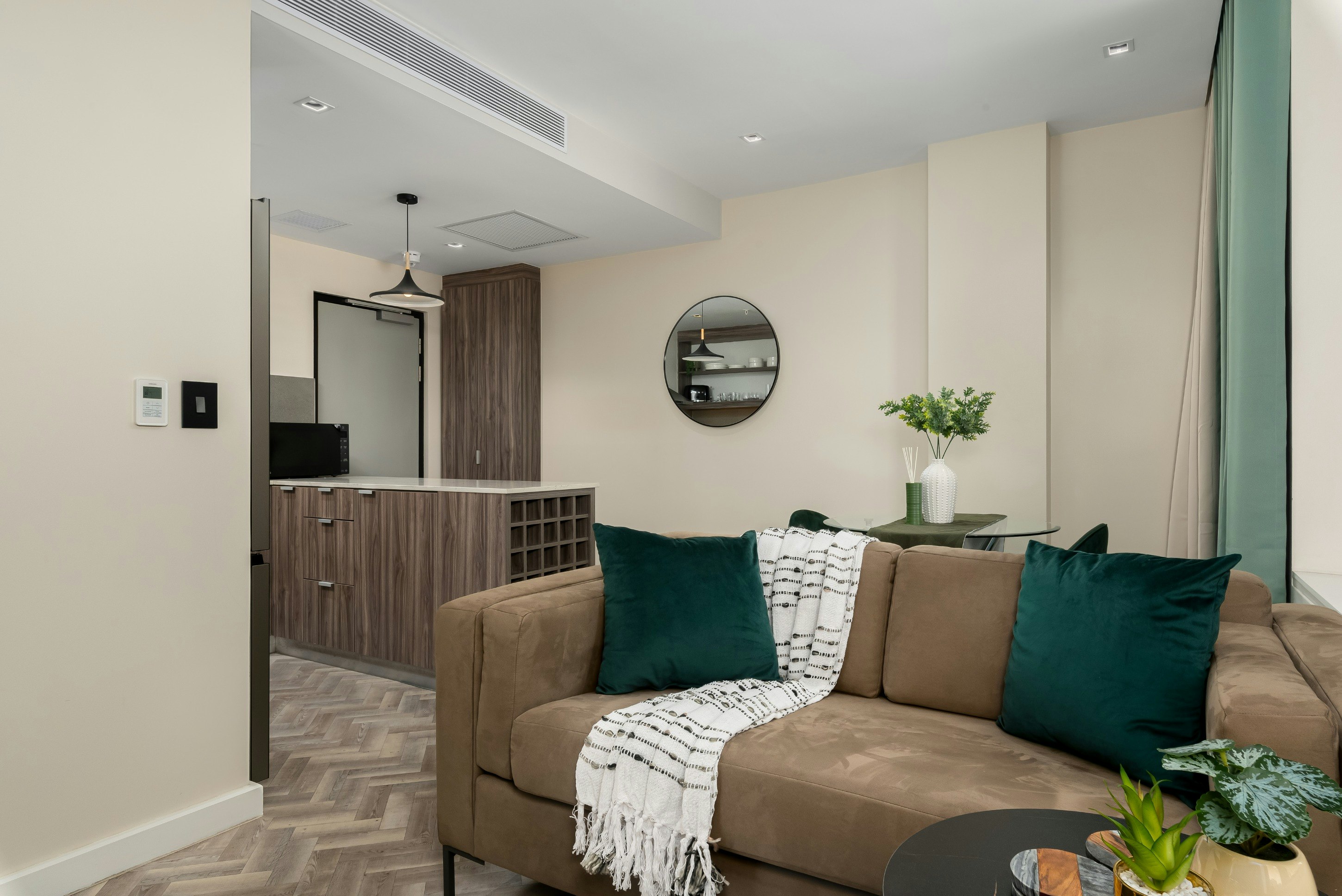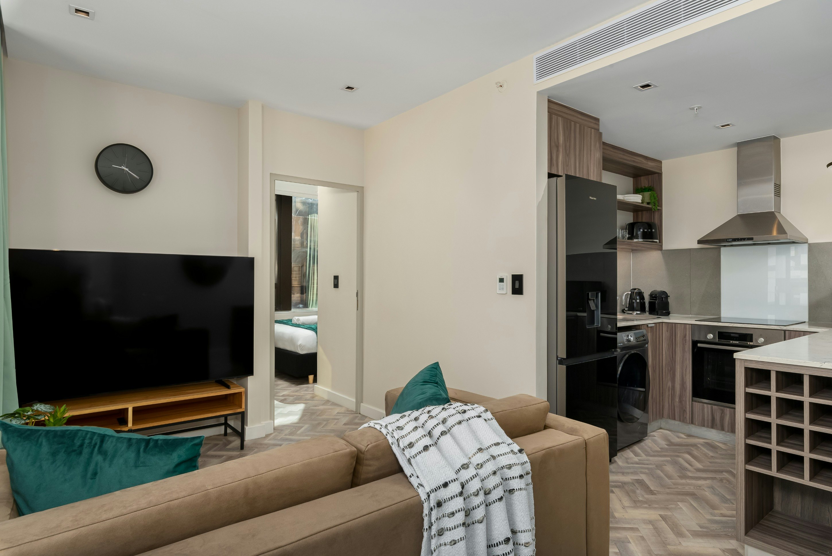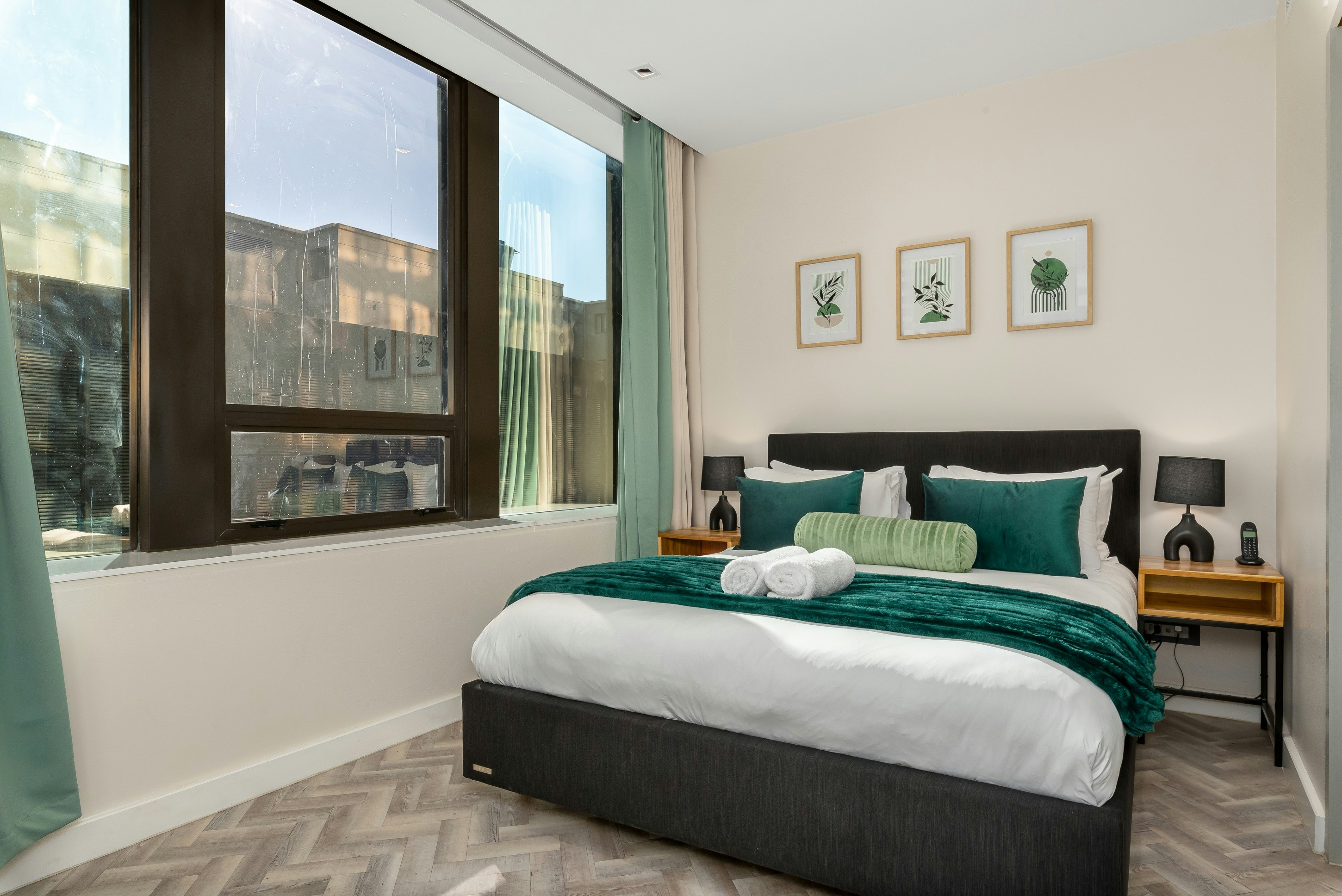 This apartment can accommodate up to 2 guests in 1 bedroom with an en-suite bathroom. The bedroom is furnished with a queen-size bed and the en-suite bathroom is fitted with a shower, washbasin and toilet. Linen and bath towels are provided.