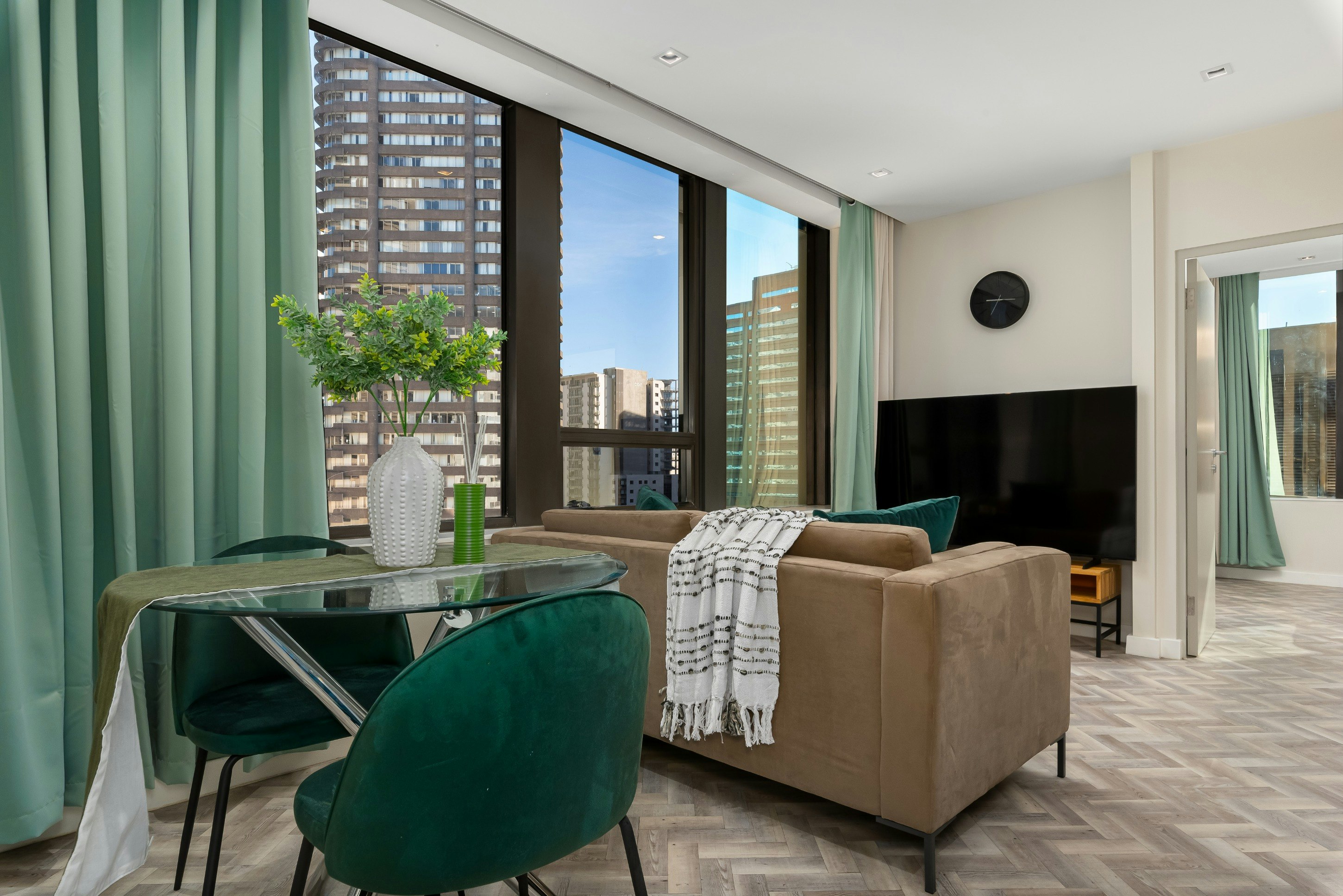 Guests can enjoy views of the surrounding city from the big windows and the building provided guests access to a dedicated business lounge. Secure parking is available on the premises. Local amenities such as shops and restaurants are within close proximity, with the V & A Waterfront being approximately 1.5 km away.