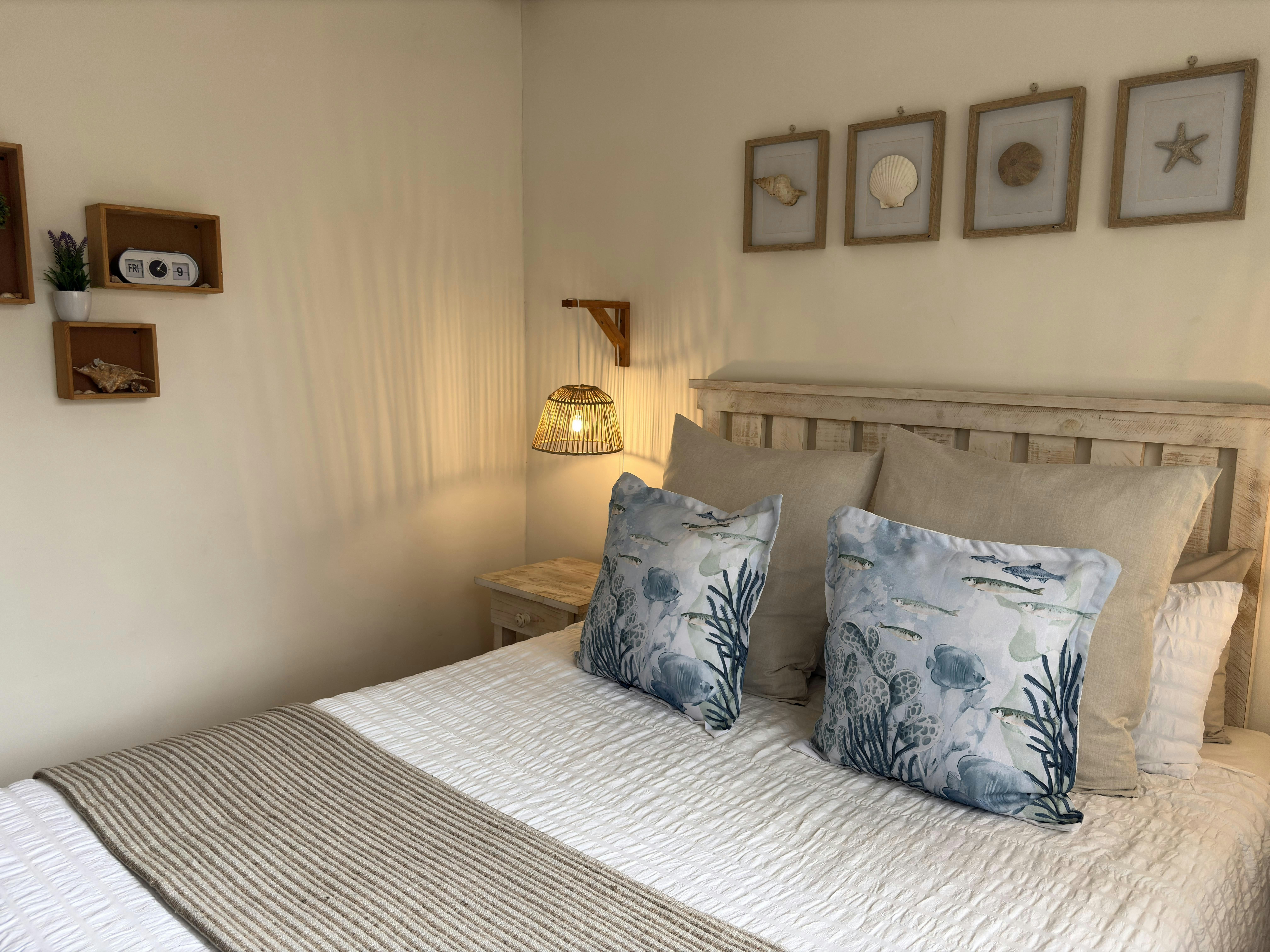 The multi-storey house comprises 3 bedrooms, 2 bathrooms, a kitchen, and a lounge. The main air-conditioned bedroom is furnished with a king-size bed, and has an en-suite bathroom fitted with a shower, and a bath. The other 2 bedrooms each contain a queen-size bed, and a ceiling fan, and share the use of a bathroom fitted with a large shower, and a toilet. For convenience, linen is provided and guests please need to bring their own bath and swimming towels.