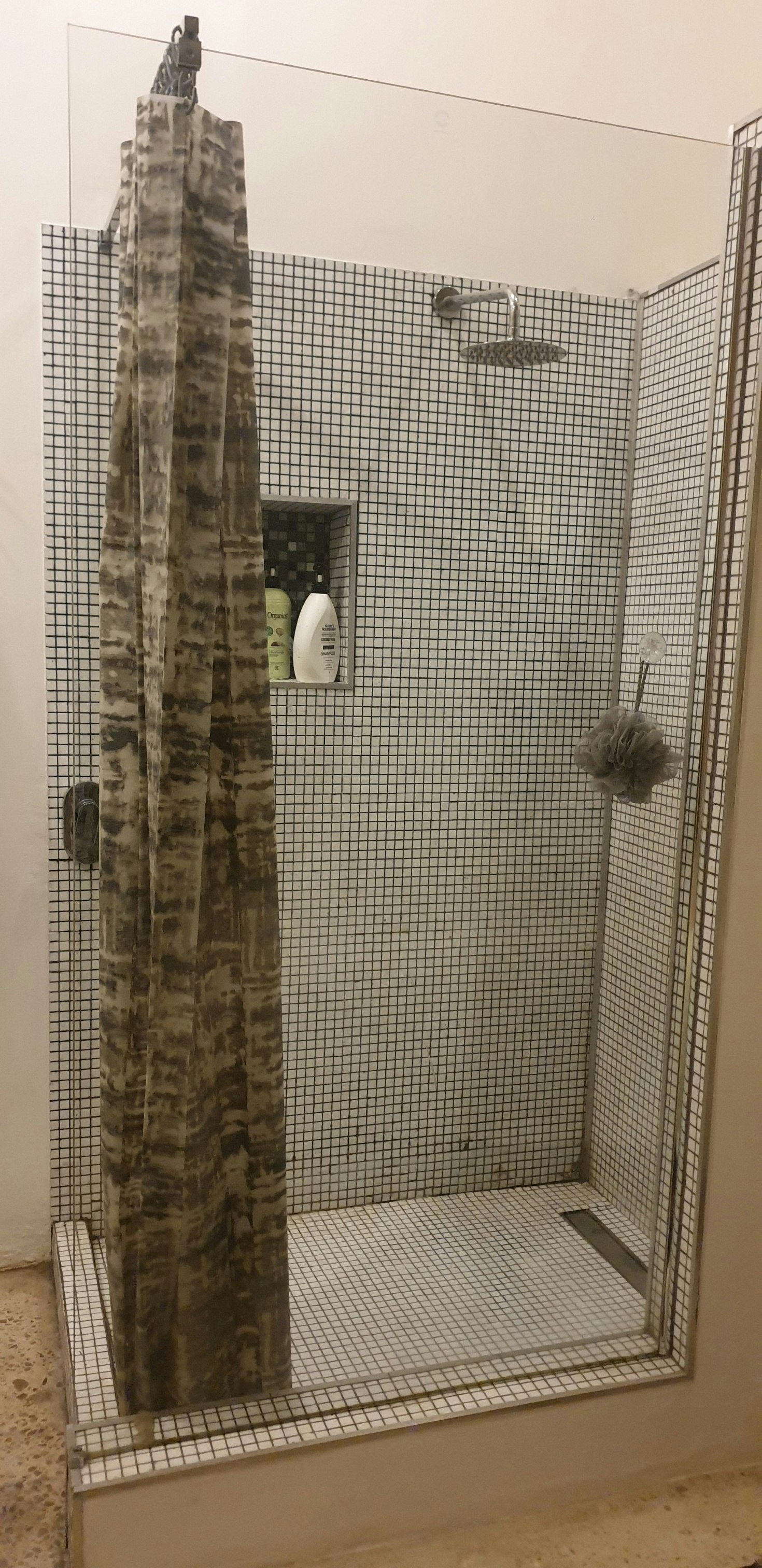 The unit can accommodate 2 adults and 3 children and comprises an en-suite bedroom, a loft room, a kitchen and a living area. The bedroom is furnished with a queen-size bed, and the bathroom is fitted with a shower, toilet, and washbasin. The loft room has a king-size mattress for children.