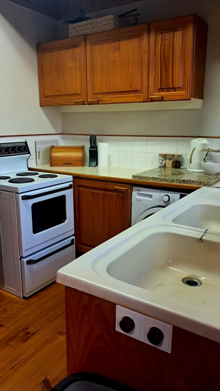Inside, the space carries a warm, retro feel and provides all the essentials for a relaxed stay. The cottage can accommodate 6 guests with 3 bedrooms and 2 bathrooms. The first and second bedroom is furnished with a double bed, while the third has twin beds. There are 2 bathrooms, one en-suite, fitted with a bath, basin, and toilet. Linen and towels are provided.