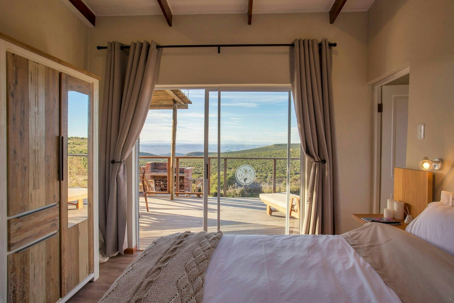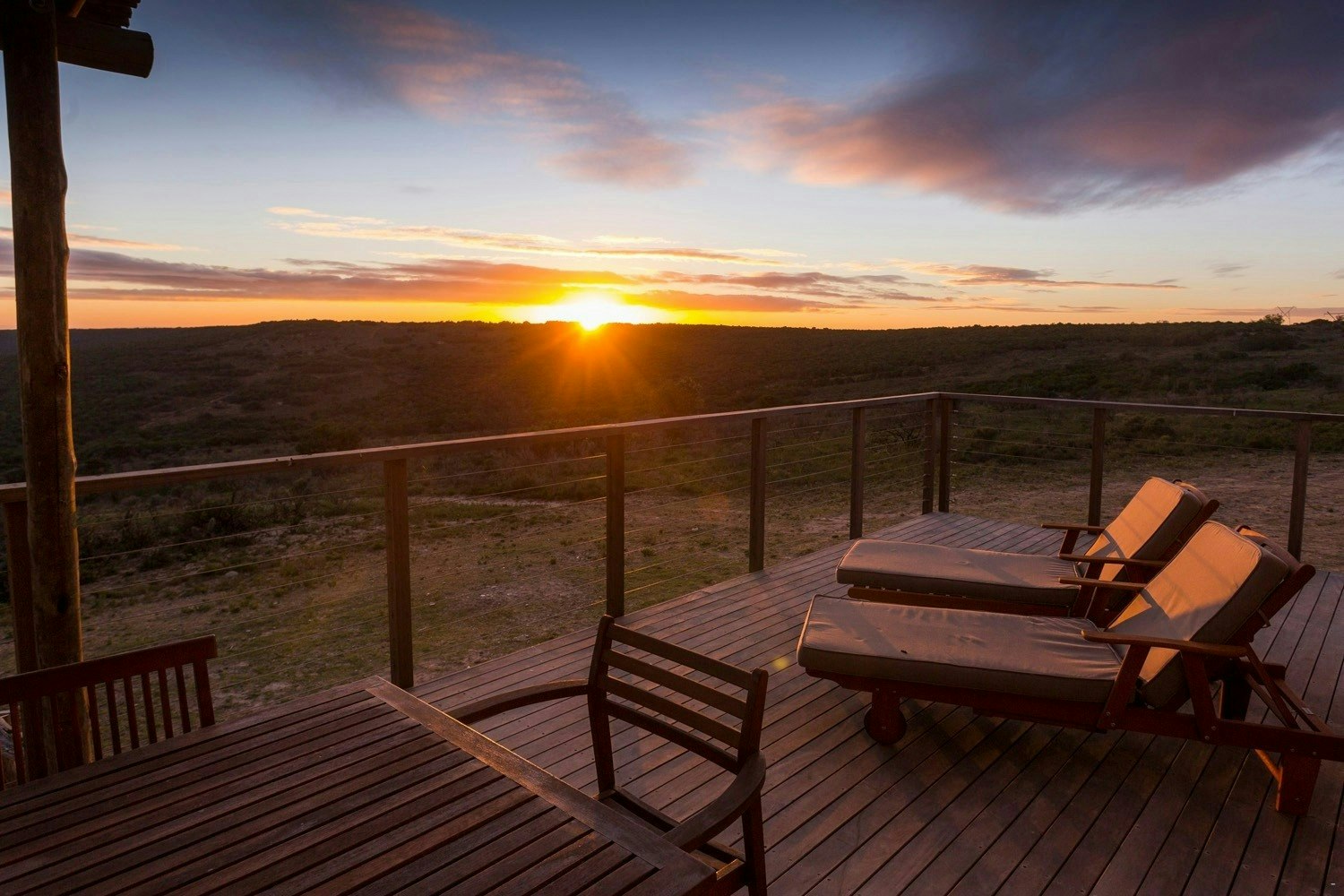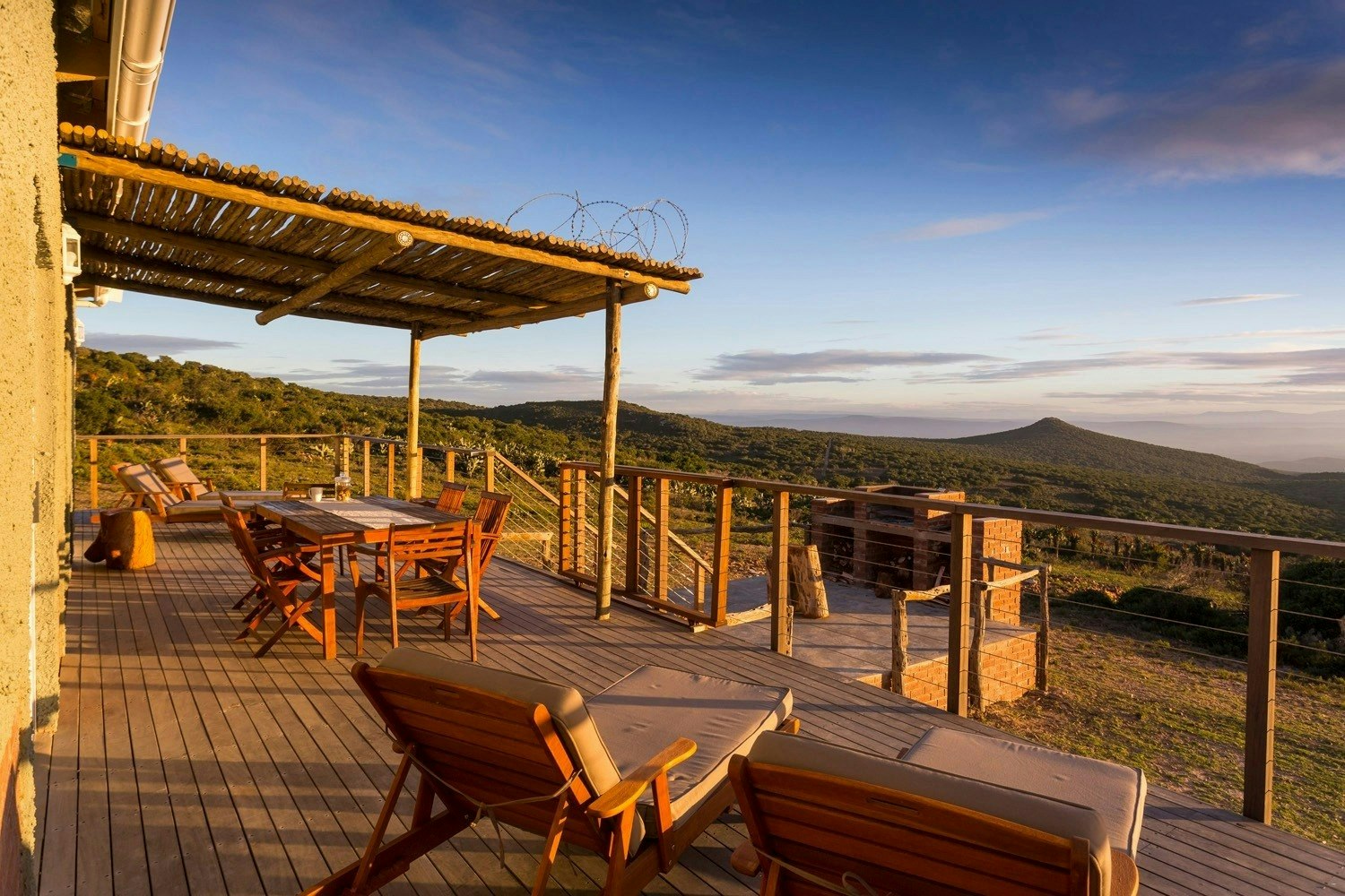 Outside is a spacious wooden deck with sun loungers, an outdoor dining table and braai facilities which is the perfect spot for a sundowner in the evening. Game drives can be arranged at an additional cost. Please note that the lodge is only accessible with a 4x4 high-rise vehicle and that the pathway from the parking to the lodge entrance is gravel.