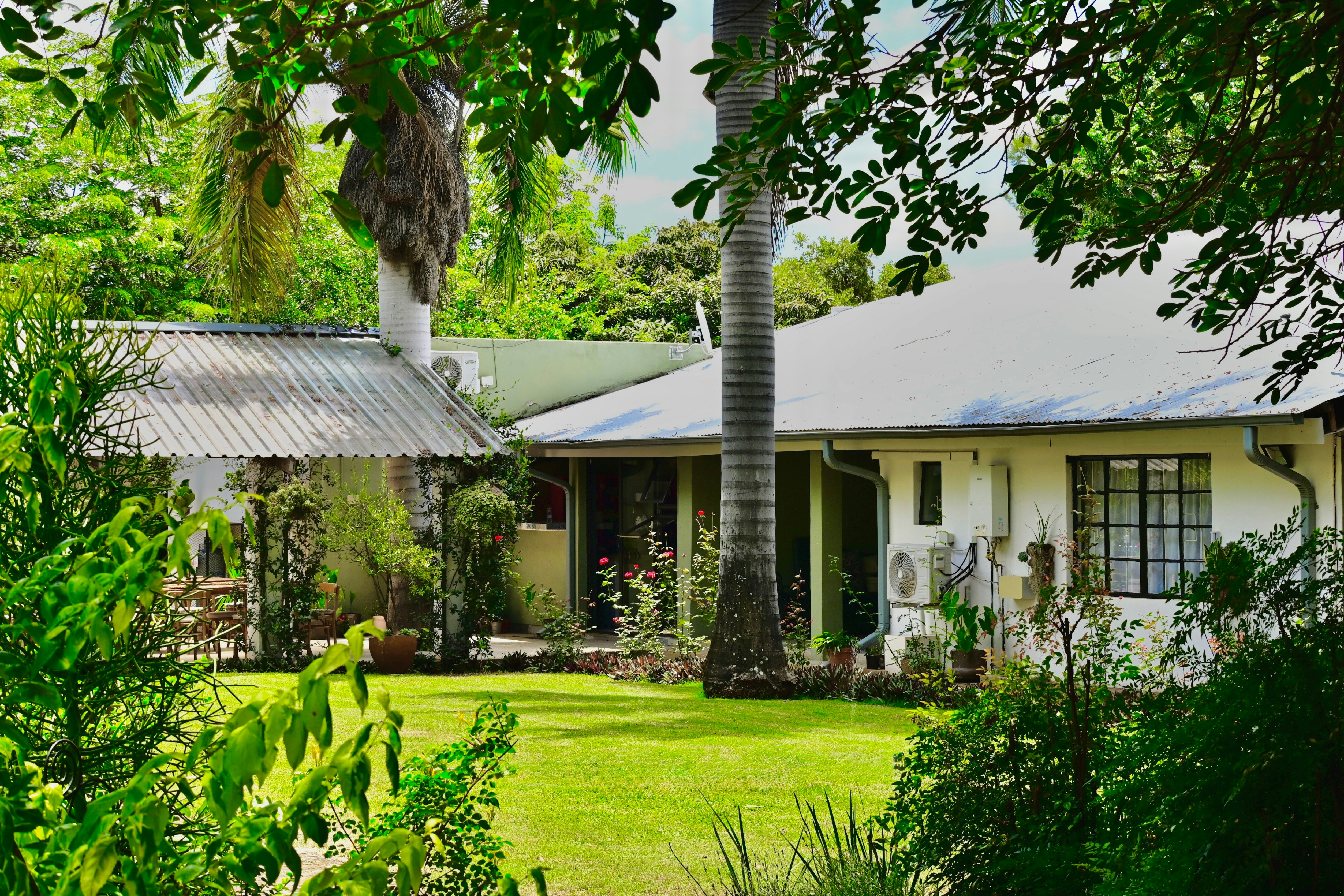 Accommodation is provided in 9 elegantly decorated rooms. All rooms have an en-suite bathroom with shower only, a queen-size bed, a bar fridge, air-conditioning, tea- and coffee-making facilities, and an outside seating area with views over the manicured gardens.