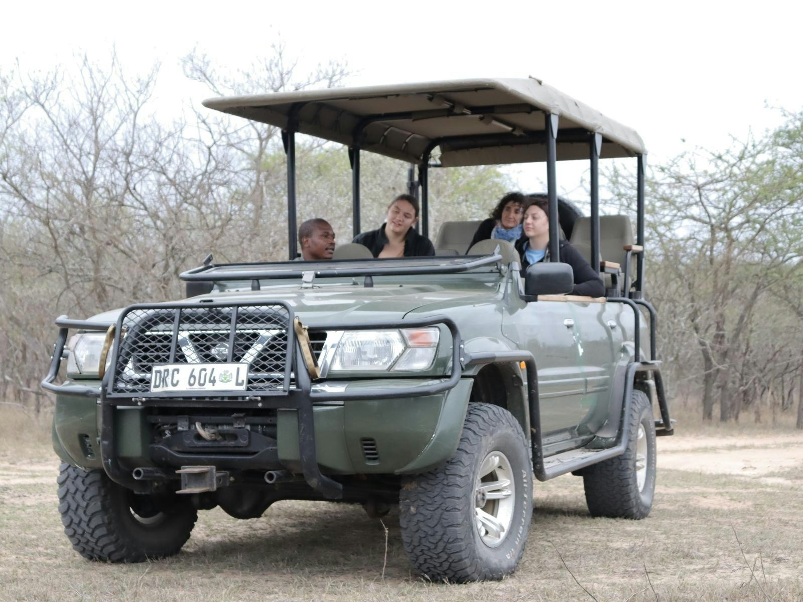 The camp boasts a communal plunge pool, a shared firepit, and dining area. Secure parking is available on the premises. Wild game such as Zebra, Giraffe, and Kudu can be seen from this unfenced camp. Guests can enjoy local amenities such as shops and restaurants in Hoedspruit that is approximately 40.4 km away.