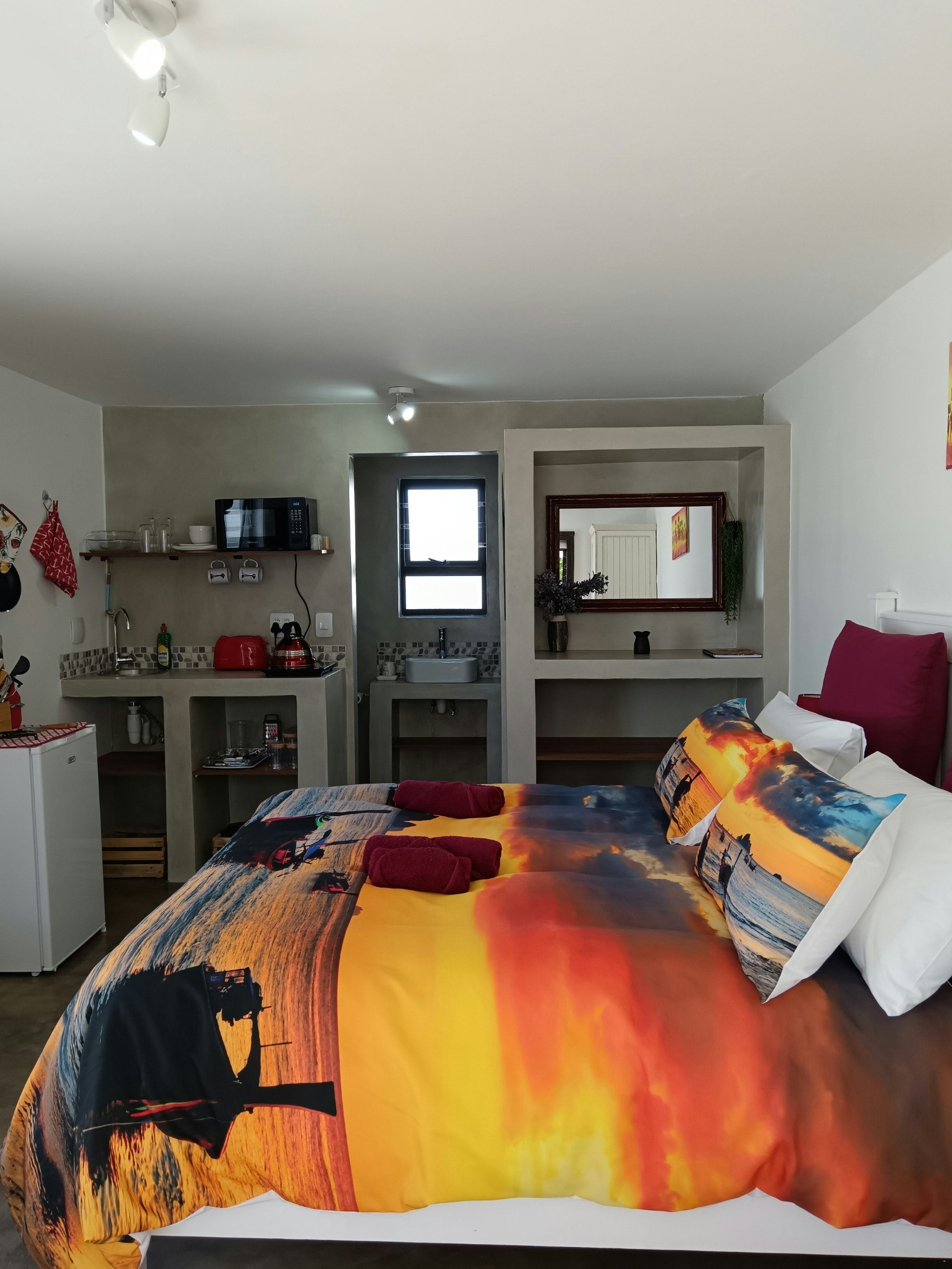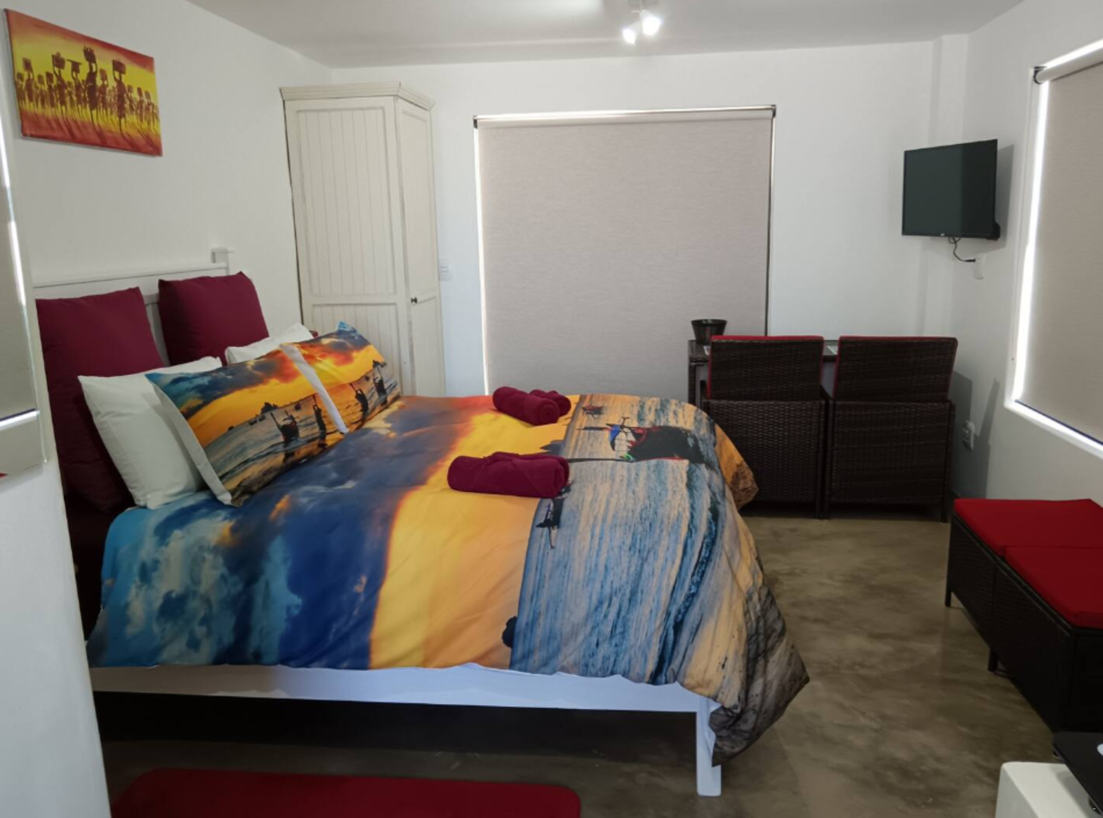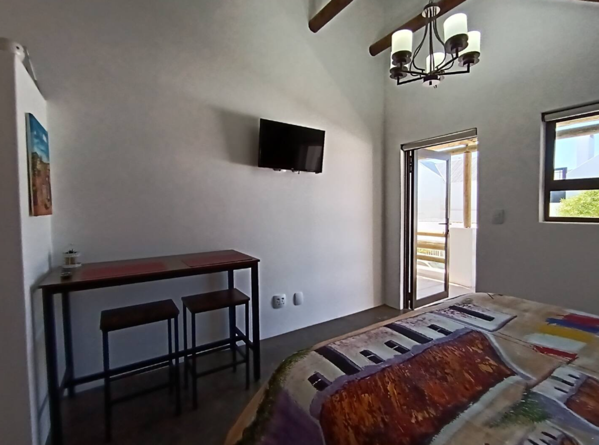 Every unit features a kitchenette equipped with a bar fridge, toaster, kettle, 1-plate gas stove, microwave, comfy seating area, dining table, smart TV, along with complimentary Wi-Fi. Two units open up to a balcony with stunning views of the ocean in the distance, perfect for sundowners.