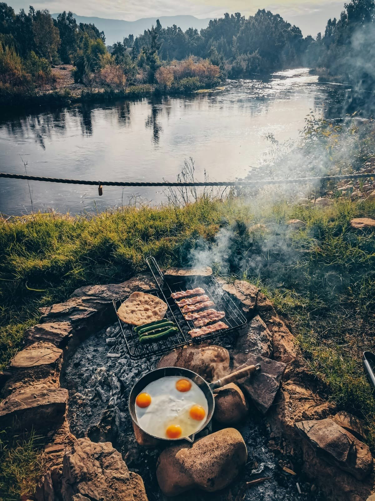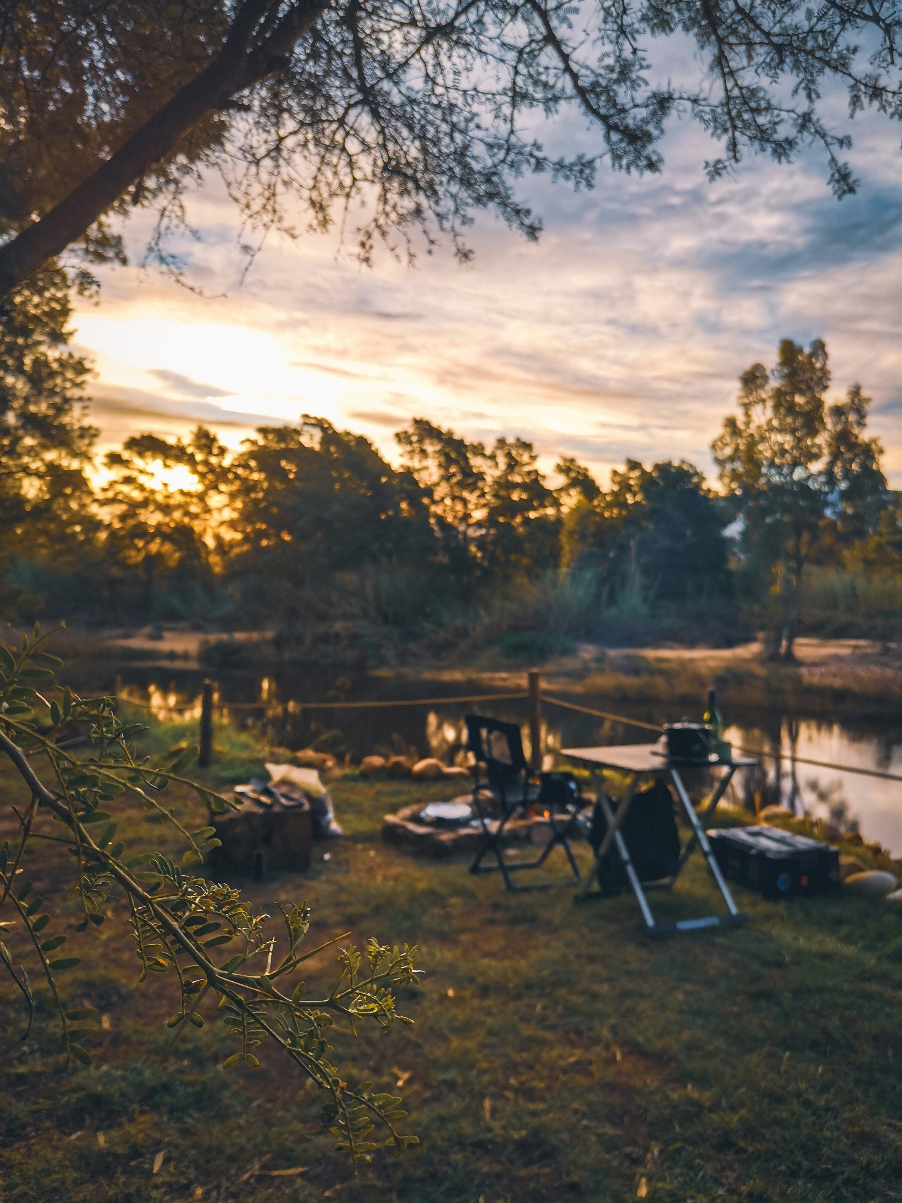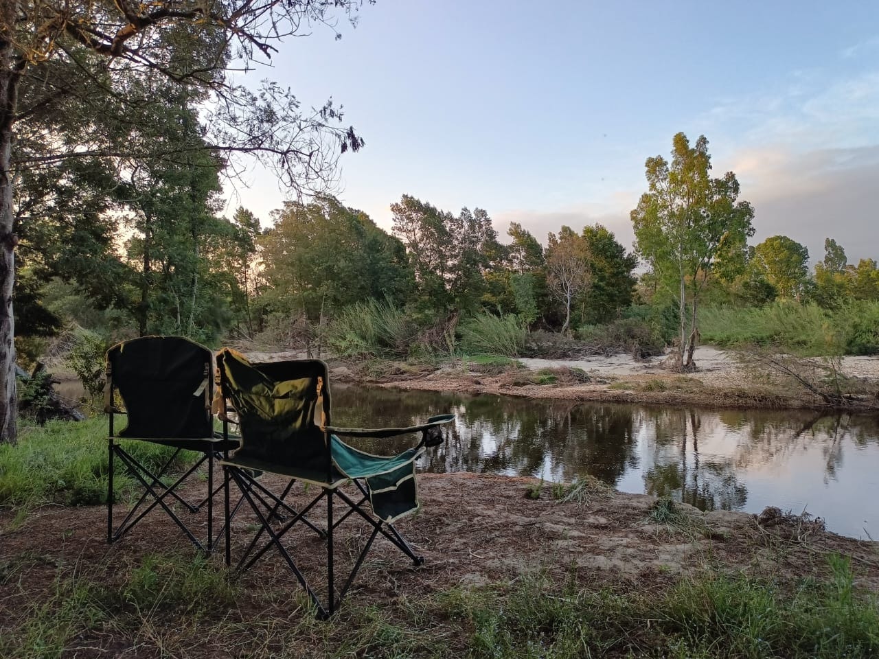 Communal facilities on the farm include a boma and a well-equipped outdoor kitchen with a gas cooker, washbasin, and central dining table, perfect for shared meals under the stars. The sanctuary offers a range of nature-based activities including peaceful walks, birdwatching, canoeing, fishing, and swimming in the river.