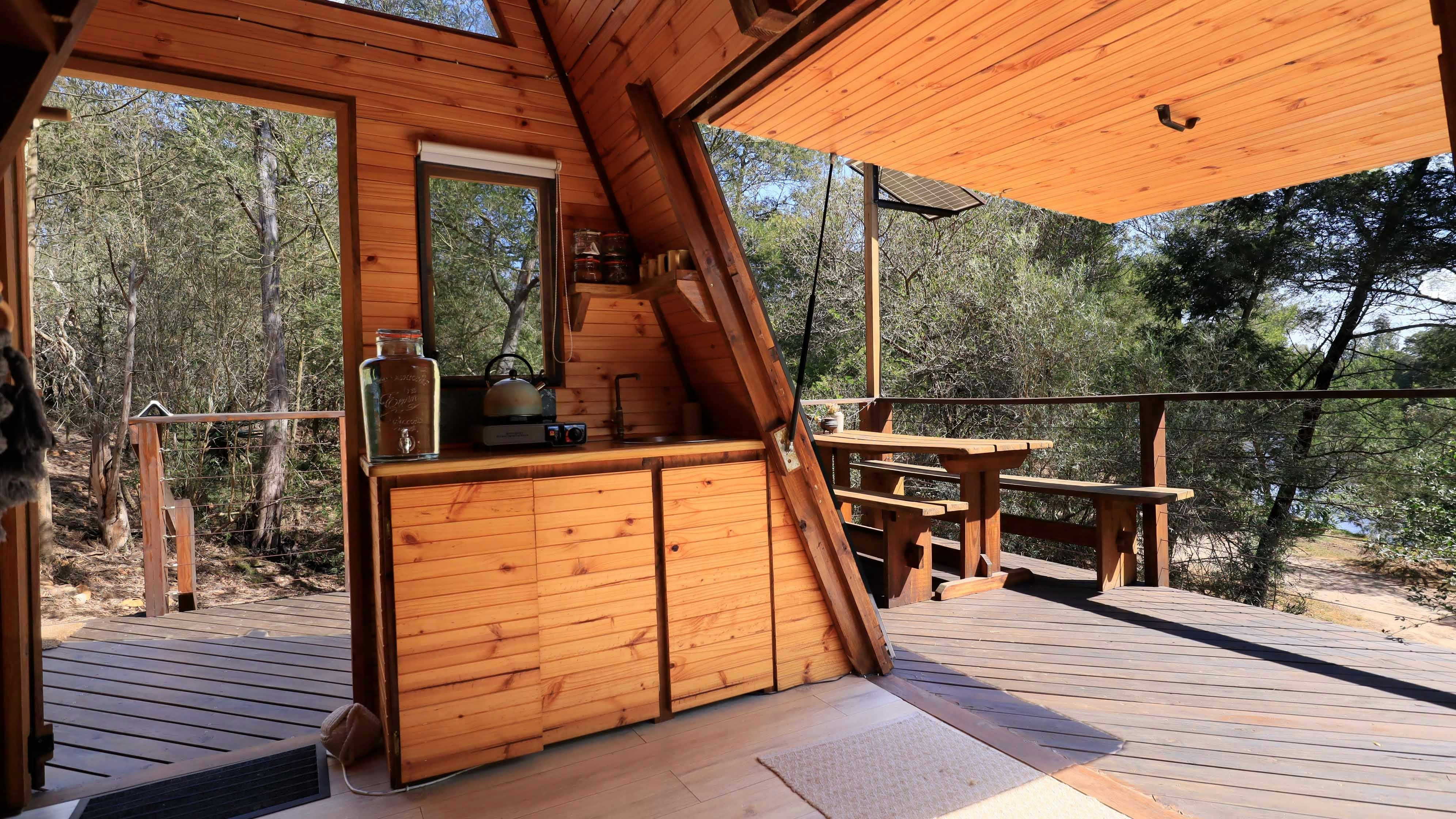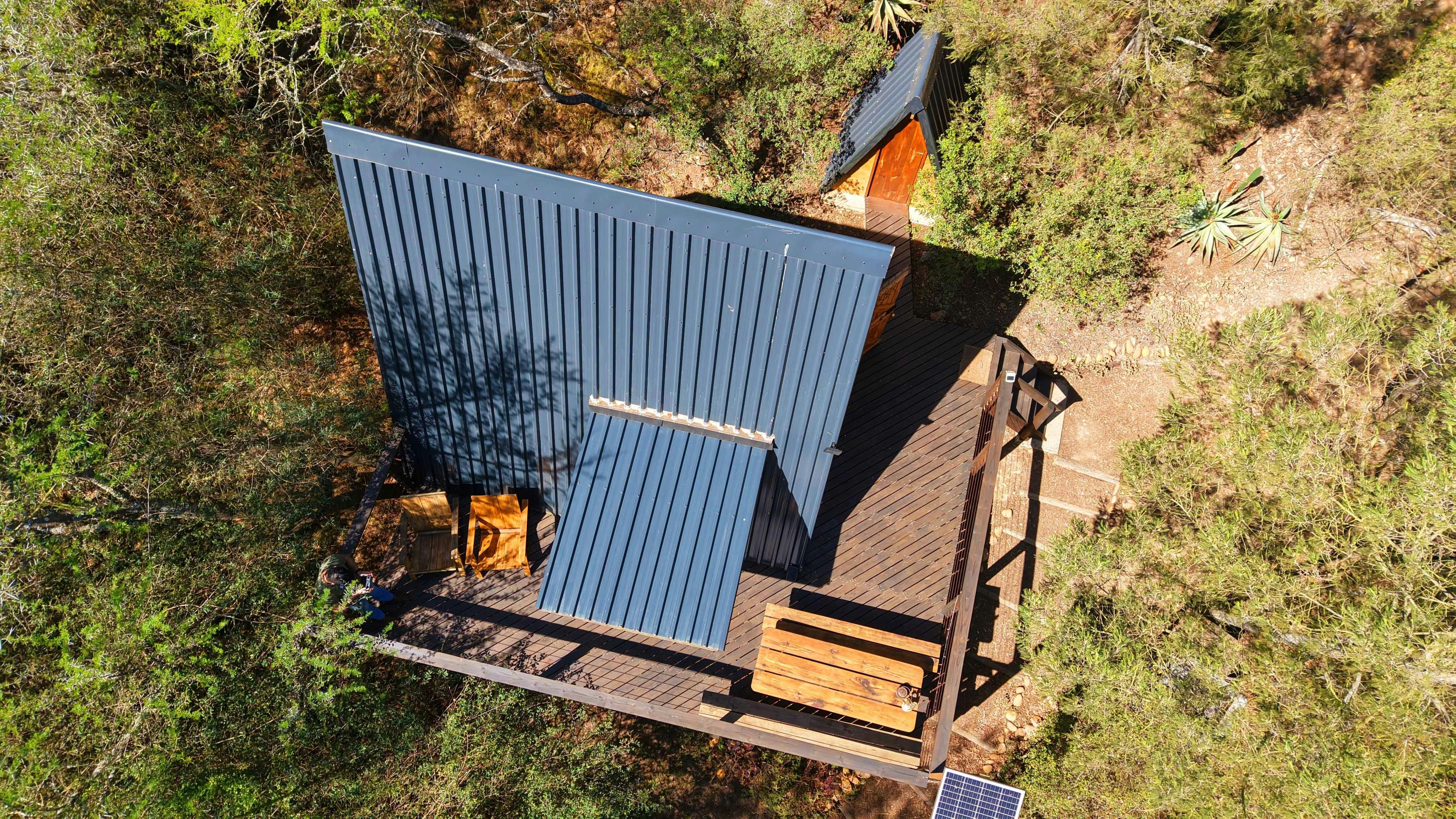 The unit is powered by solar energy, supporting lighting and basic device charging. A private compost toilet is located beside the cabin, while a shared ablution block with a hot shower and flushing toilet is just a short walk away. For added comfort in the colder months, a gas heater is provided. Eco-friendly bath towels, dish soap, a sponge, shower gel, and a tea and coffee starter pack are included. Guests also have access to a private braai area.