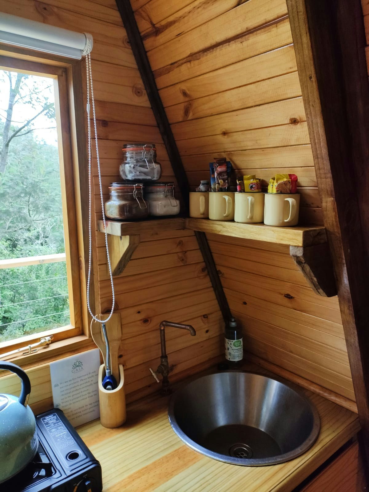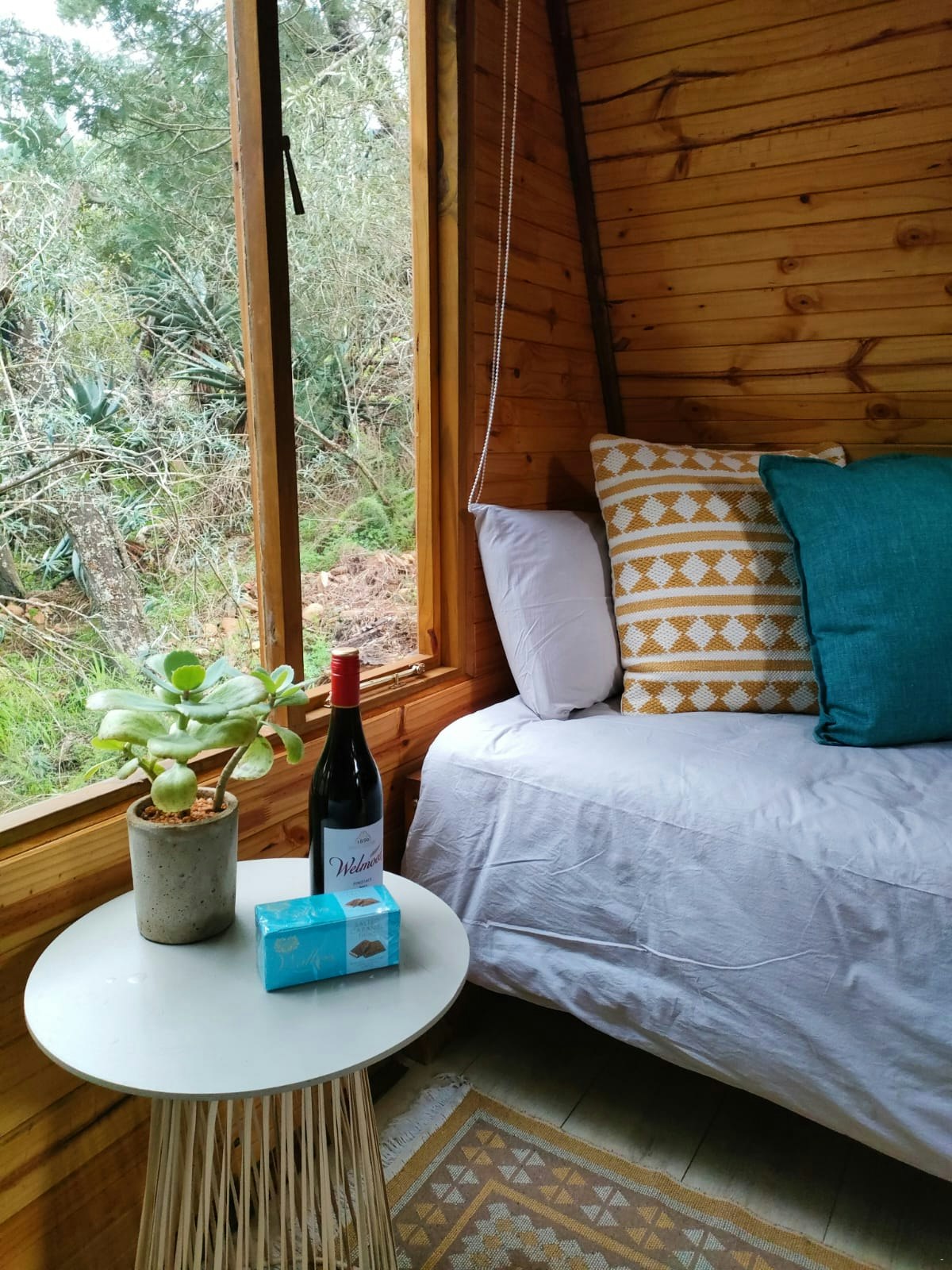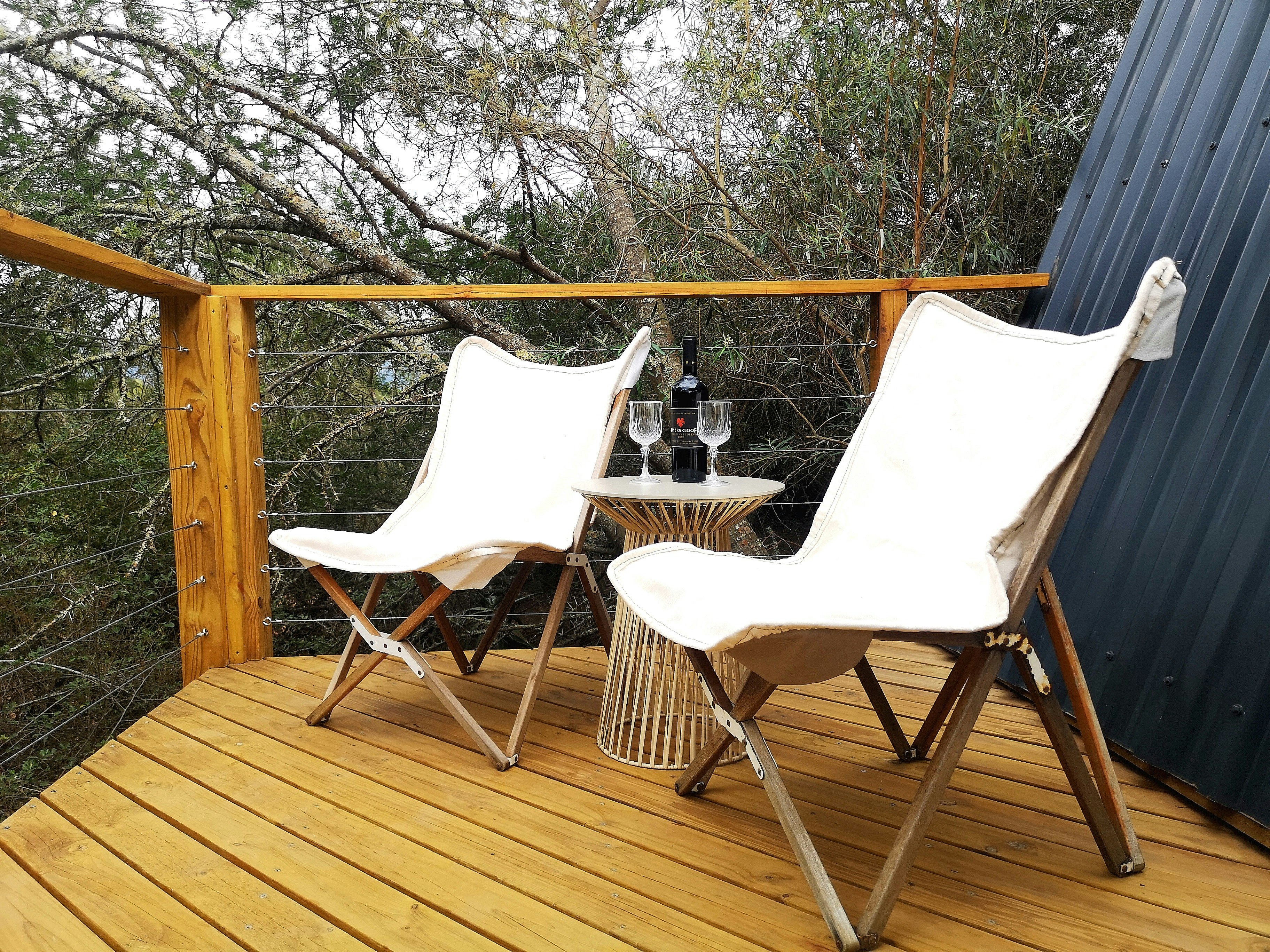 The unit is powered by solar energy, supporting lighting and basic device charging. A private compost toilet is located beside the cabin, while a shared ablution block with a hot shower and flushing toilet is just a short walk away. For added comfort in the colder months, a gas heater is provided. Eco-friendly bath towels, dish soap, a sponge, shower gel, and a tea and coffee starter pack are included. Guests also have access to a private braai area.