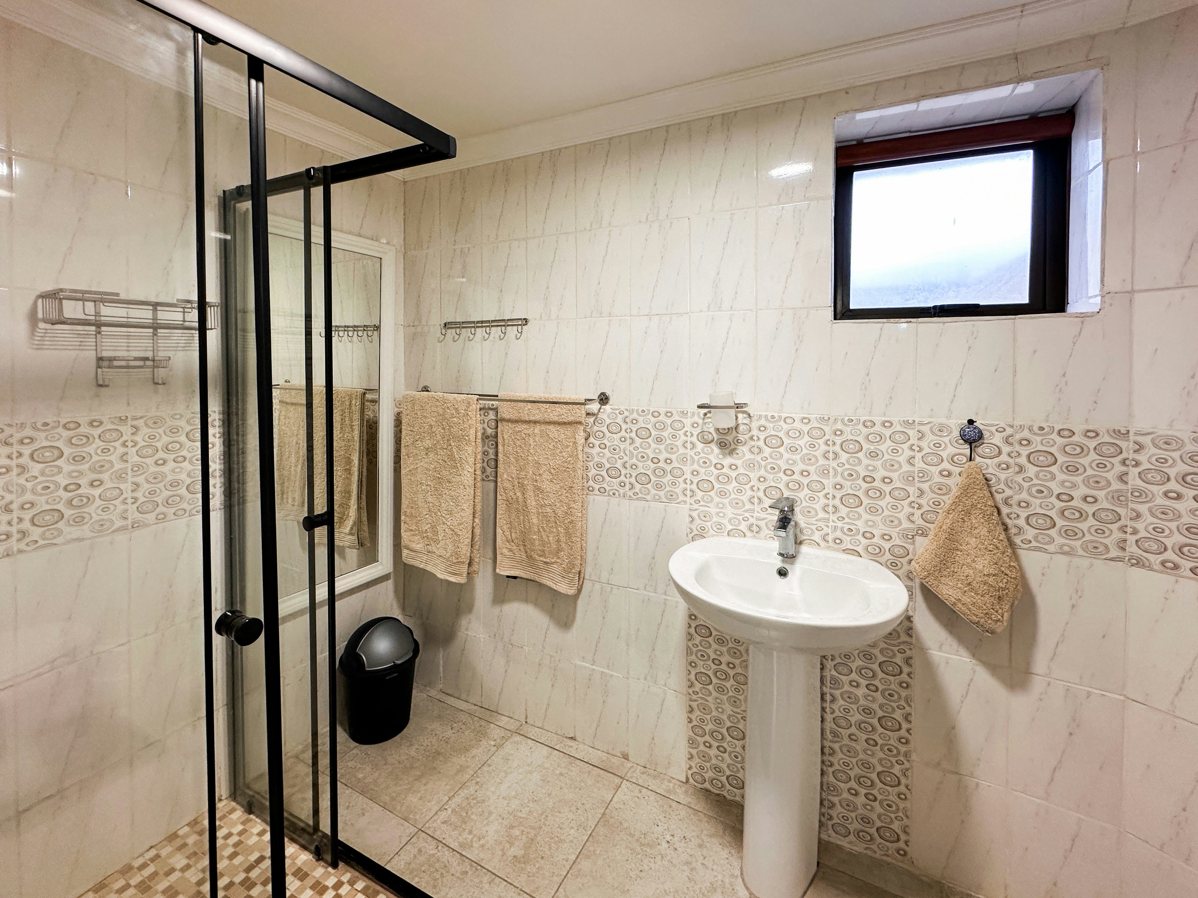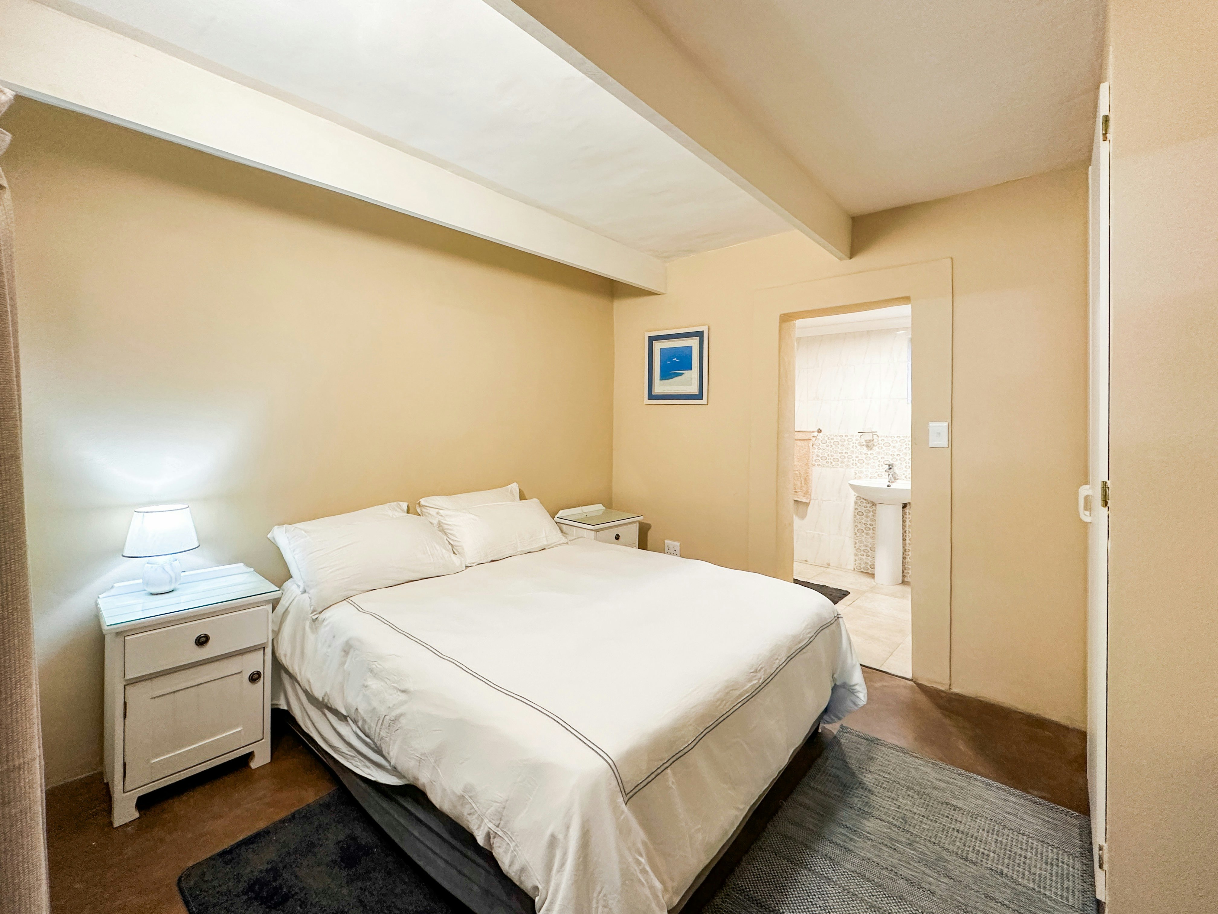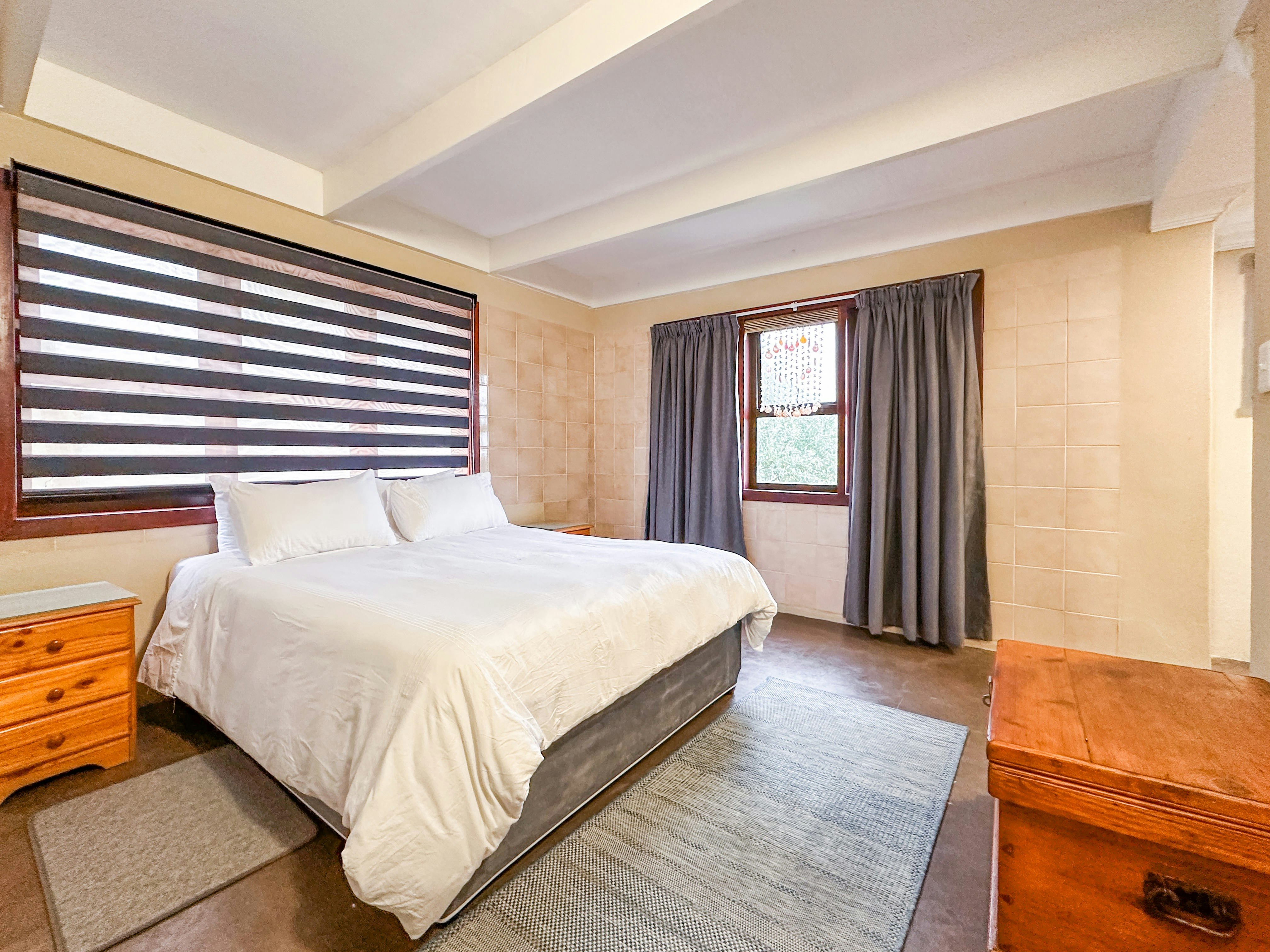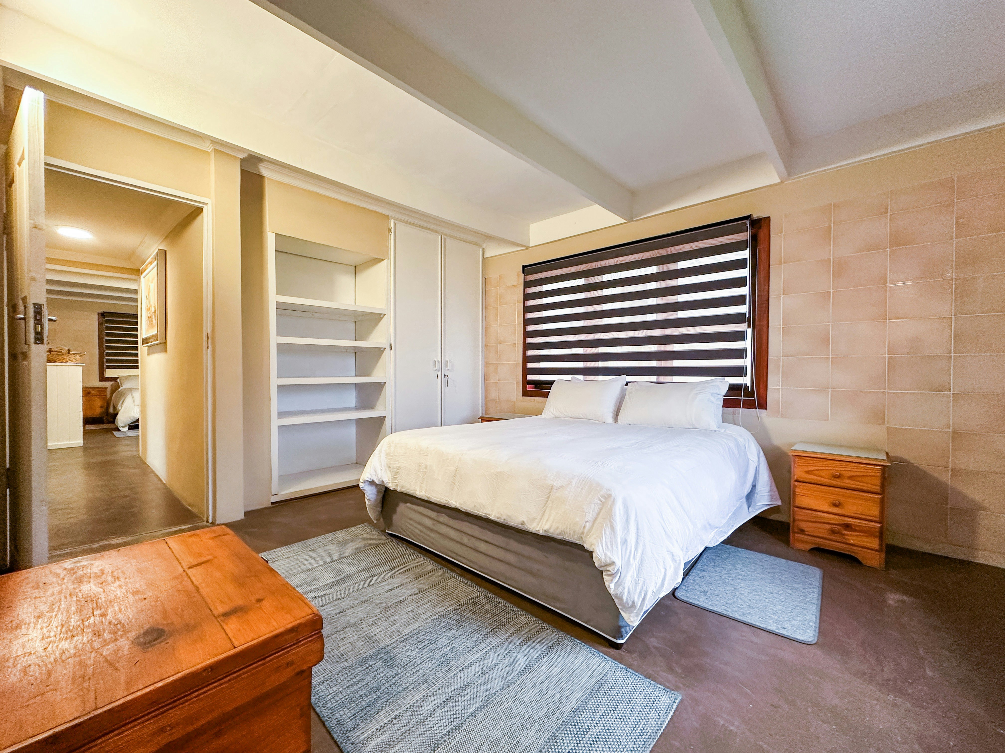 This vacation home can sleep up to 10 guests and comprises 5 bedrooms, 5 bathrooms, an open-plan kitchen, 2 dining areas and 2 lounge areas. The main bedroom is furnished with a double bed and features an en-suite bathroom fitted with a shower, toilet, and washbasin. In addition, this room has a seating area, a flat-screen TV, and a fridge-freezer. This room opens to a sea-facing balcony which has a built-in braai. The remaining 4 bedrooms each contain a double bed and each room has an en-suite bathroom fitted with a shower, toilet, and washbasin.