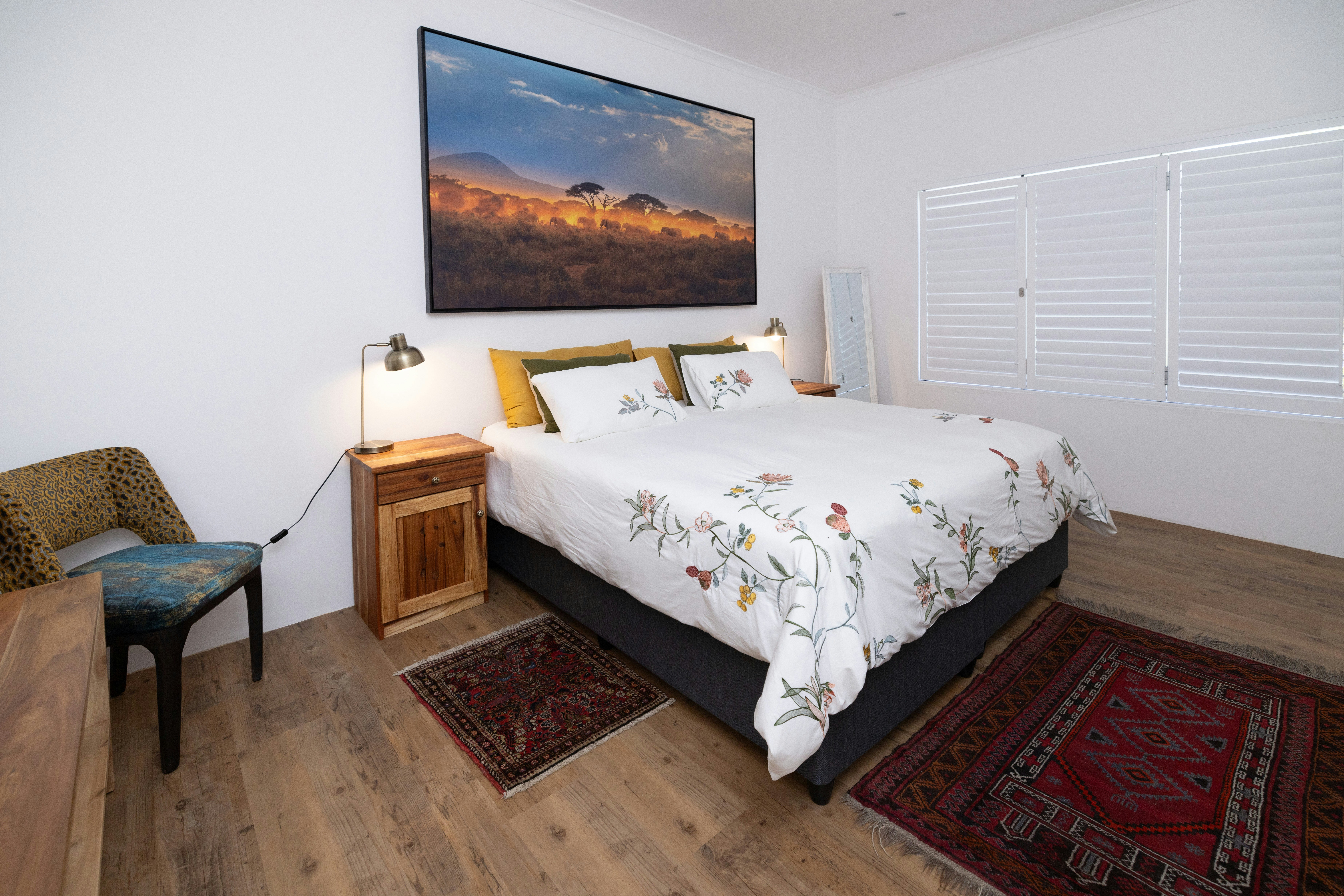 The open-plan living area includes a fully equipped kitchen with a stove, oven, microwave, fridge-freezer, cutlery and crockery, as well as tea- and coffee-making facilities. A dishwasher and washing machine are also available. From the kitchen, guests will find a 4-seater dining table and a lounge with comfortable couches, a fireplace and a TV. An additional entertainment room is available, complete with a TV, dining table and braai area. Free Wi-Fi is provided.